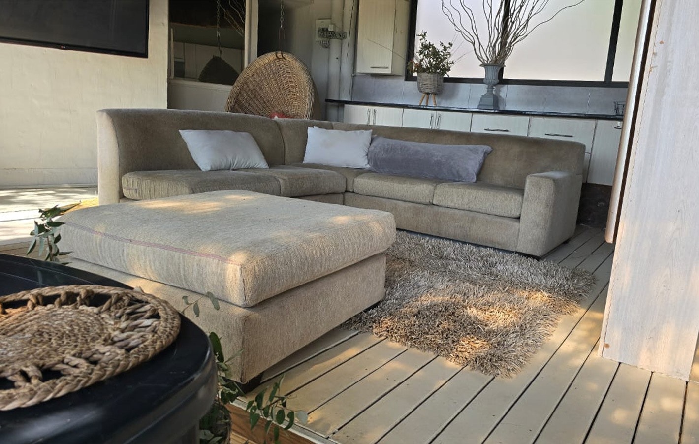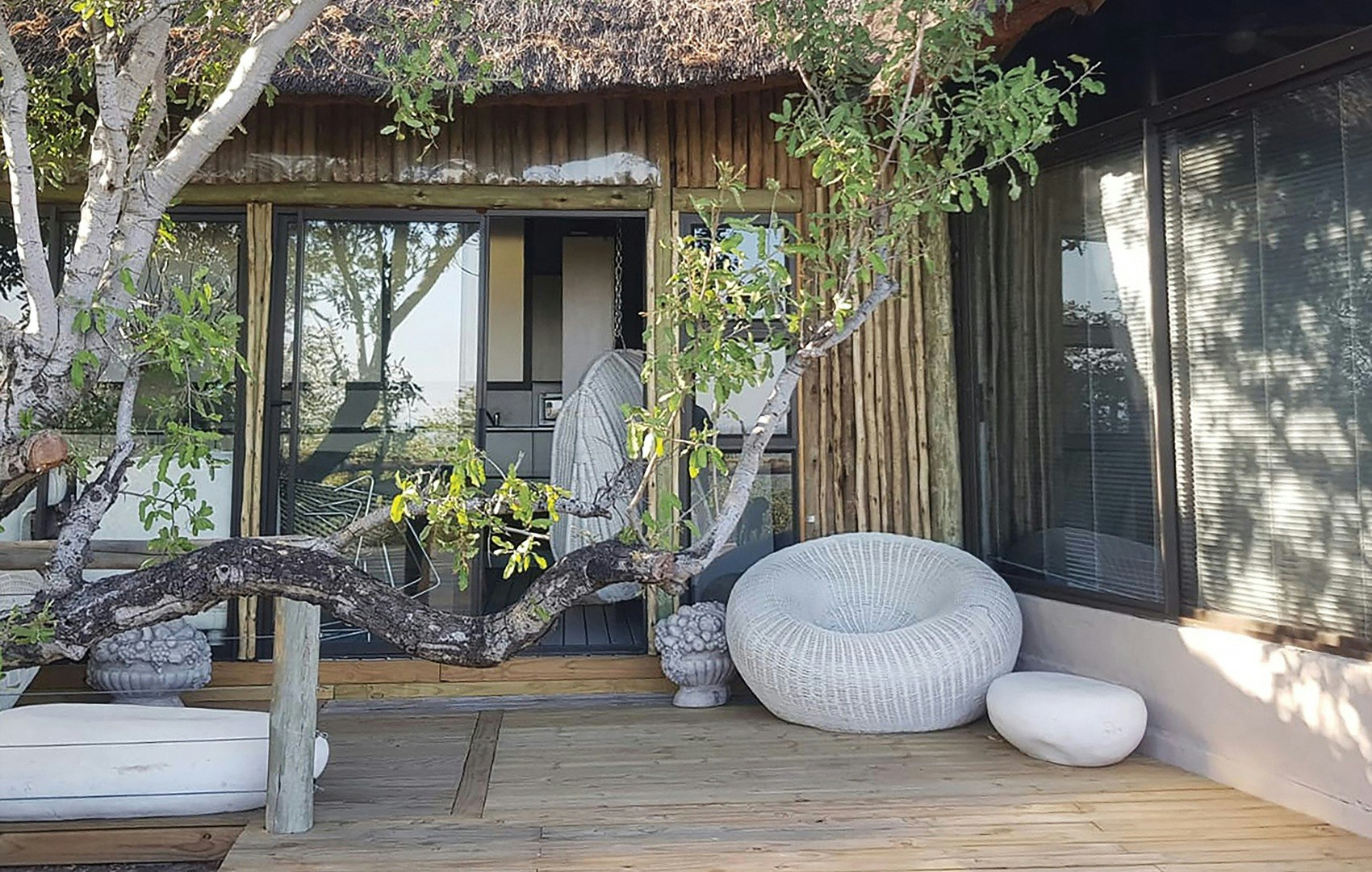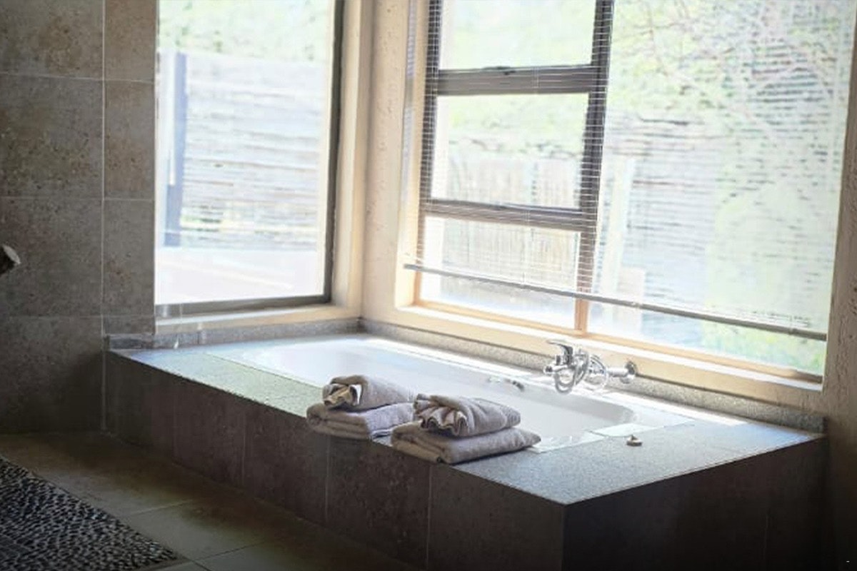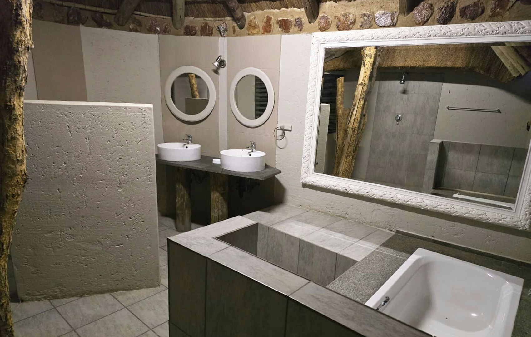 The 4 private African Bush Chalets each feature a queen-size bed, en-suite bathroom, and small kitchenette. Units 4 and 5, located at the top of the hill, offer an exclusive private heated Jacuzzi outside the unit. Units 8 and 9, situated in the lower area of the hill, have access to a shared splash pool and nearby sundeck.