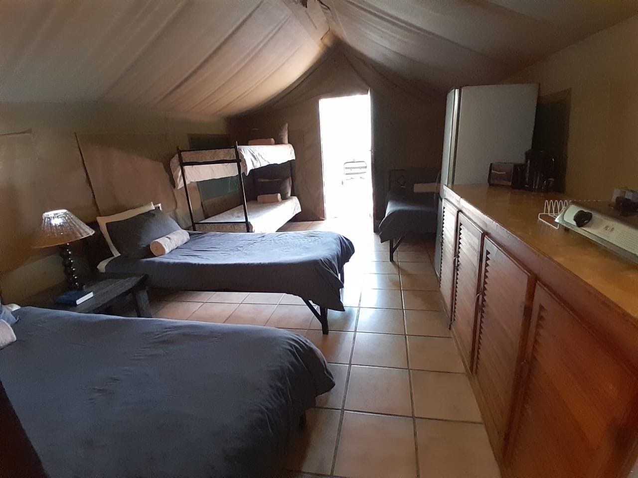 Nestled in the hills of the Vredefort Dome World Heritage Site, you will find Thwane Bush Camp, an exclusive safari-style tented camp offering comfortable and affordable accommodation. The bush camp is situated on a farm with a variety of game such as wildebeest, blesbok, red hartebeest, zebra, and springbok. Activities include mountain biking and bird watching, while the popular Meteorite Hiking Trail starts on the farm and a 12km marked trail is available.