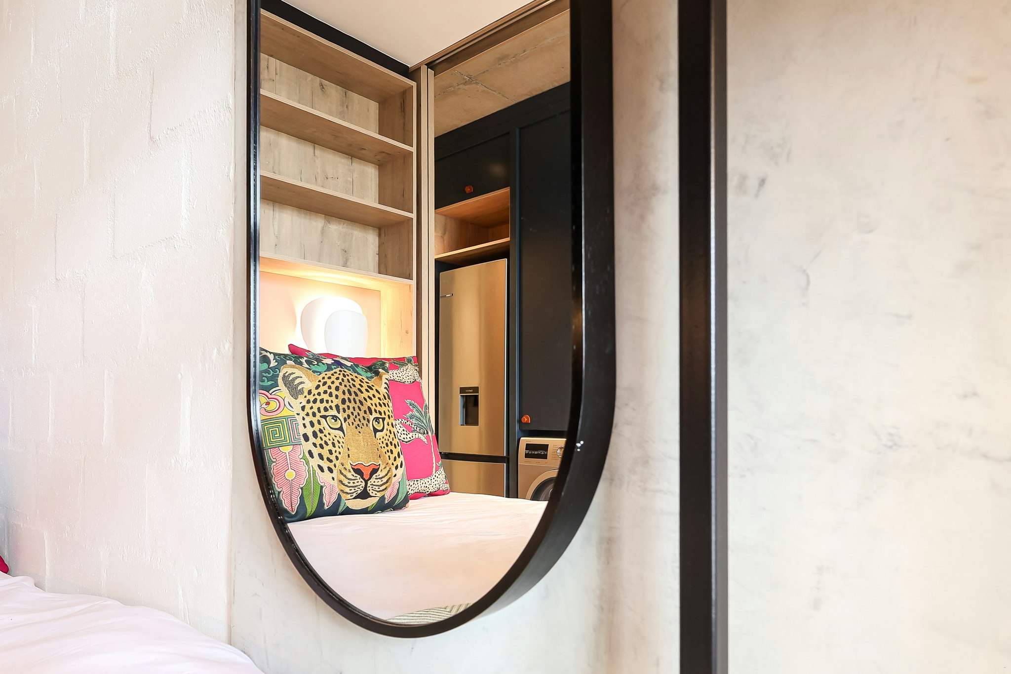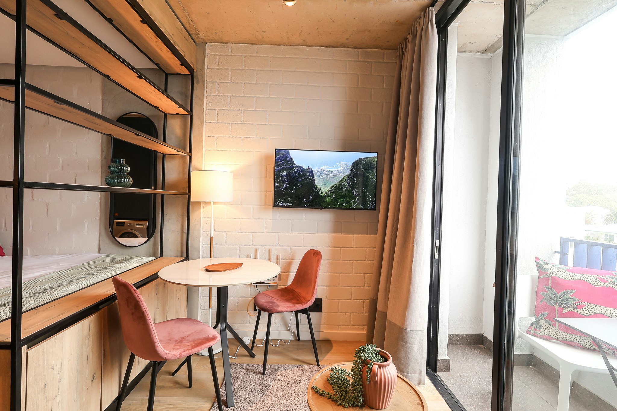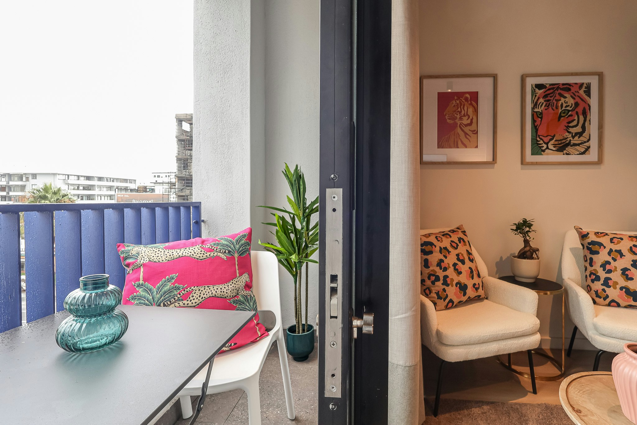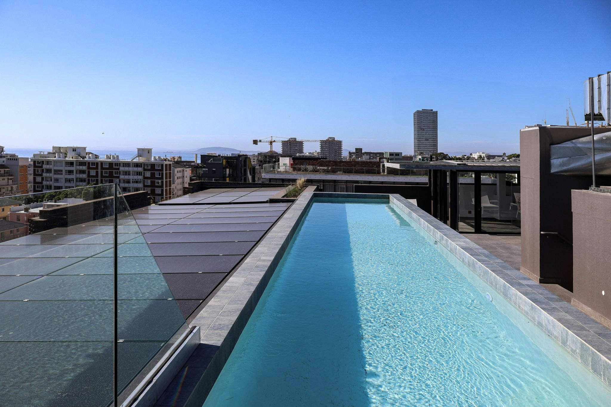 Guests can enjoy a quaint balcony and the building offers multiple spaces where guests can enjoy fresh air and stunning views, including a communal rooftop swimming pool and outdoor seating areas. There is also a concierge team, 24-hour security, meeting rooms and a communal laundry room. The apartment also provides easy access to central Cape Town, including the V&A Waterfront, Long Street, and public transport options.