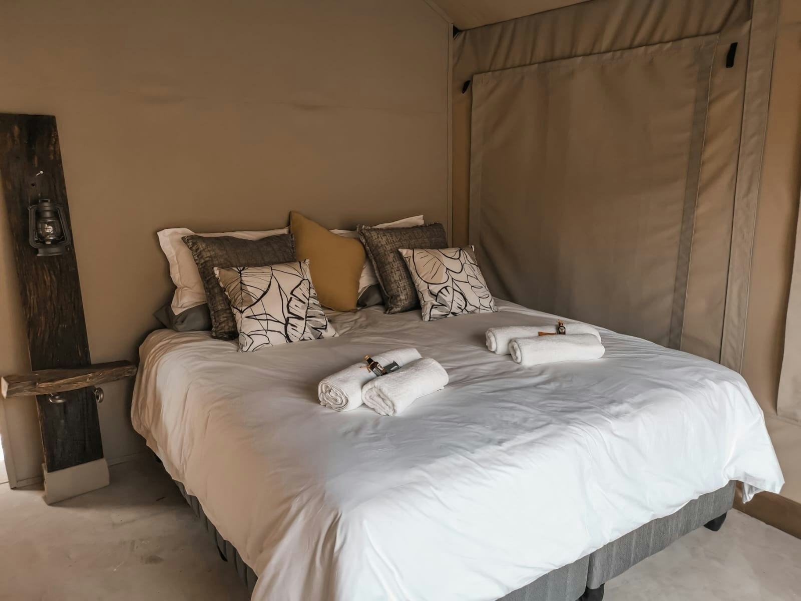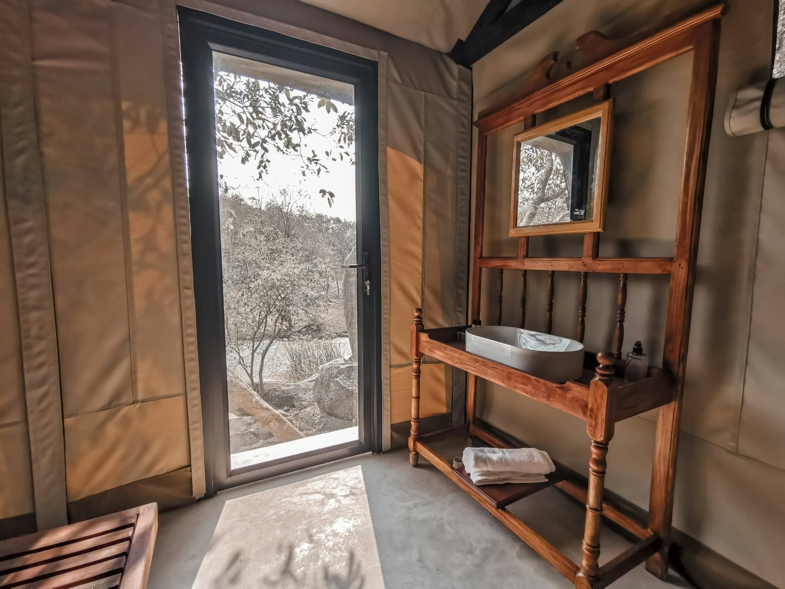 The Safari Luxe Tent provides a peaceful escape with beautiful views of the surrounding mountain and river. It also includes a convertible king-size bed, an en-suite bathroom with a shower, basin, and toilet. The private patio with a dining table for 2 is the ideal spot for soaking in the sights and sounds of the bush. Wi-Fi is available for added convenience.