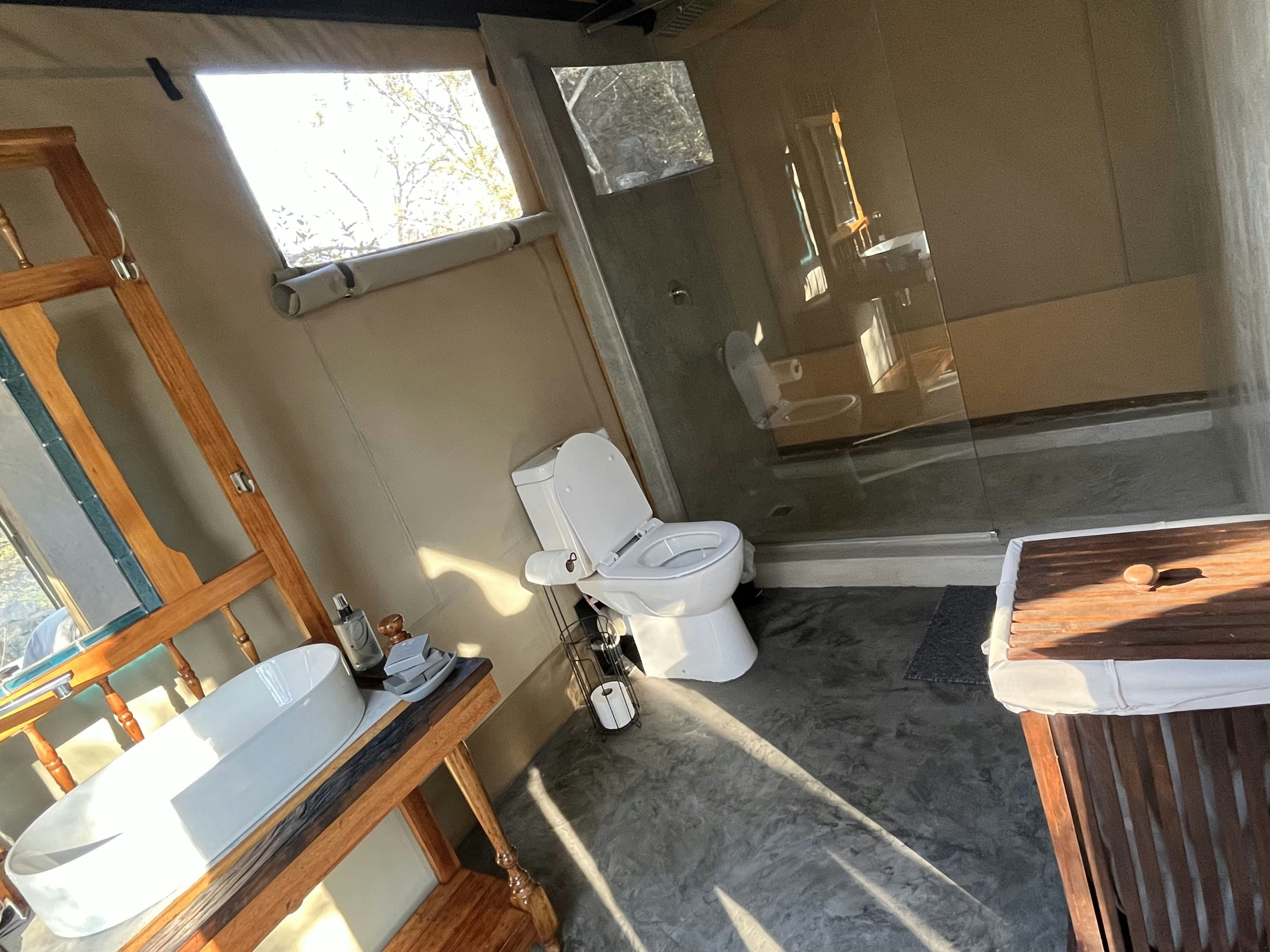 Accommodation is offered in 3 African Chalets and 3 Safari Luxe Tents. The African Chalet offers a versatile and comfortable retreat, featuring a king-size bed that can be converted into twin beds—ideal for couples or friends travelling together. The en-suite bathroom is fitted with a shower, basin, and toilet. A private patio with an outdoor dining area for 2 provides the perfect spot to unwind.