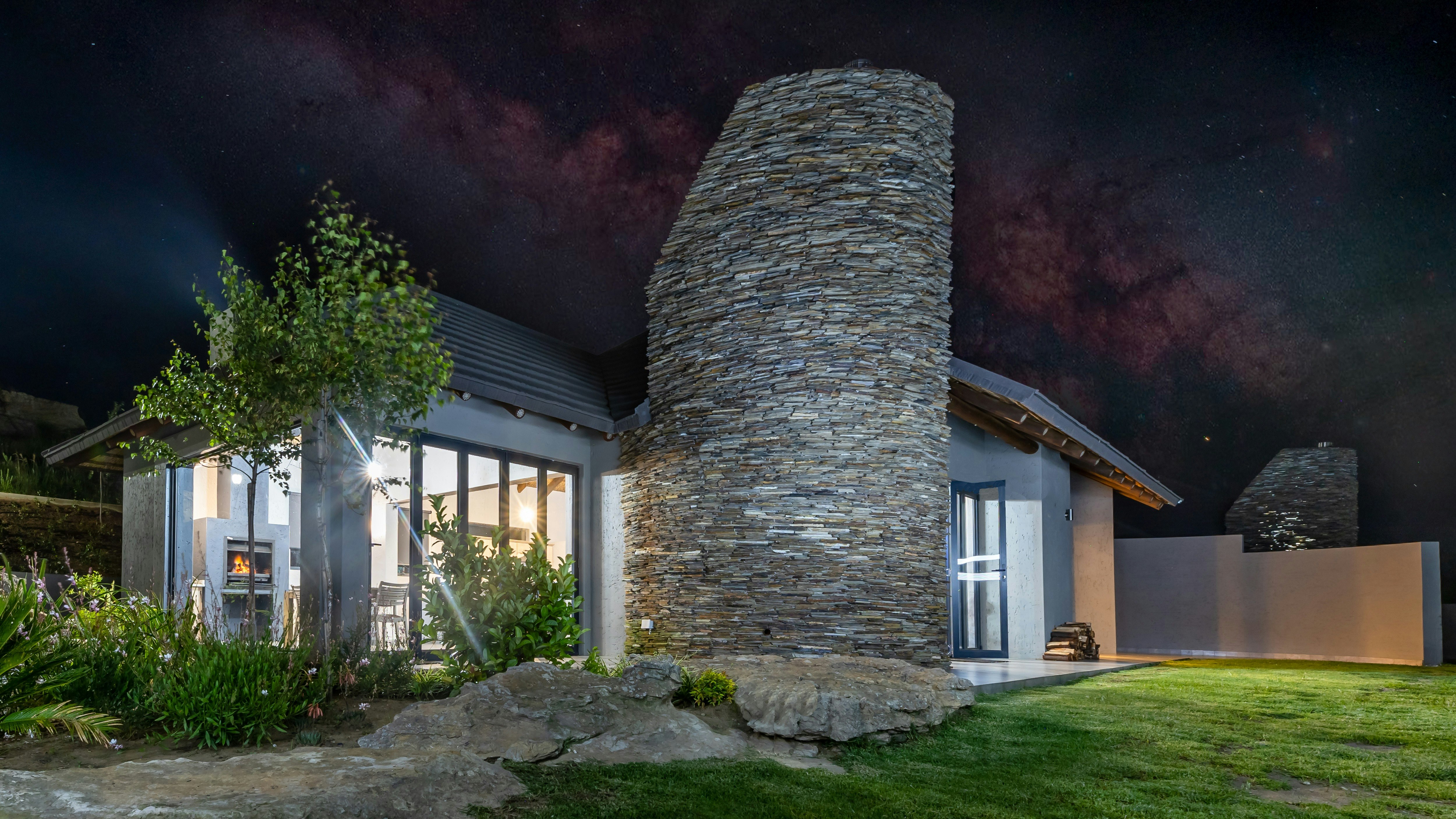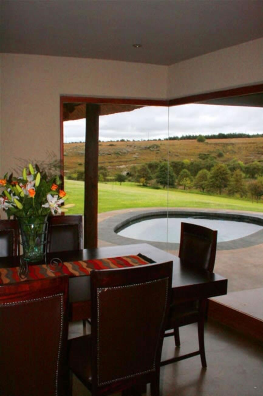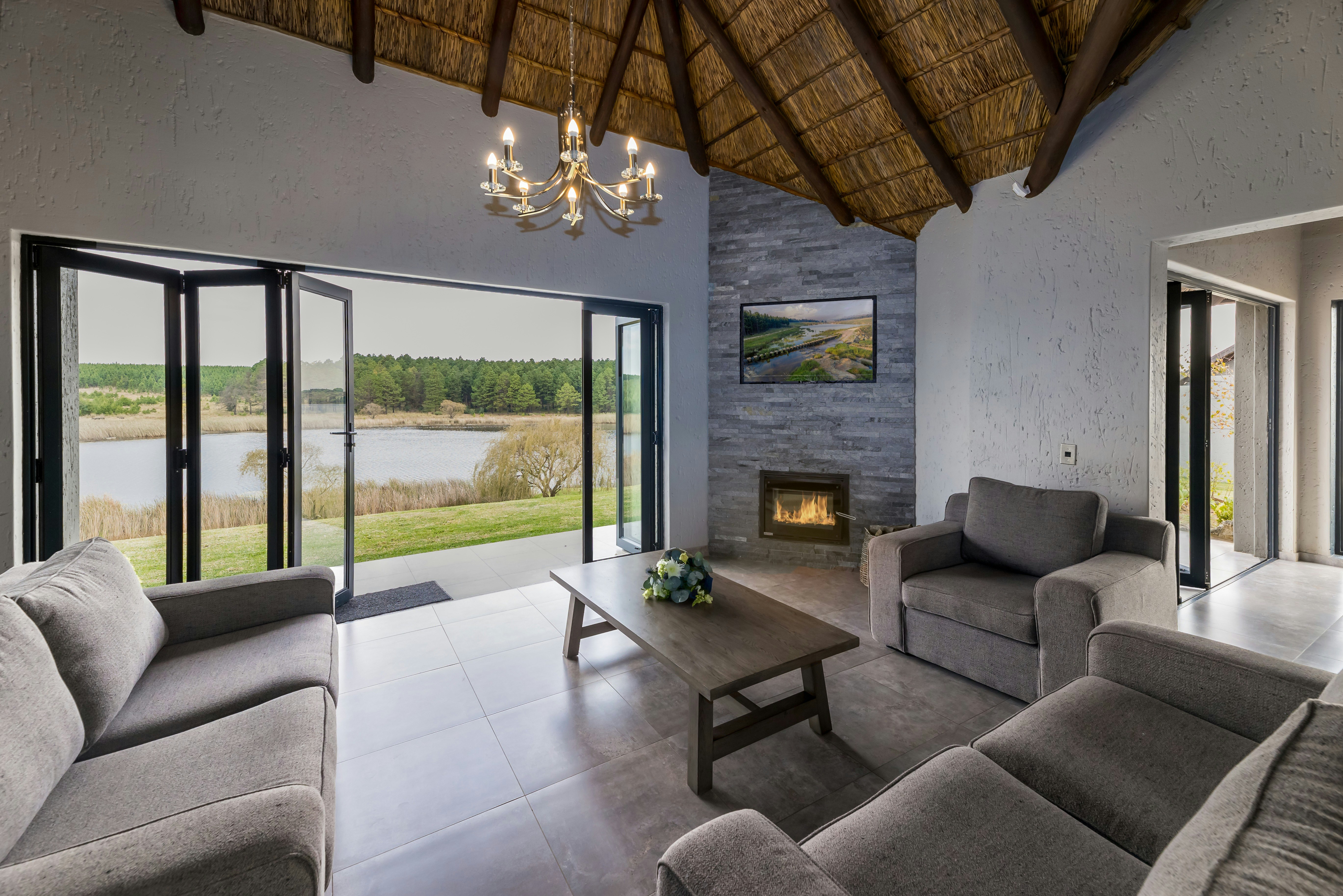 The living room includes a fireplace for those cold nights and a TV that has selected DStv channels, with a sliding door that leads out onto a verandah that has private braai amenities and heated swimming pool.