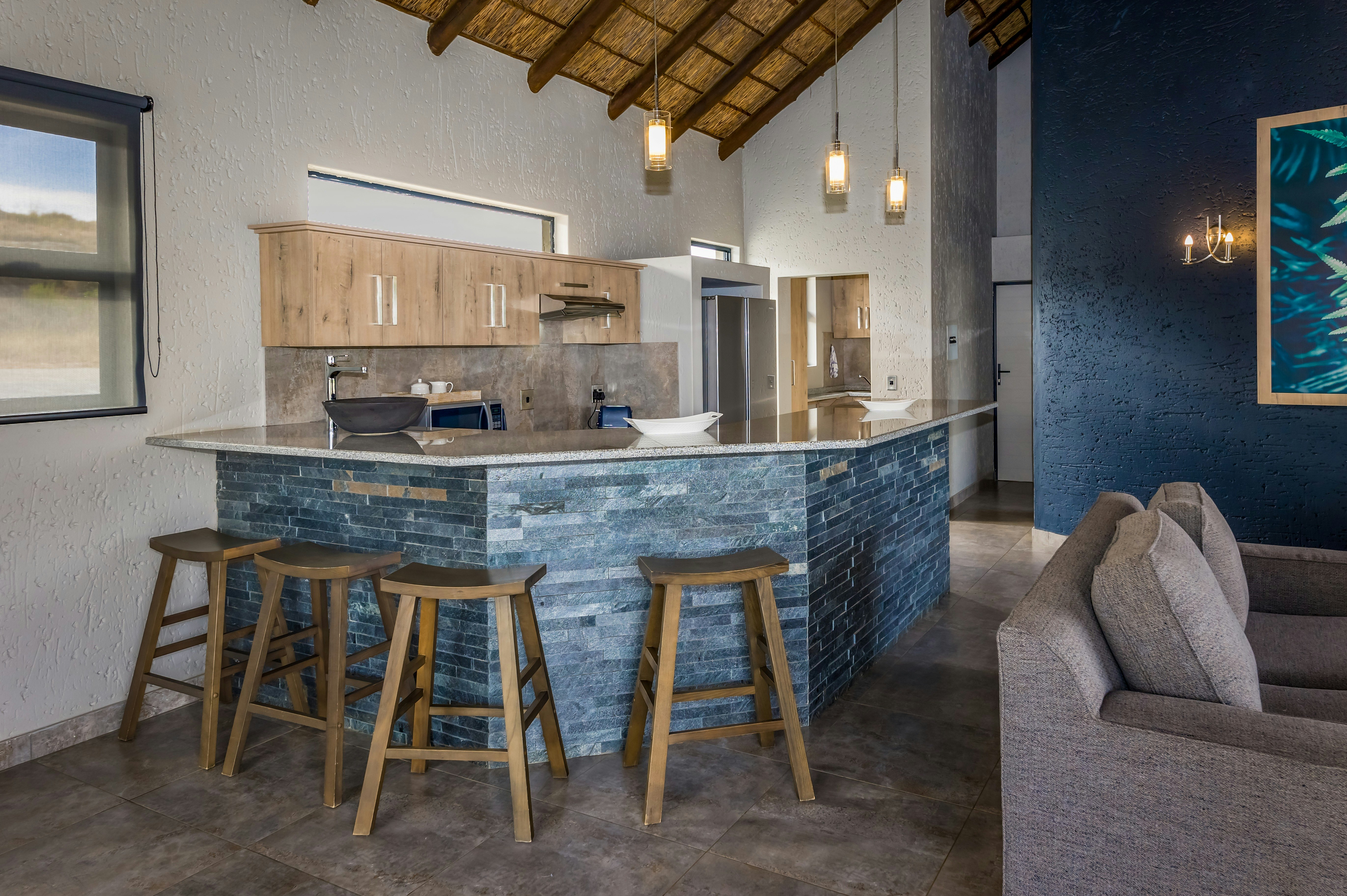 Accommodation at Tolderia Resort comprises 4 self-catering chalets that consist of 3 bedrooms in each. The bedrooms are equipped with either a double- or twin beds and an en-suite bathroom with a shower and bath, basin and toilet. The modern kitchen is fully equipped and has a fridge and freezer, microwave, an oven with a stove as well as a dishwasher with ample built-in cupboards to store crockery and crockery, and other appliances.