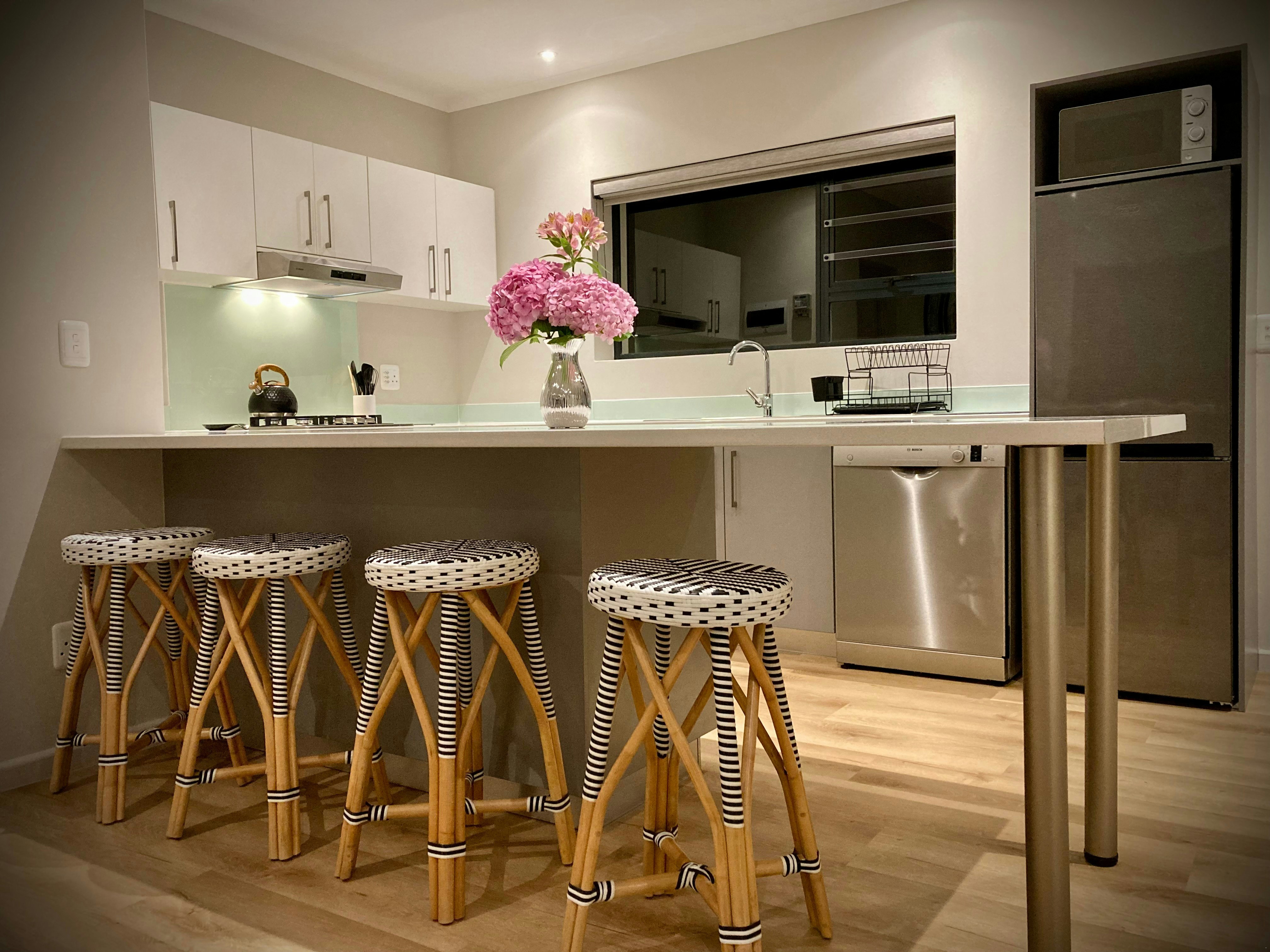 The lounge features a daybed that can accommodate 1 child under the age of 10 at an additional fee. The open-plan kitchen is well equipped with a fridge-freezer, gas stove, oven, microwave, toaster, basic cutlery and crockery, as well as tea- and coffee-making facilities. Free Wi-Fi is also available. The glass stacking doors open to the veranda which has outdoor furniture and a small garden.