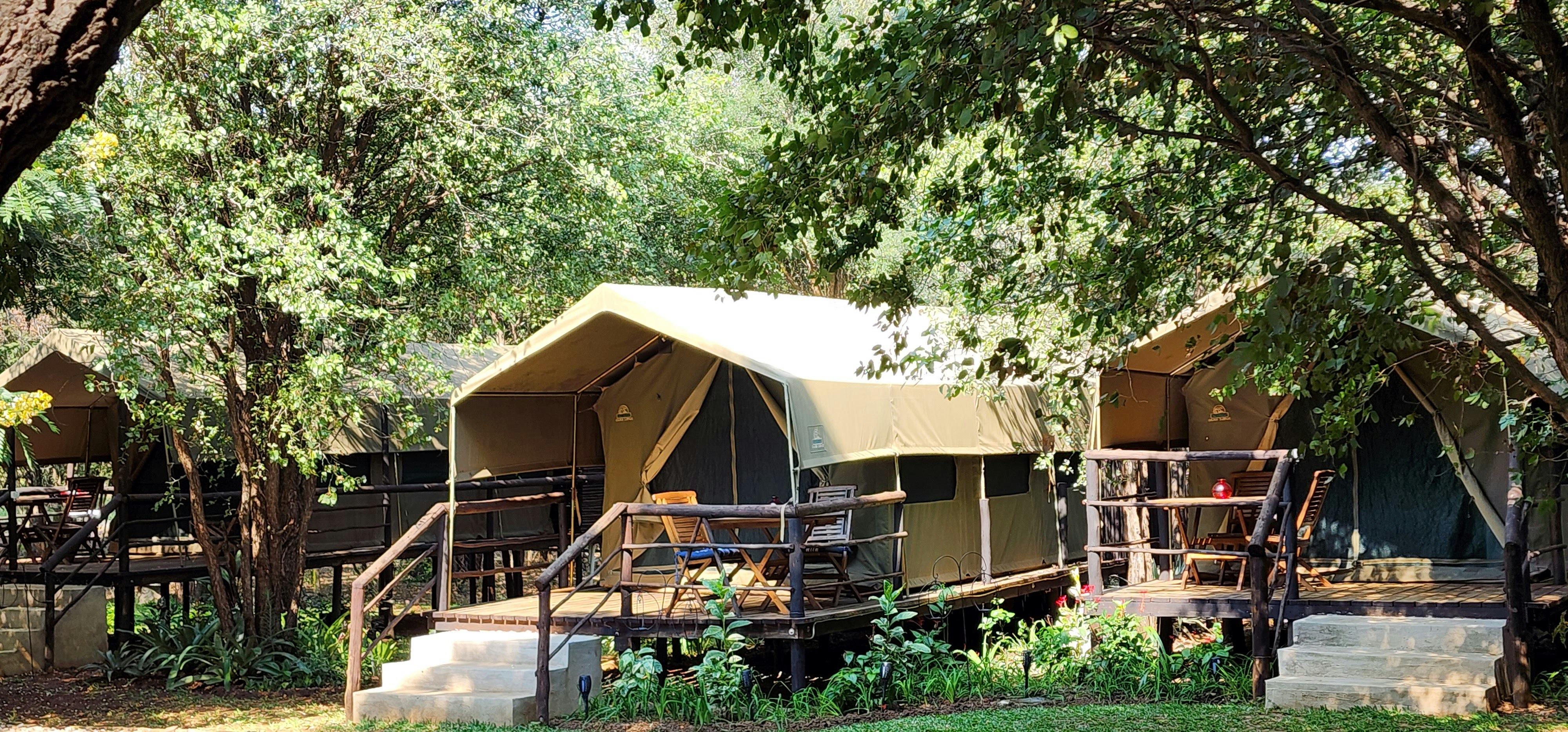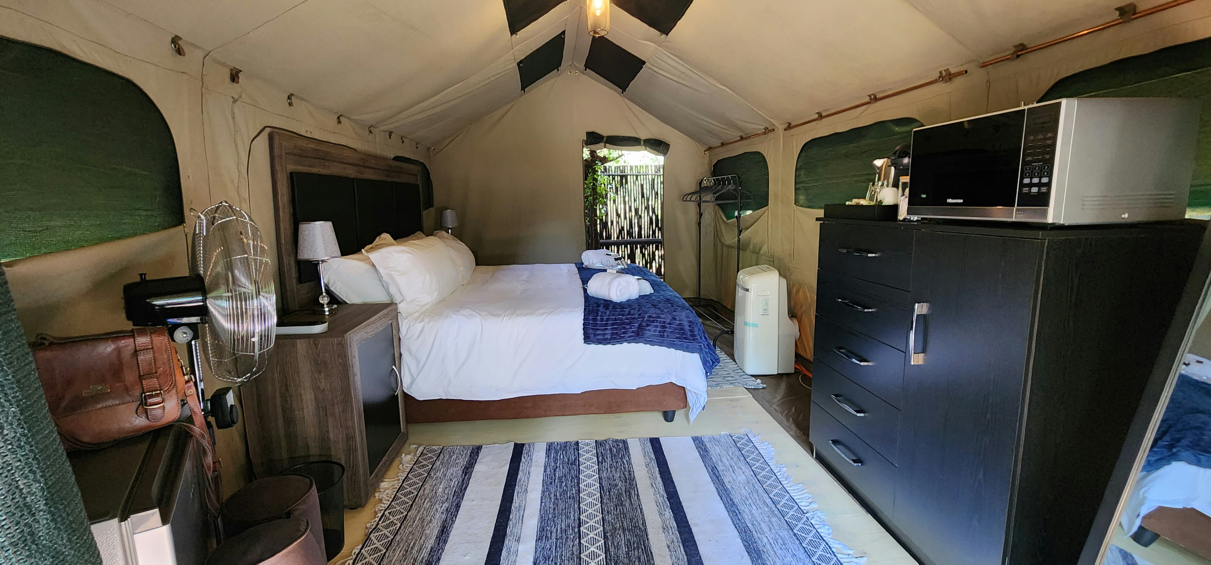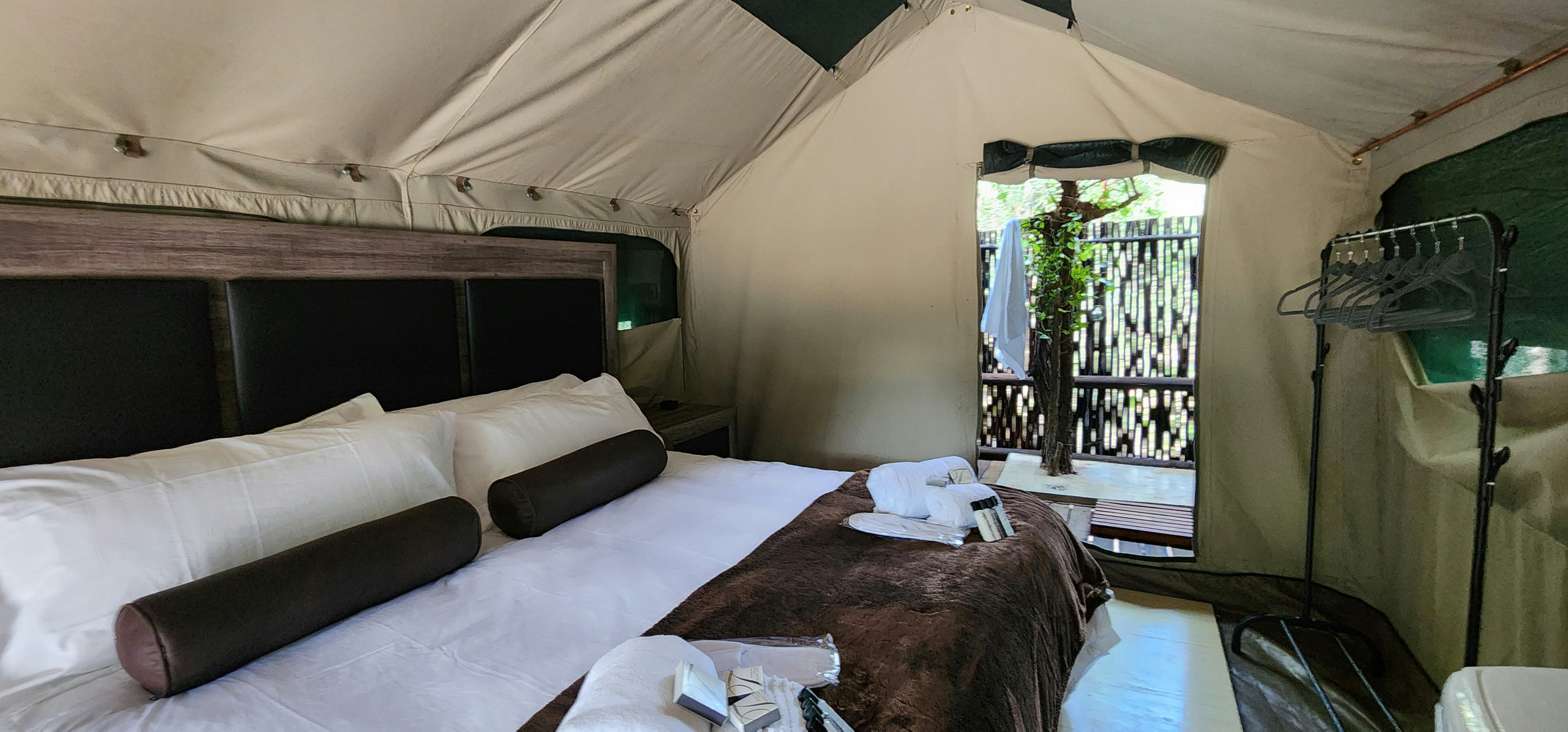 This guesthouse offers guests a choice of 3 beautifully appointed luxury tents, all with private outdoor bathrooms. The tents feature comfortable beds, soft duvets, crisp linen, and private entrances. All the tents offer additional amenities such as air-conditioning, a bar fridge, a microwave, tea- and coffee-making facilities, cutlery and crockery. Free Wi-Fi ensures that staying connected is a breeze.