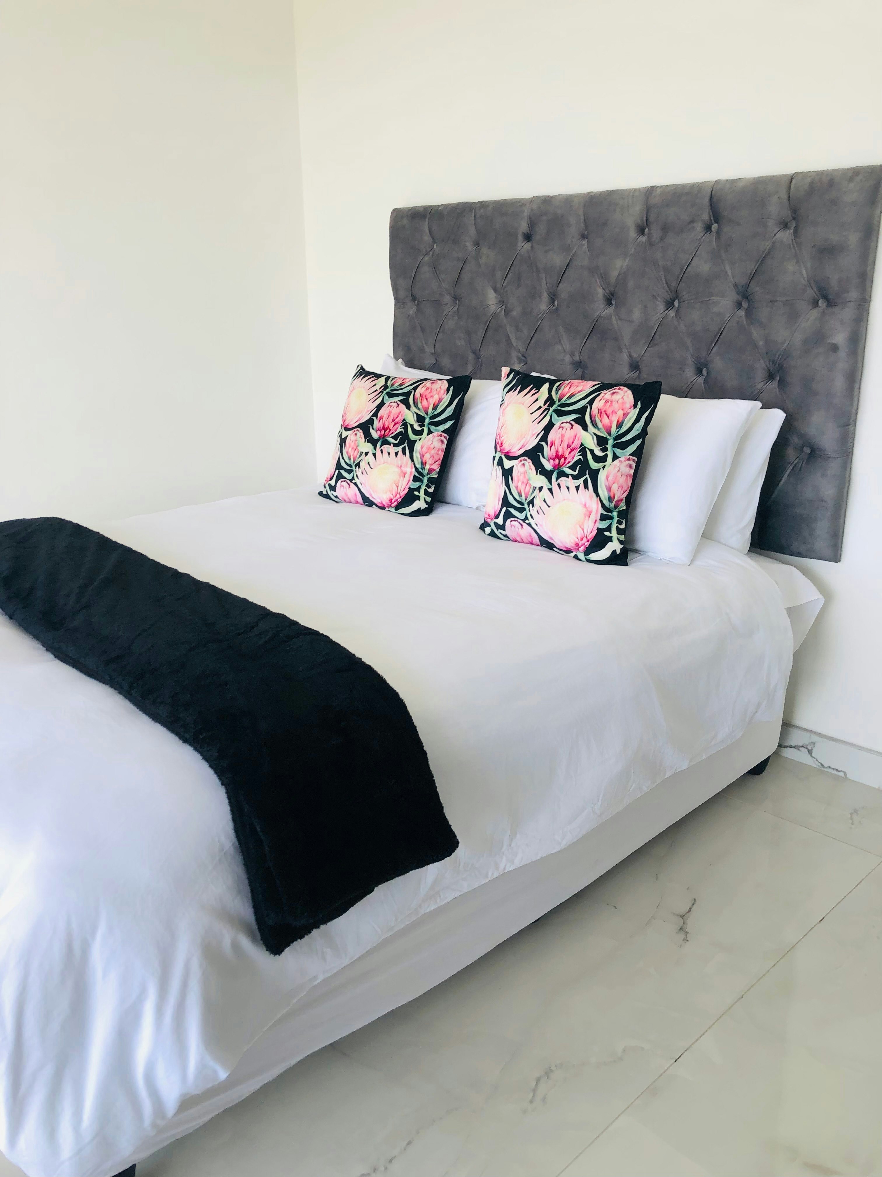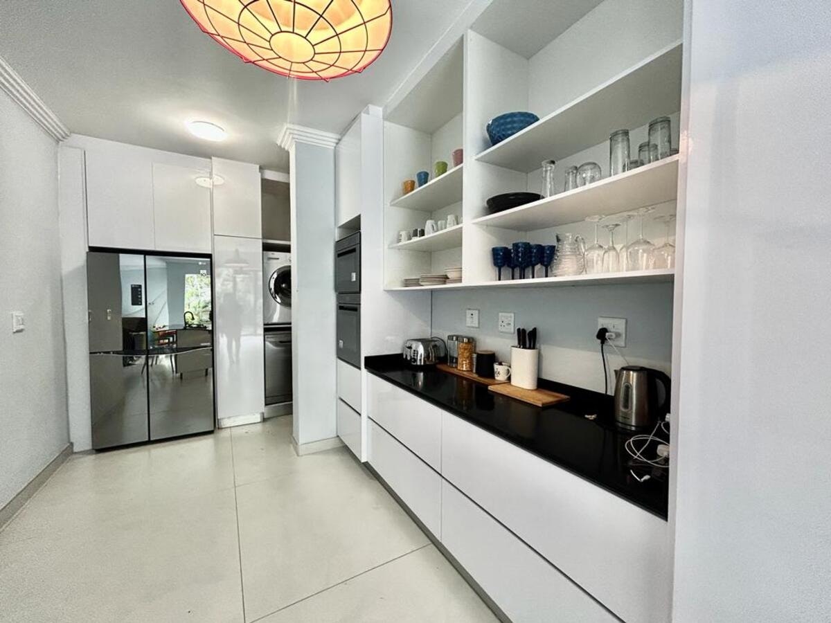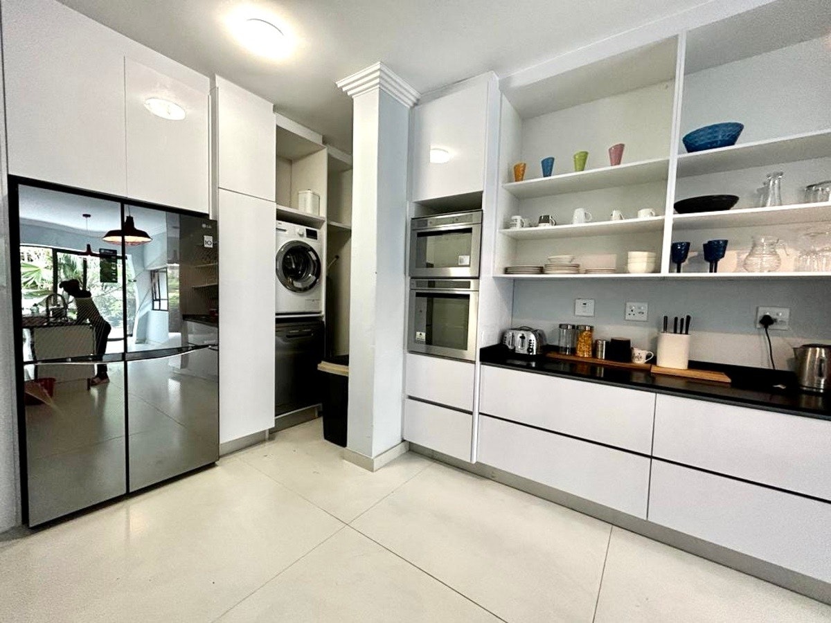 Touch of class is a self-catering home can accommodate up to 12 guests at a time and comprises 6 bedrooms and 4 bathrooms. Four bedrooms are furnished with queen-size beds. The fifth bedroom contains a king-size bed, and the remaining bedroom comprises 2 single beds. All these bedrooms share 4 bathrooms. The bathrooms are fitted with showers, washbasins, and toilets, of which one has a bath fitted. Quality linen and bath towels are provided. The living area features an open-plan design with a kitchen fully equipped with a stove, oven, microwave, kettle, toaster, double-door fridge-freezer, cutlery, and crockery, as well as a breakfast bar with stools. For added convenience, a washing machine and a dishwasher are also available in the kitchen. The lounge is elegantly furnished with comfortable couches and a TV featuring access to Netflix along with free Wi-Fi facilities. Outside, guests have access to a covered patio with more outdoor dining overlooking the garden. Secure parking is available on the premises.
