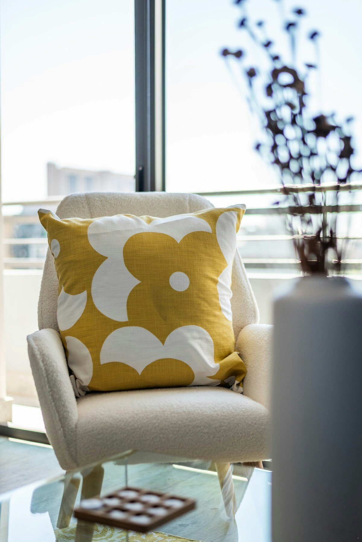 Additional features include a private balcony with city views, a dedicated workspace with a desk, and stylish interior decor. The building offers 24-hour security, and the apartment includes 2 covered parking bays.