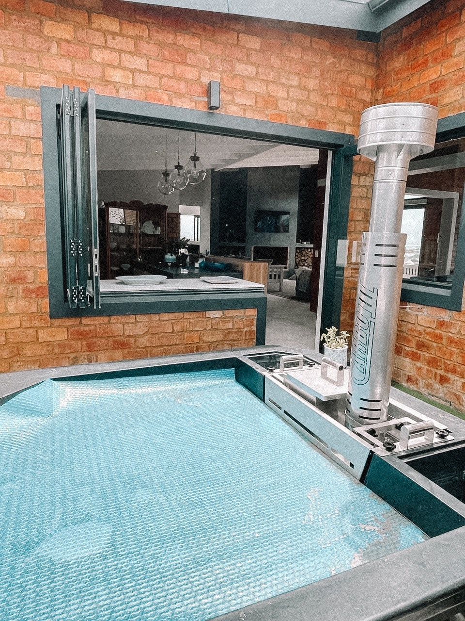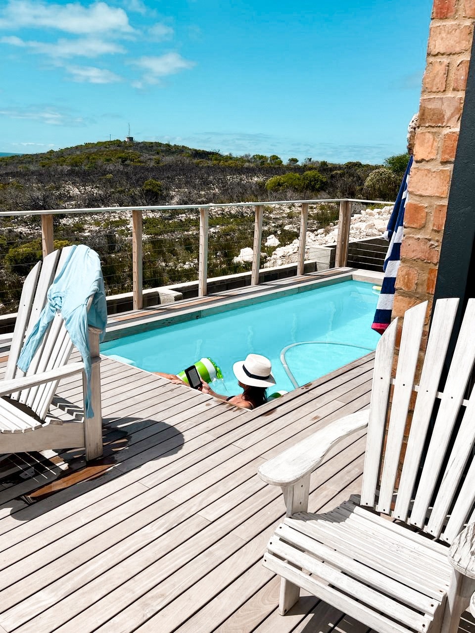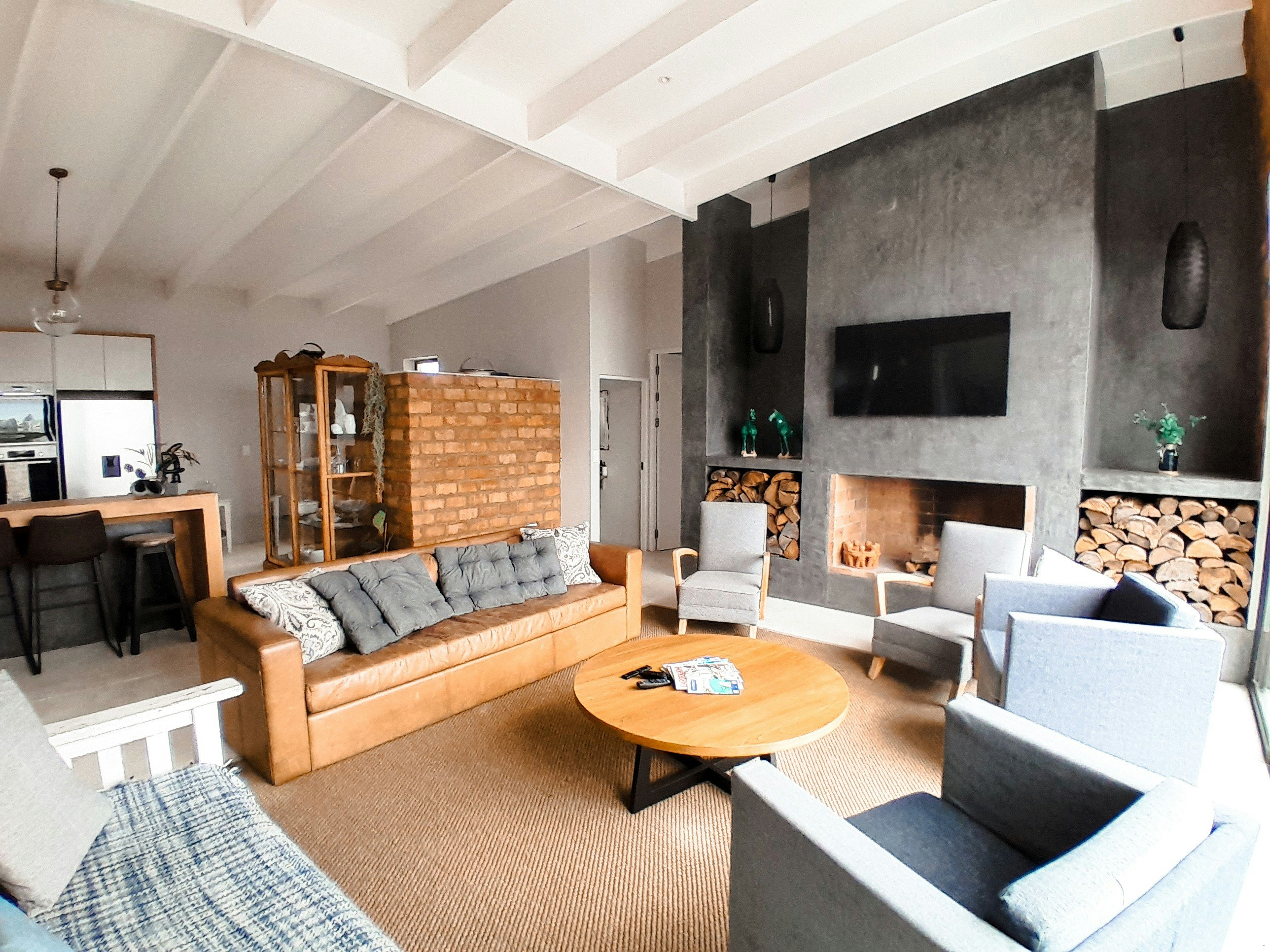 Die oopplan-leefarea is ontwerp vir ontspanning en beskik oor gemaklike sitplek, 'n TV, 'n knus kaggel en 'n volledig toegeruste kombuis met 'n ontbythoekie. Die kombuis sluit 'n yskas-vrieskas, stoof, oond, mikrogolf, wasmasjien, skottelgoedwasser en koffie- en teemaakgeriewe in. Aangrensend aan die leefarea is 'n ruim onthaalkamer met 'n etenstafel en 'n binnebraai. Buite kan gaste die son op die patio geniet, 'n verfrissende duik in die swembad neem, of in die houtvuur-bubbelbad ontspan. Veilige parkeerplek is in die dubbelmotorhuis beskikbaar.