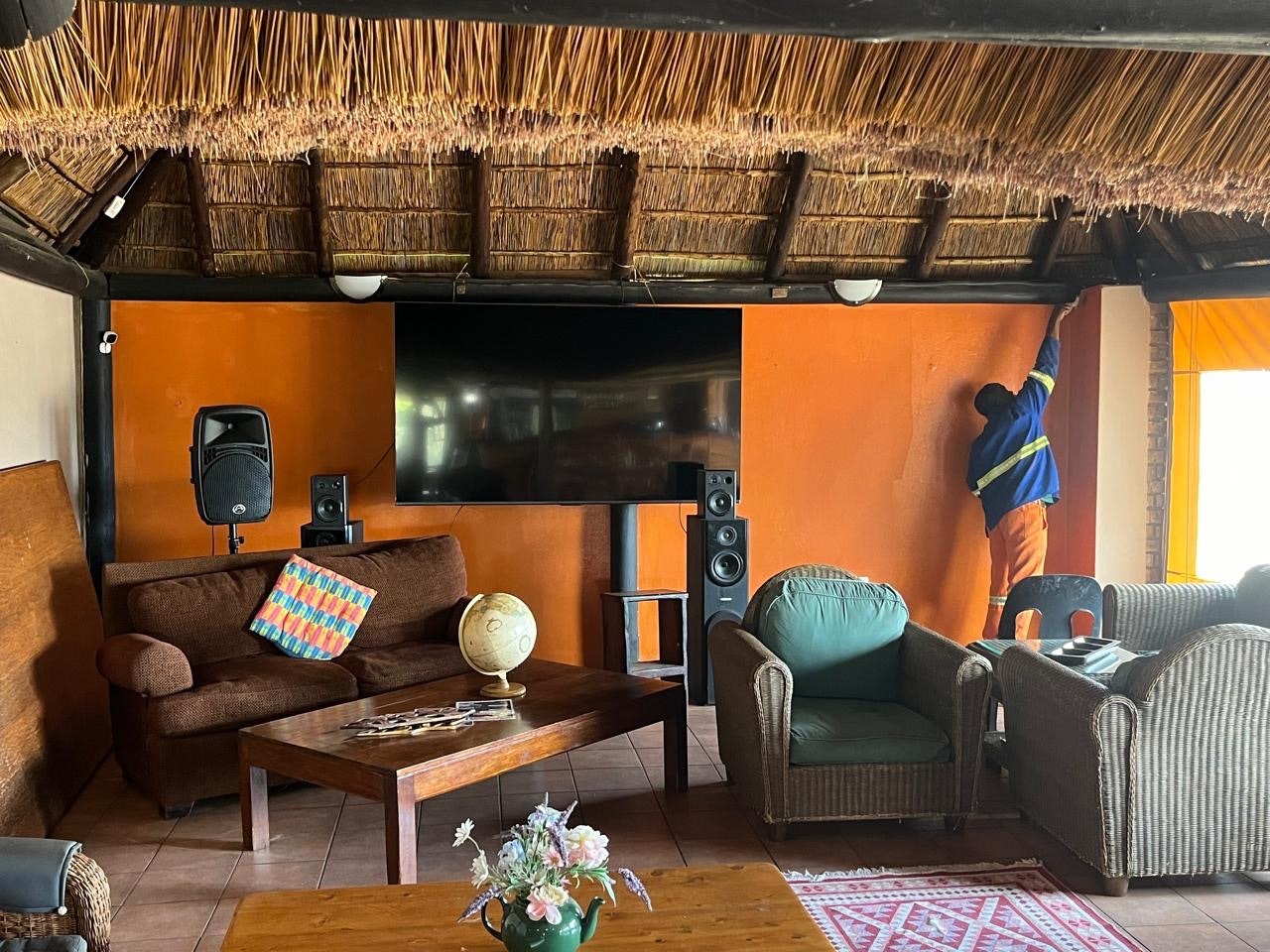 The fully licensed restaurant on the farm, which offers scrumptious à la carte meals, specialised coffees and a lounge area with DStv facilities, available upon request. Relax on the deck outside, looking at an amazing sunset whilst listening to the lions roaring in the background.