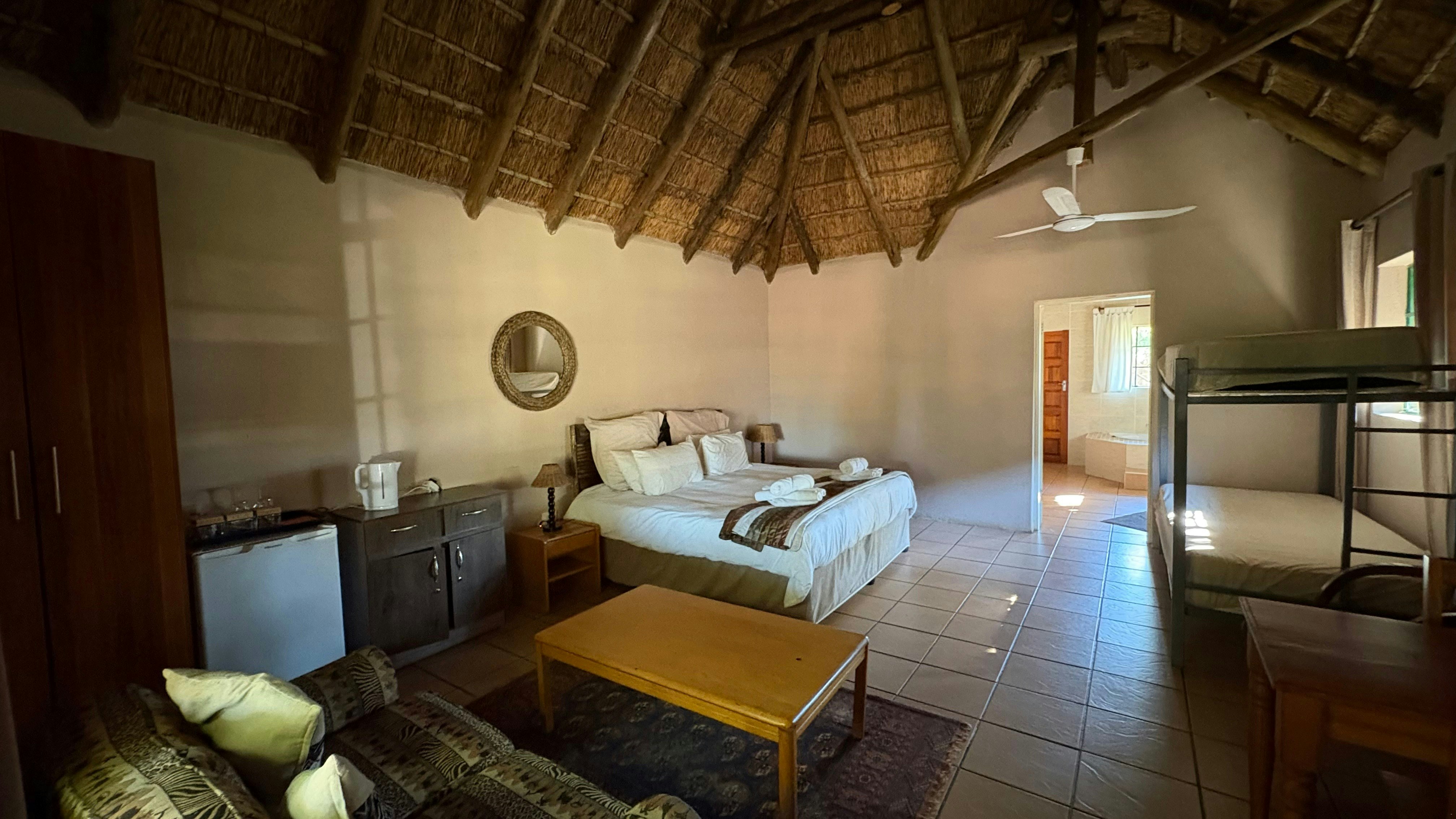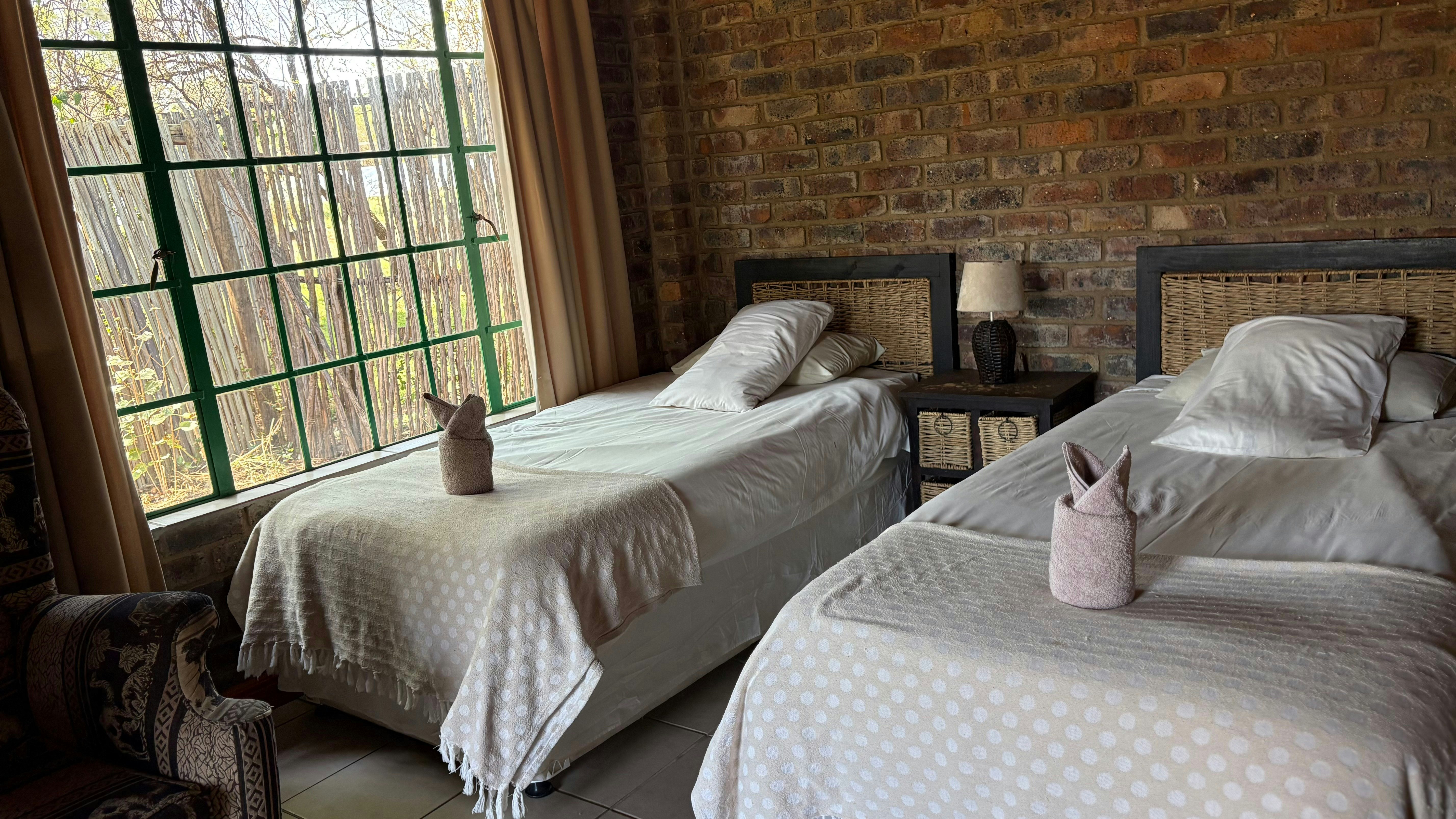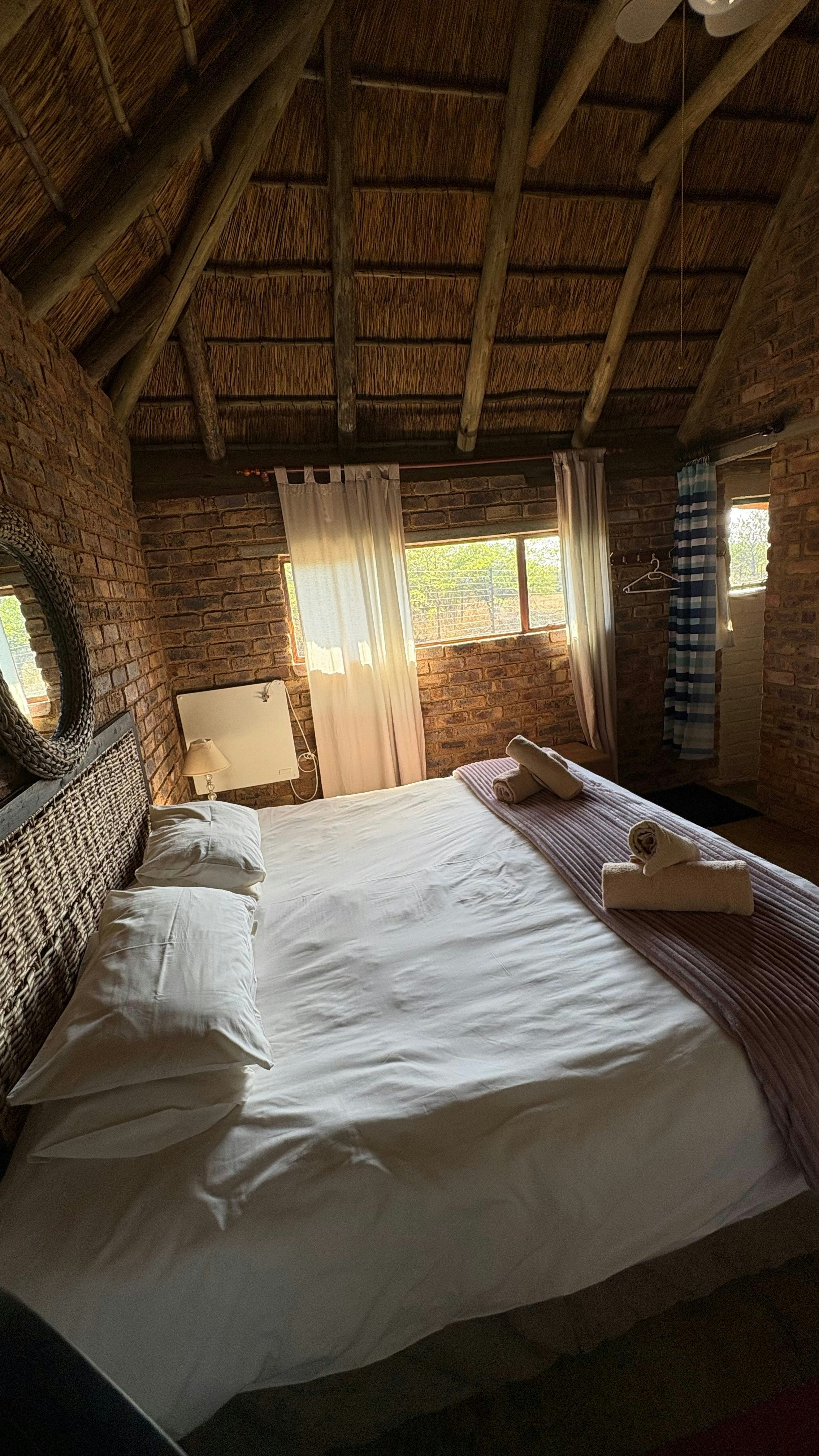 Facilities on site include a warm and welcoming boma, which can accommodate larger groups, and has a large braai area. Guests can book at the bush spa salons under thatch or, at extra cost, enjoy the Jacuzzis in the open. Please note that we drain the Jacuzzi and refill it. The Jacuzzi requires at least six hours to heat up, and the price is for the first hour; after that, the charge is per hour. There are also 2 swimming pools available.