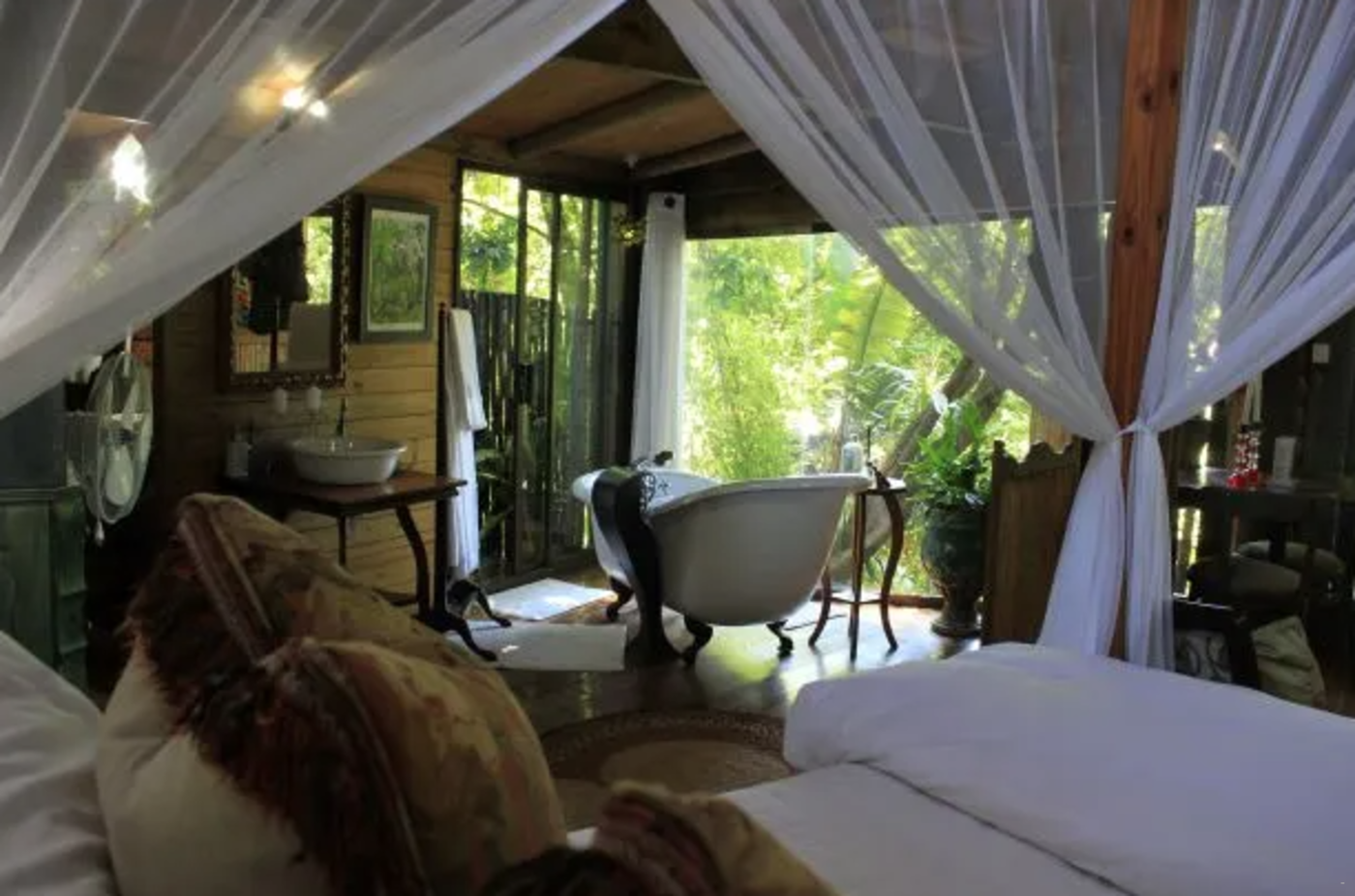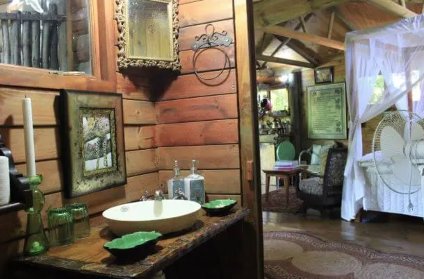 Dié pragtige boomhuis het slaapplek vir 2 gaste en beskik oor 1 slaapkamer en 1 badkamer. Die slaapkamer is ingerig met 'n koningingrootte-bed en het 'n en suite-badkamer met 'n stort-oor-bad, wasbak en toilet.