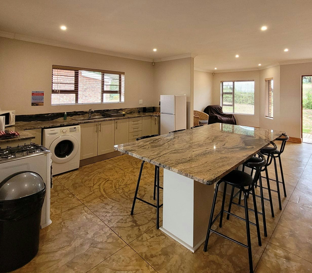Each villa also comprises an open-plan kitchen and lounge. Each kitchen features granite tops, and is equipped for self-catering with an electric stove, a microwave, and a self-igniting gas hob. Each villa is also equipped with selected DStv channels, including sport channels.