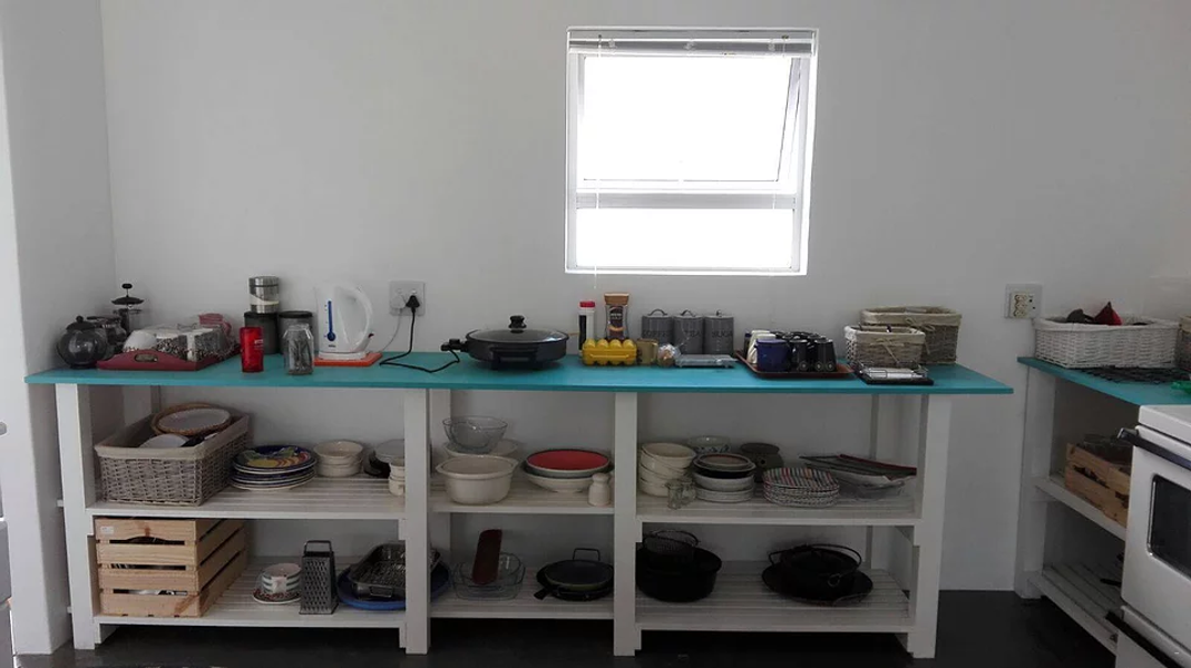 The kitchen is well-equipped for self-catering with a stove and oven, microwave, kettle, and cutlery and crockery. There is a scullery with a fridge-freezer, and a dishwasher. The dining area contains two 4-seater dining tables and a built-in indoor braai. The lounge contains seating and a TV with a selection of DStv channels. Wi-Fi is available.