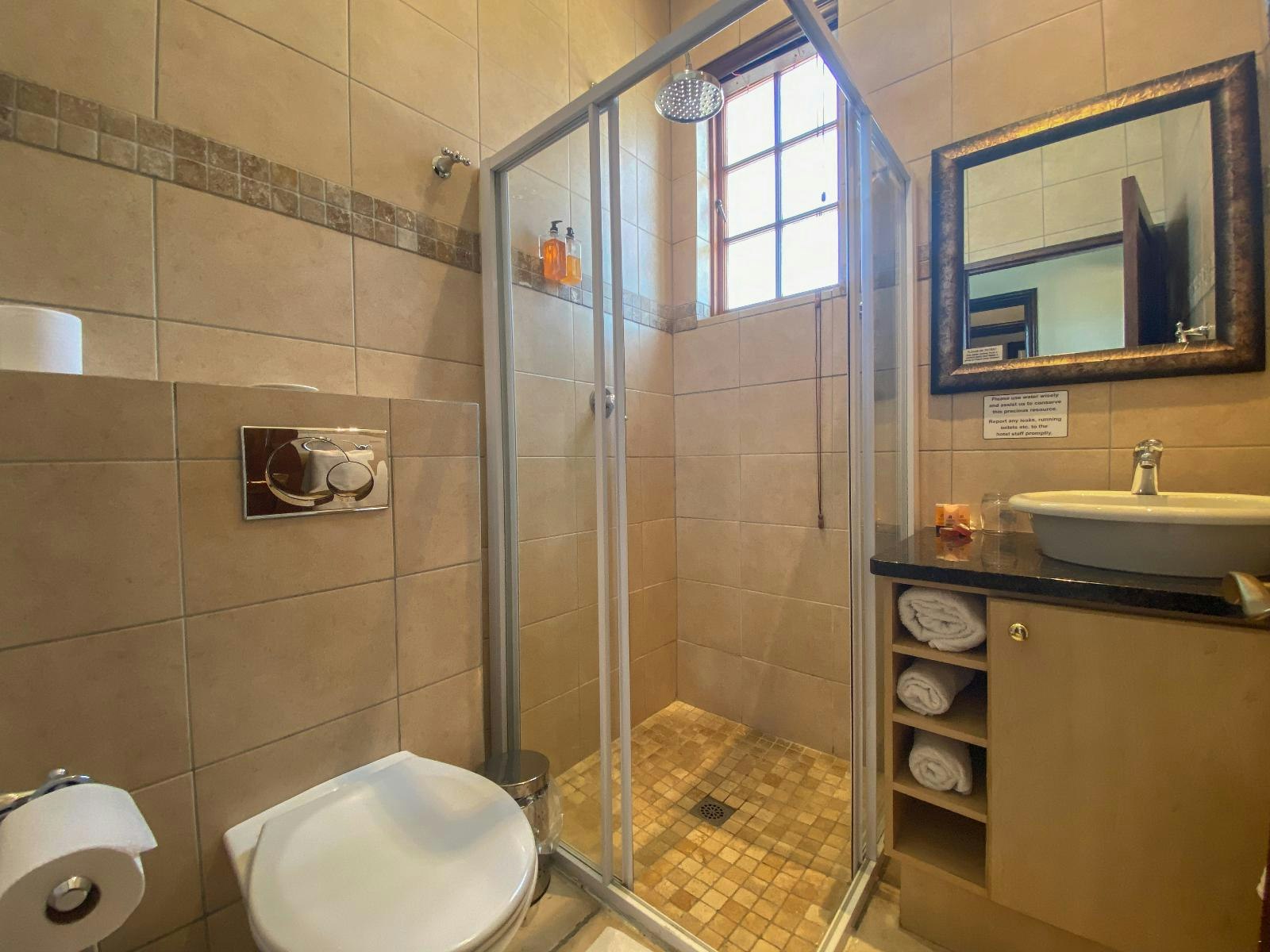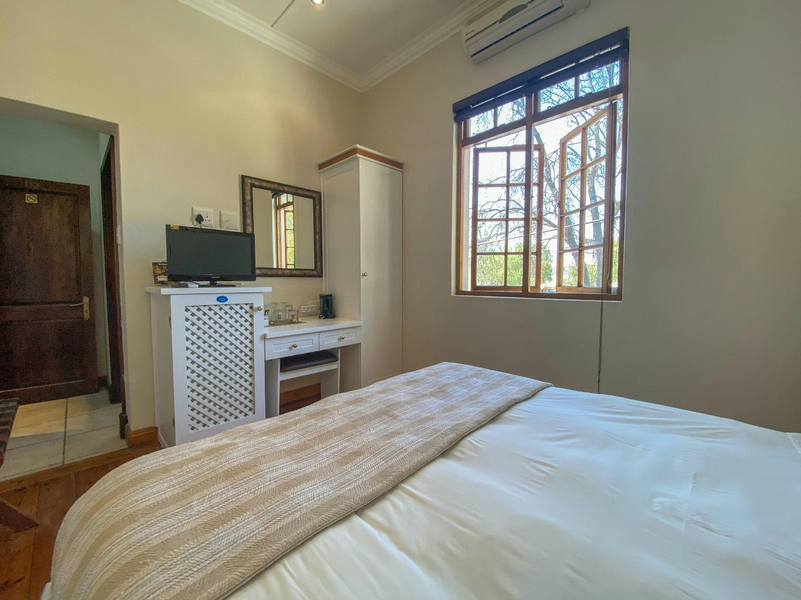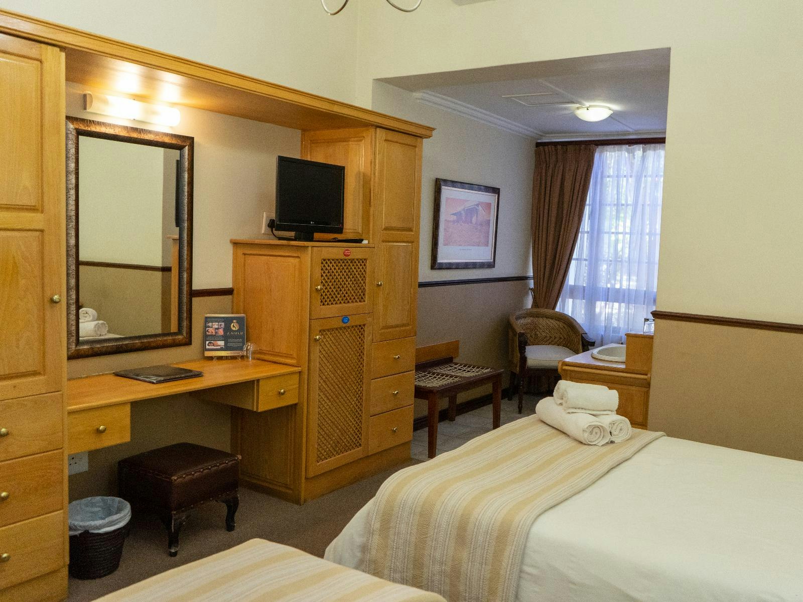 A room for the night. Not worth the rating! The client service was not as wished. We were travelling for the Meiringspoort Half Marathon. There is no telephone in the room to contact the service desk should there be a need. The TV quality is not on standard with the 4-star rating the hotel enjoys, and then the service the next morning was shocking. We all booked breakfast packs as we had to leave at 04:00 in the morning (not the only guests that requested it), but there was no one to check us out and assist with the packs. I was travelling with 3-year-old and 9-year-old kids.
