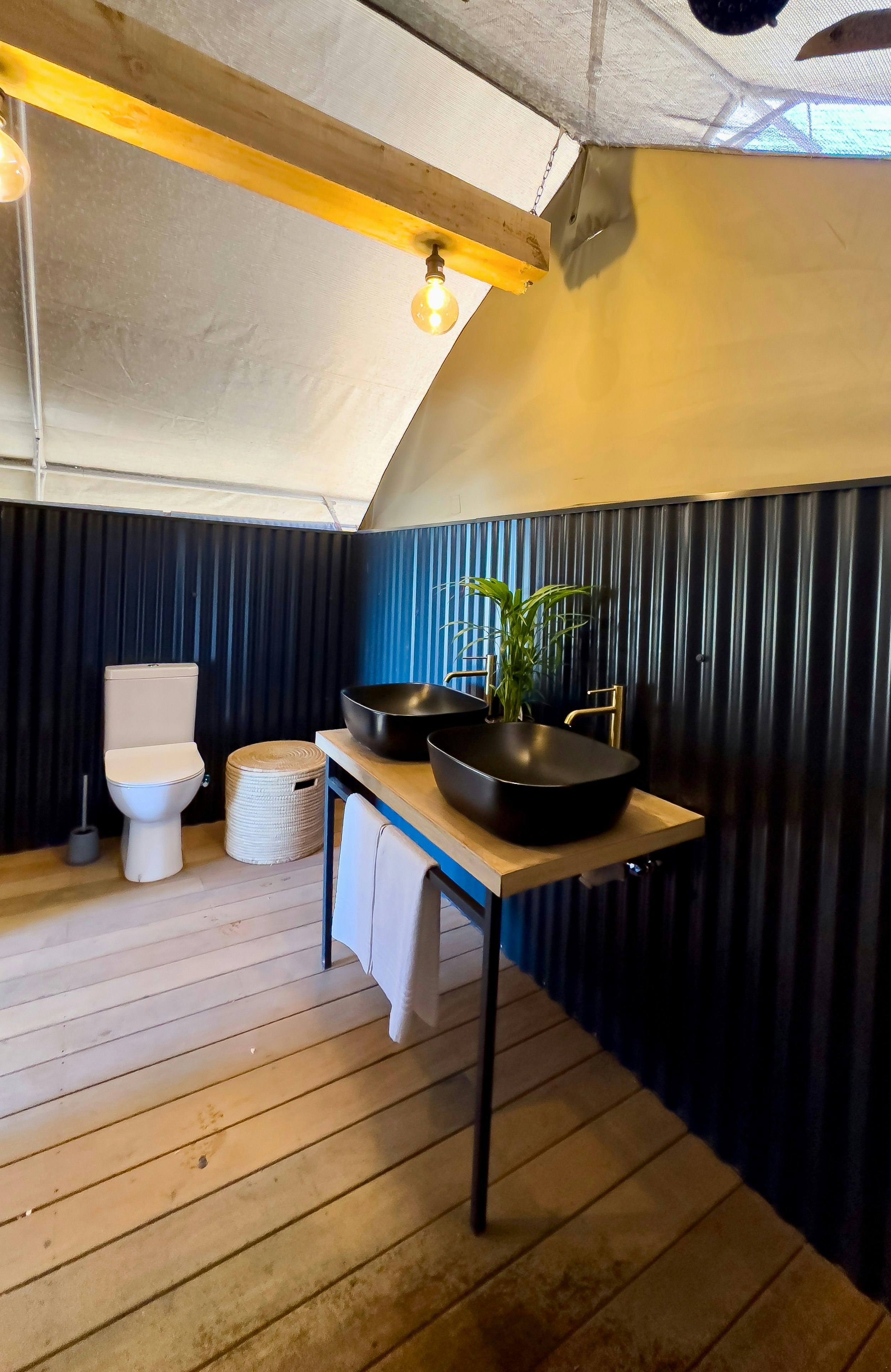 The 2 tents need to be booked as a whole and are ideal for couples looking for a romantic getaway. Each tent is furnished with a queen-size bed and has en-suite bathrooms fitted with a shower, basin, and toilet. Crisp linen and towels are provided.