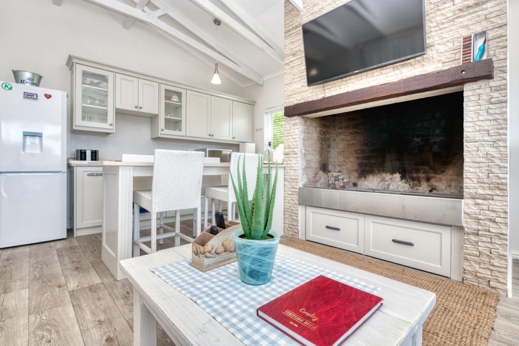 The lounge holds comfortable seating and a TV with full DStv. There is an indoor braai area where guests can enjoy preparing a meal together. Wi-Fi is available.