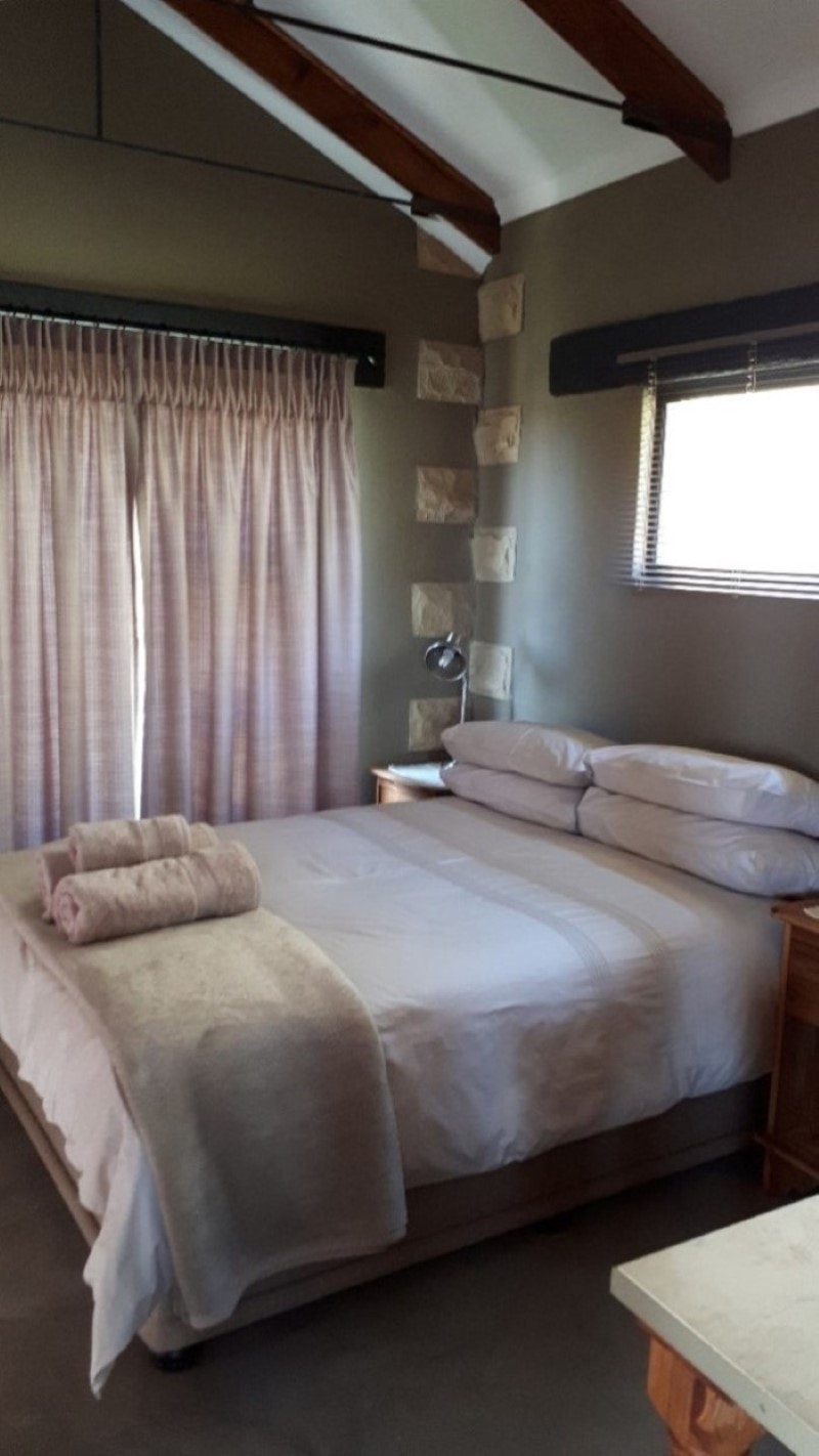 Chalet 2 is a private and secluded self-catering chalet with a panoramic view of 360° and it offers 2 bedrooms, each with a double bed. The unit has a kitchen, living area, bathroom, patio and braai facilities. This chalet also offers access to the communal swimming pool.