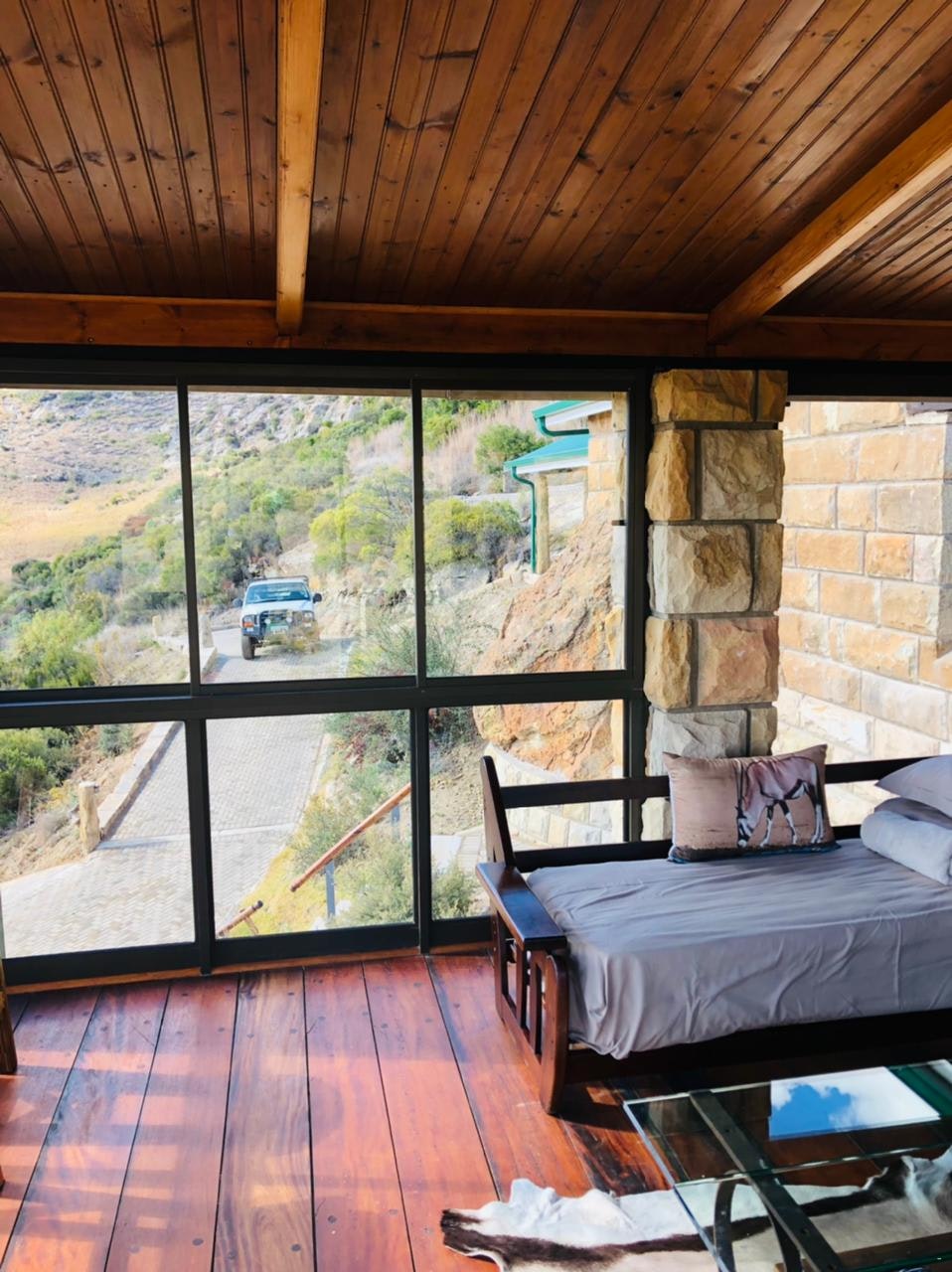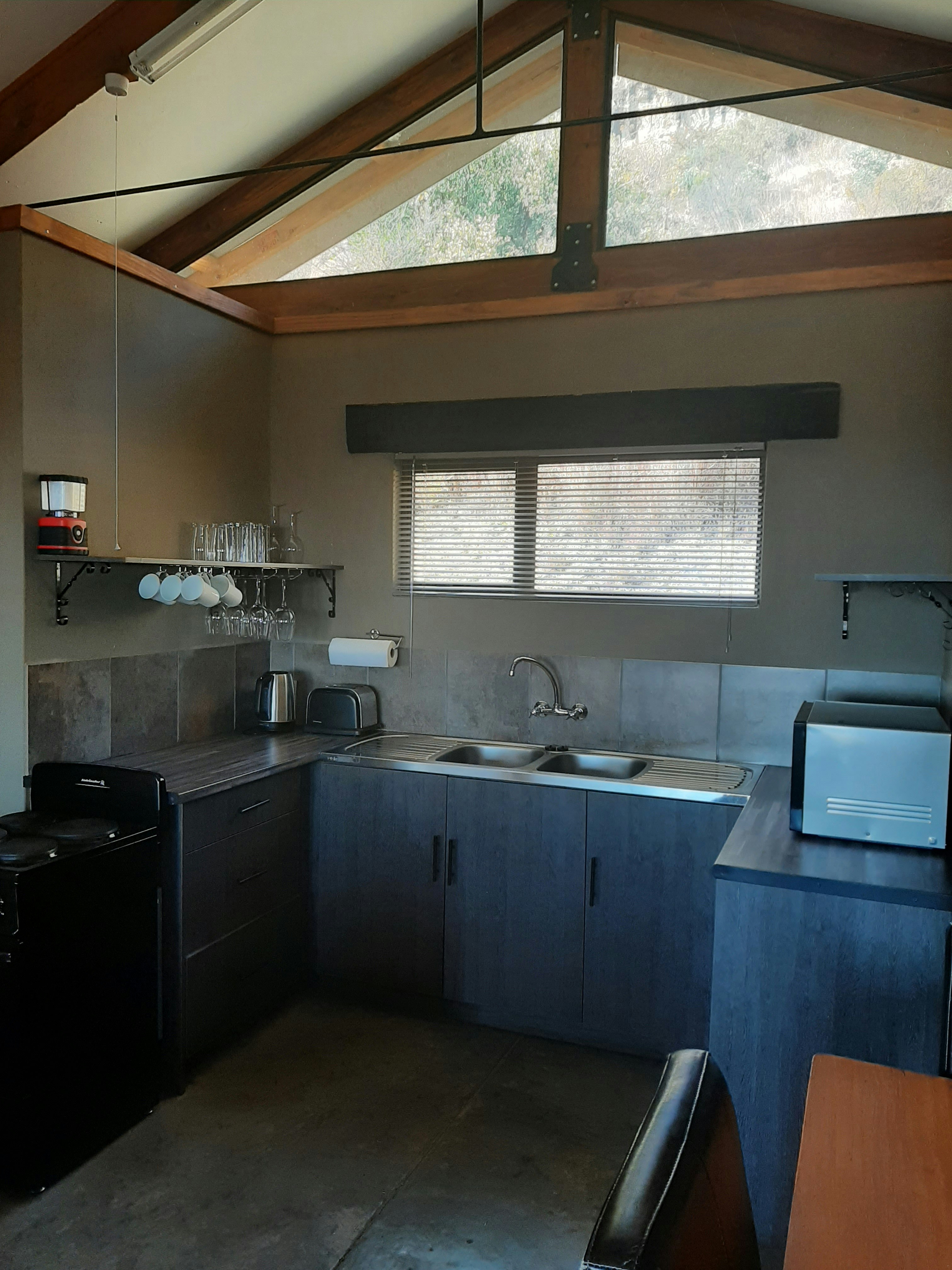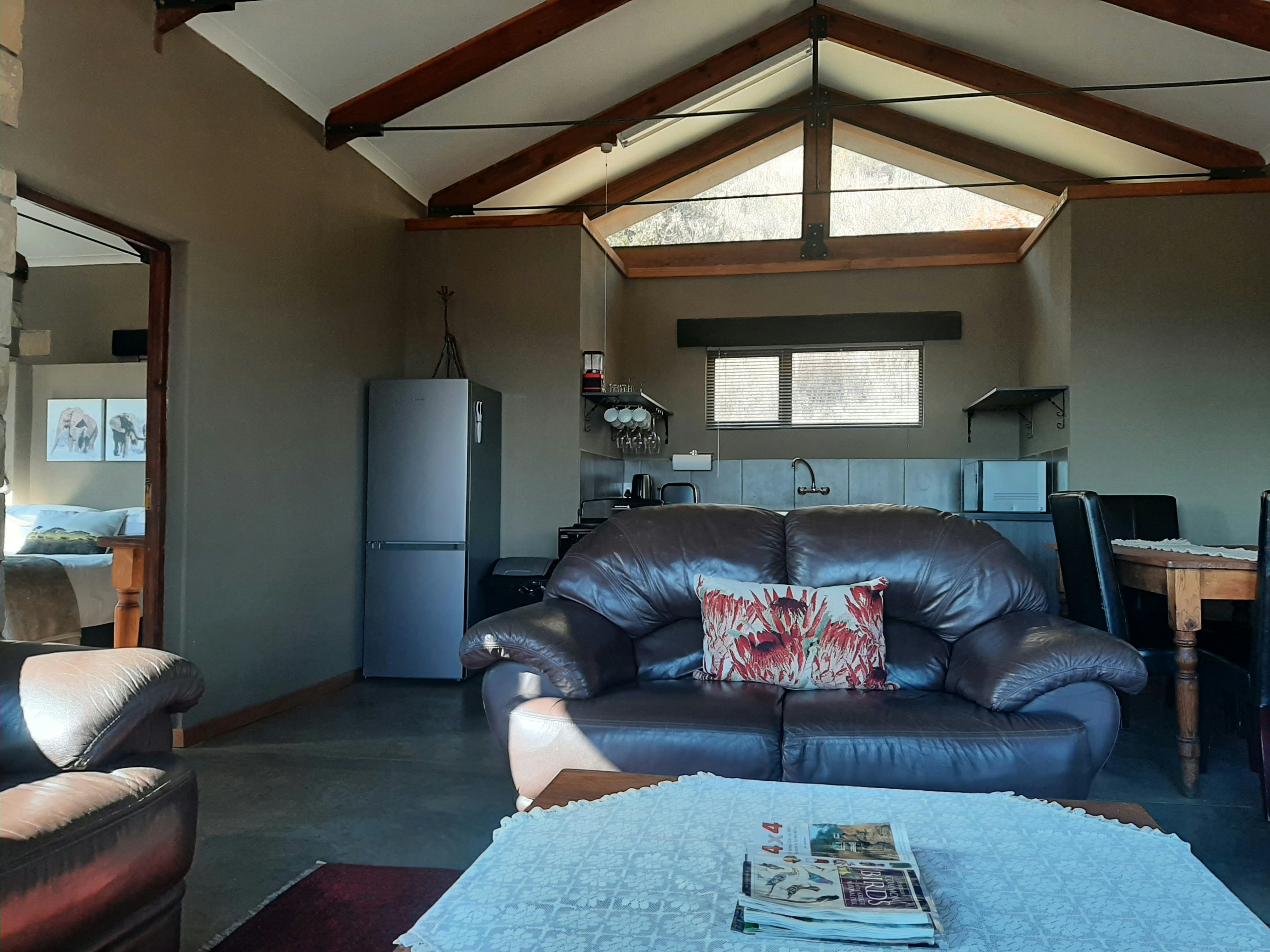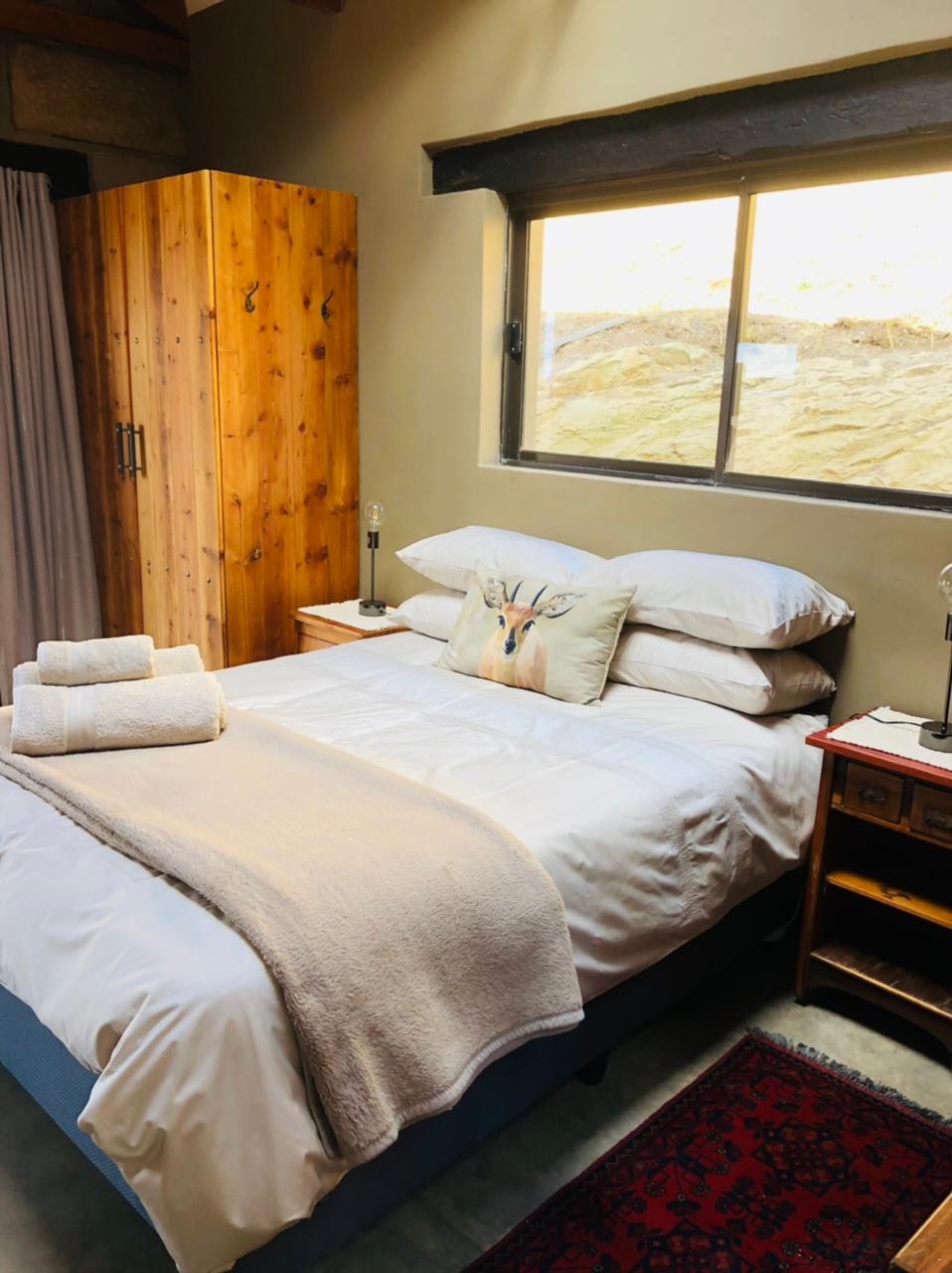 Chalet 4 is a private, remote self-catering chalet with a 360° panoramic view and it offers accommodation in 2 bedrooms, one with a double bed and the other with a queen bed and bunker beds. The unit has a kitchen, living area, bathroom, porch, and braai facilities. The chalet also has access to the communal pool.