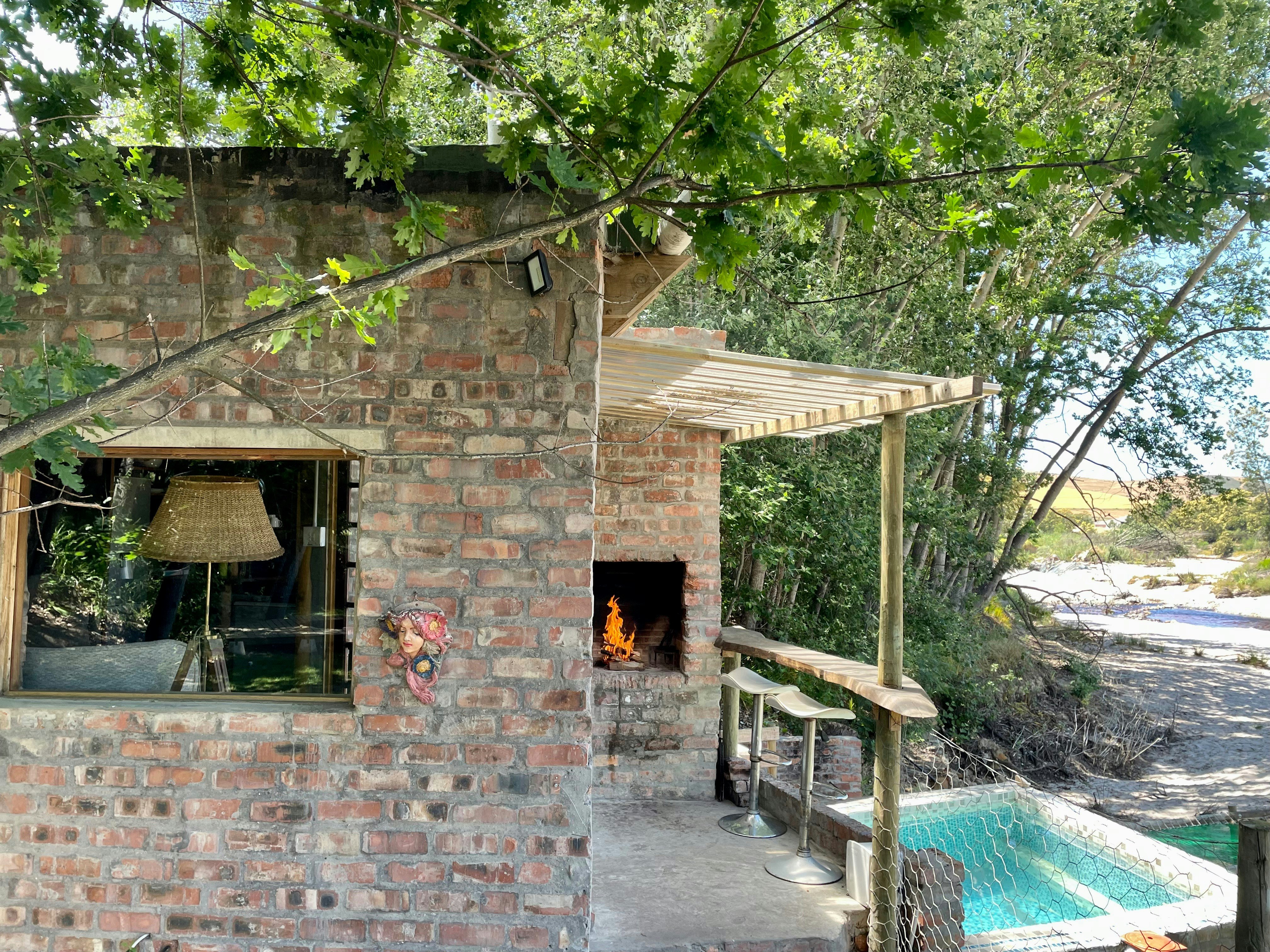 Rivendell Cottage, perched on the edge of the Twaalfontein stream, has two sleeping areas and one bathroom, with a king-sized bed in the first area and a double and single bed in the second. There is a full kitchen that includes a gas stove with oven and hob, a large fridge freezer a dishwasher a microwave and a toaster. The patio features an enclosed braai area with ample seating and a pizza oven. There is a hot tub and plunge pool and steps down to a private fire pit set amongst the poplar forest and next to the stream.