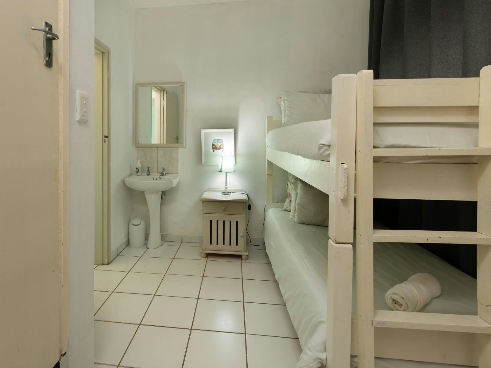 This apartment accommodates up to 6 guests and comprises 3 bedrooms and 2 bathrooms. The main bedroom is furnished with a king-size bed that can easily be converted into two single beds, while the second bedroom contains two single beds. These bedrooms share a bathroom fitted with a bath, washbasin, and toilet. The third bedroom features a bunk bed and an en-suite bathroom fitted with a shower, washbasin, and toilet. All linen and bath towels are provided; however, guests are required to bring their own beach towels.