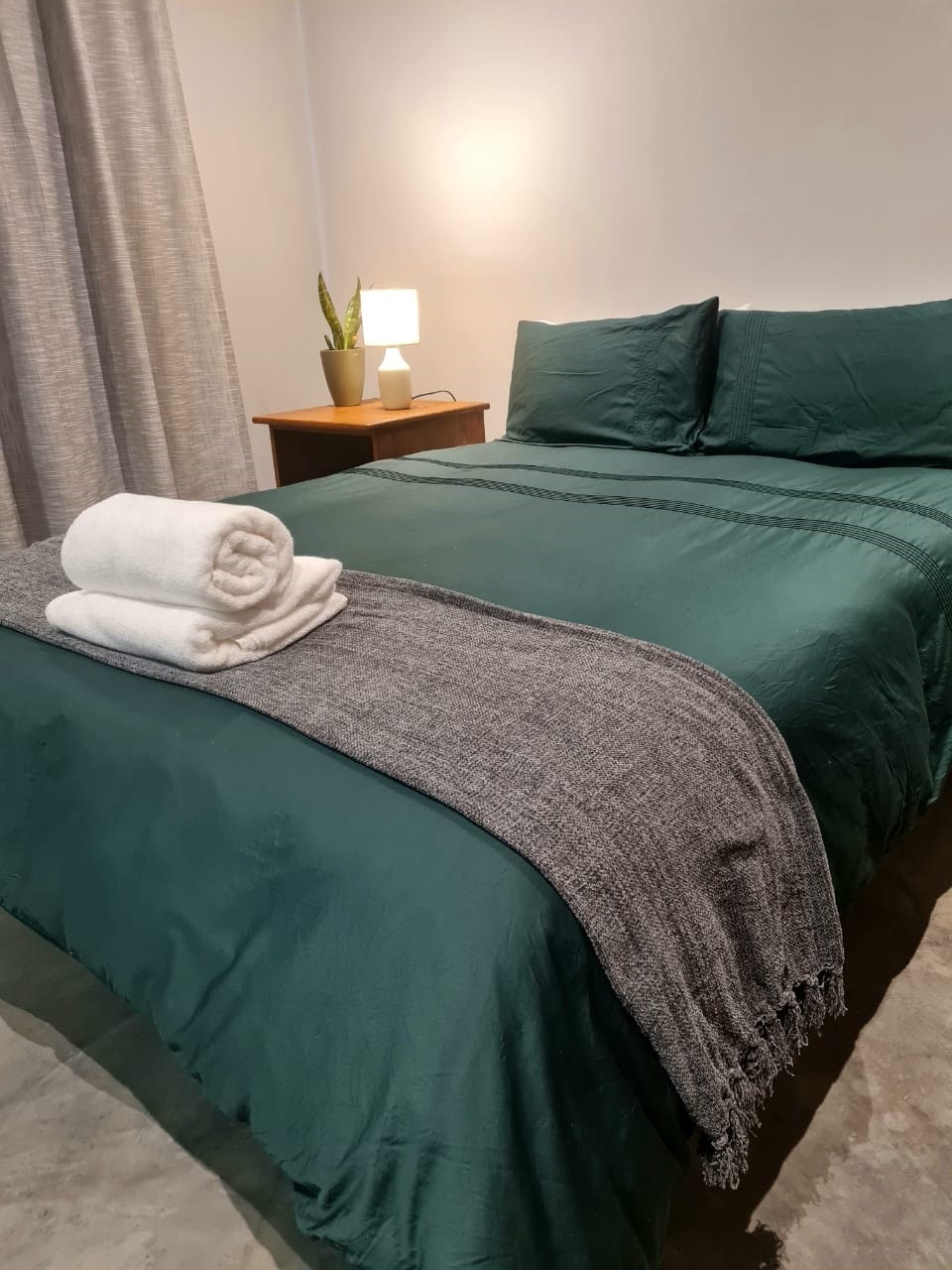 Die huis bied 4 slaapkamers, elk met 'n en suite-badkamer. Die eerste slaapkamer het 'n dubbelbed en 'n en suite-badkamer met 'n stort. Die tweede slaapkamer het 'n koningingrootte-bed en 'n en suite-badkamer met 'n stort, toilet en wasbak. Die derde slaapkamer het 'n stapelbed en 'n en suite-badkamer met 'n stort-oor-bad. Die vierde slaapkamer het 'n koningingrootte-bed en 'n en suite-badkamer met 'n stort. Linne en badhanddoeke word voorsien.