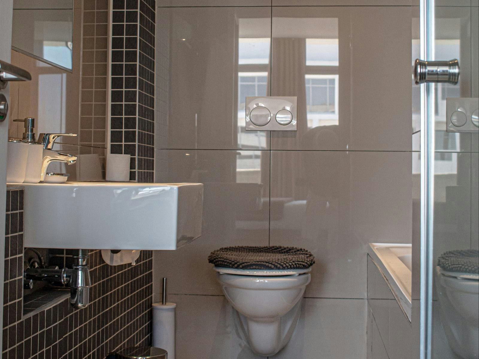 The apartments feature 2 bedrooms, each furnished with a queen-size bed, sharing a bathroom fitted with a shower, toilet, and basin.