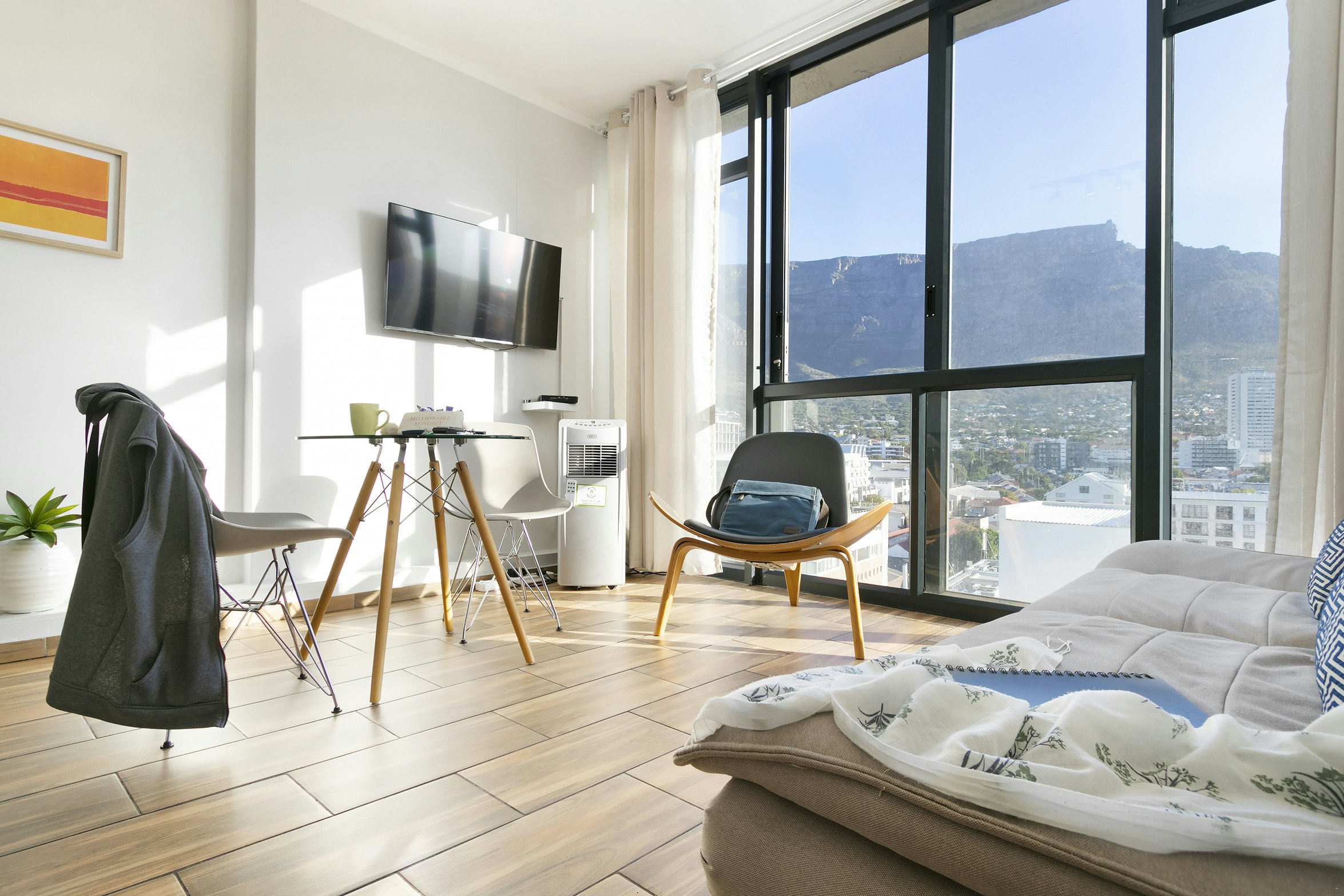 Ruim, netjies, skoon. Ruim leefarea met pragtige uitsigte oor Tafelberg en die stad.