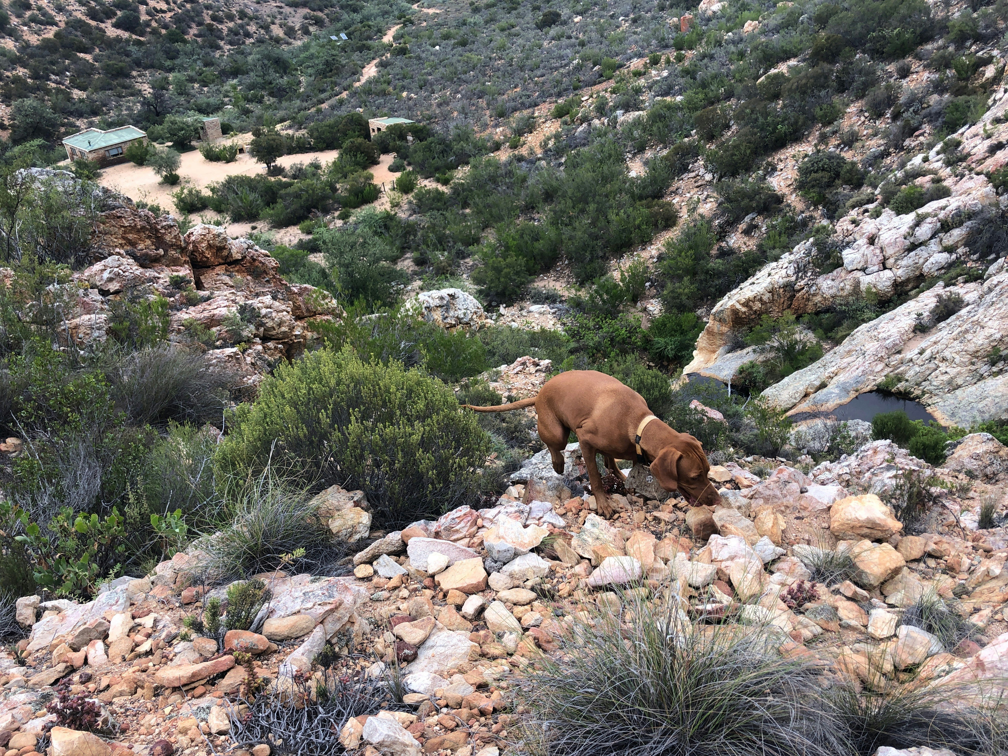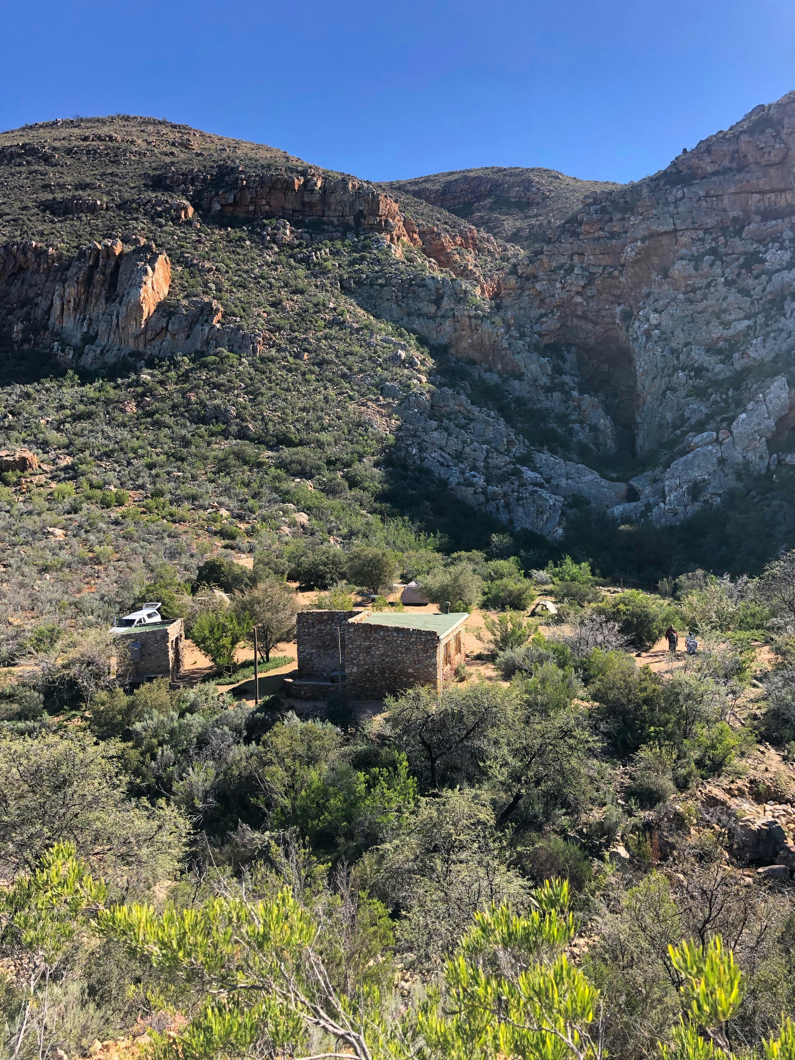 The campsite is nestled at the base of a kloof in indigenous bush. The gate at the campsite leads into the vast expanse of the Anysberg Cape Nature Reserve. The campsite offers braai areas and 2 ablution blocks with a hot shower under the open skies, a toilet, wash basin and dish-washing facilities.