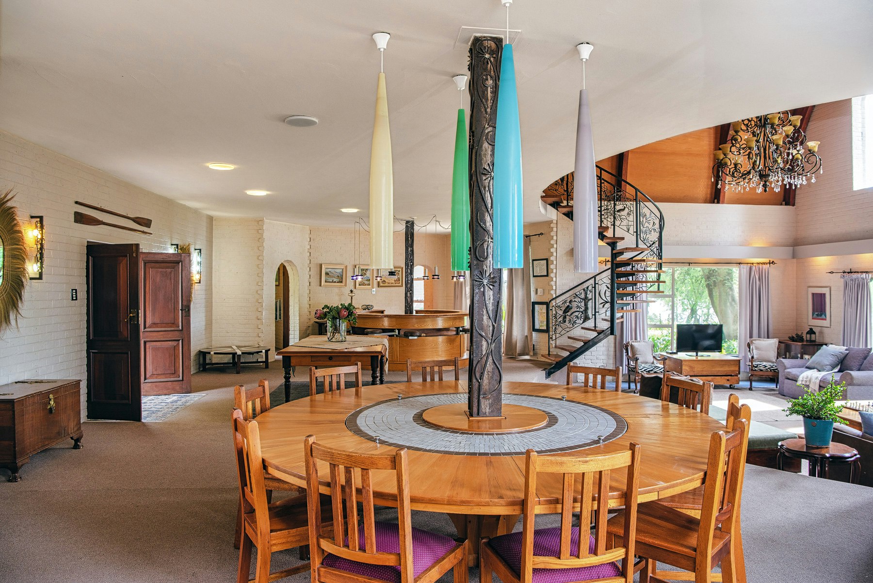 The open-plan living area features a lounge, a dining area and a kitchen. The kitchen is equipped with a gas stove and oven, electric stove and oven, microwave, fridge-freezer, tea- and coffee-making facilities and cutlery and crockery. The lounge is furnished with comfy seating, a coffee table and a TV. The dining area is furnished with a dining table suitable for 10 guests. Access to free Wi-Fi is available.