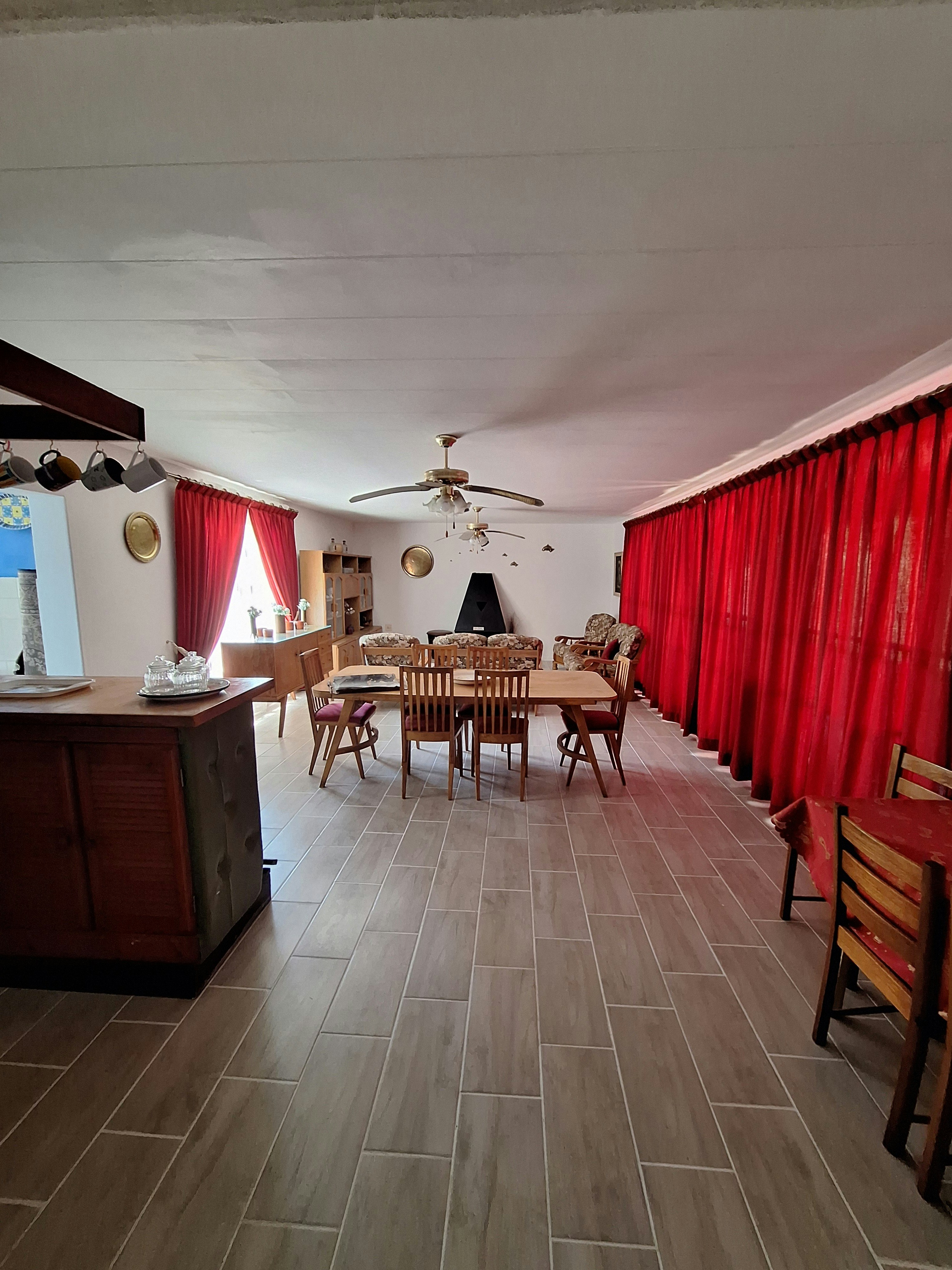 Daar is 'n kombuis en 'n leefarea op die eerste én tweede verdiepings. Die kombuis is met 'n yskas-vrieskas, stoof, oond en mikrogolf toegerus. Die leefarea op albei verdiepings het 'n etenstafel en gemaklike rusbanke.