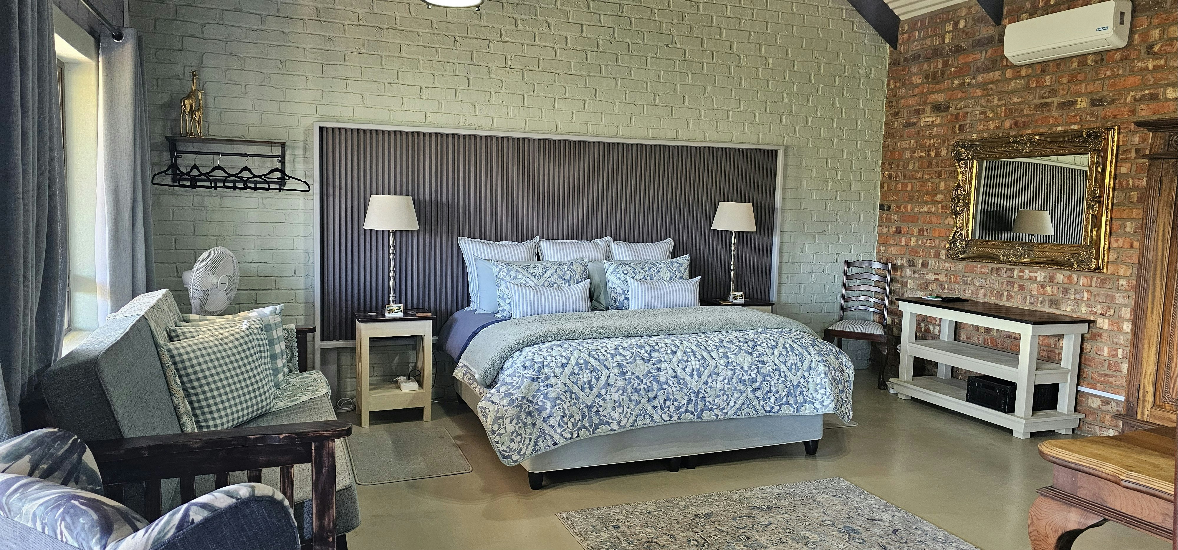 The lodge consists of a central dining area, a large stylish lounge with a fireplace and a bar area that overlooks the river and natural rock face in the distance. The lodge has the following units available standard double room which sleeps 2 guests, a standard twin room which sleeps 2 guests, 2 deluxe double rooms that can sleep 3 guests, 1 family room that can sleep 4 guests and 1 executive suite that can sleep 4 guests. We have also added 3 self-catering chalets that can sleep 4 and 2 persons respectively.