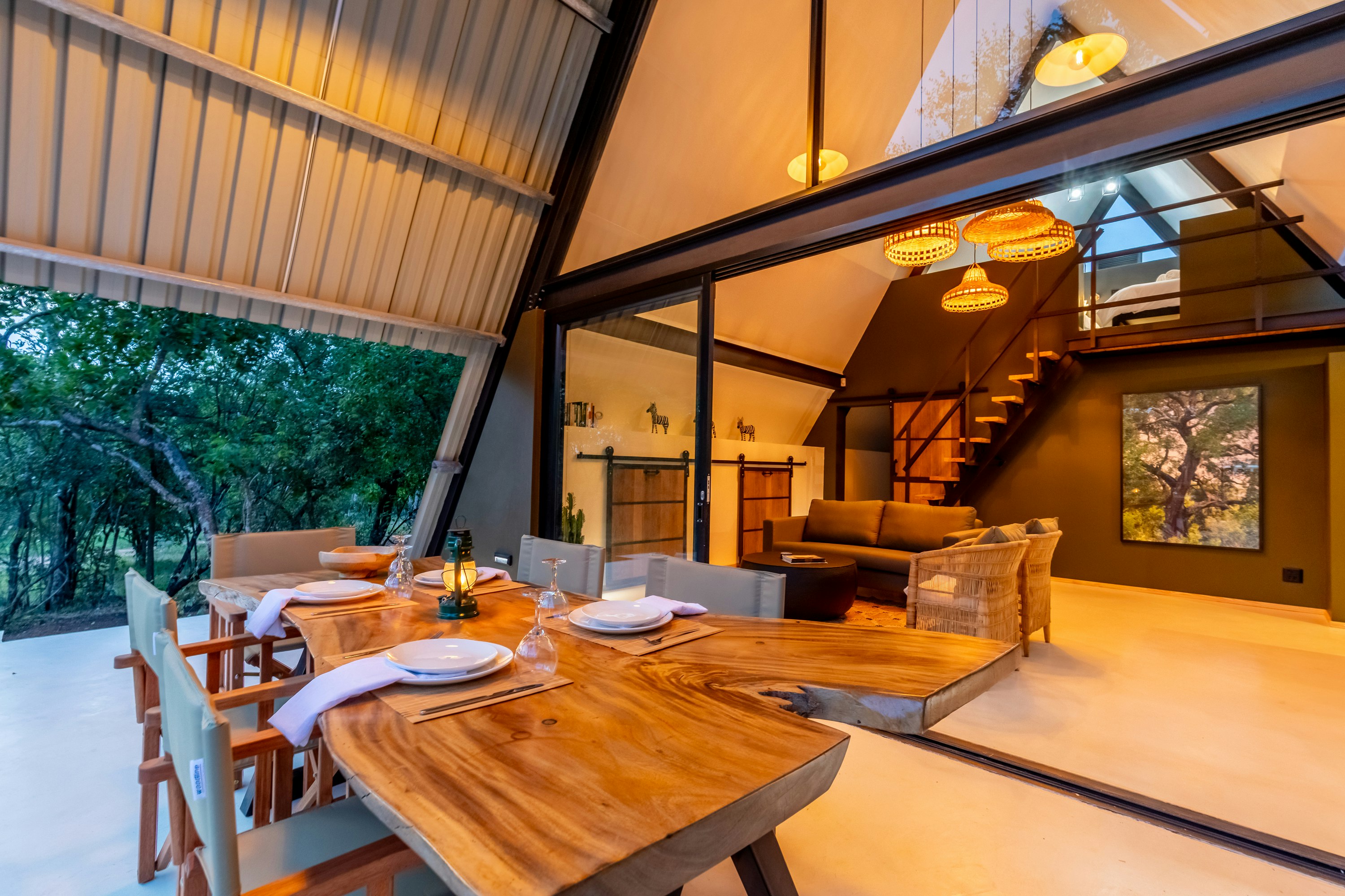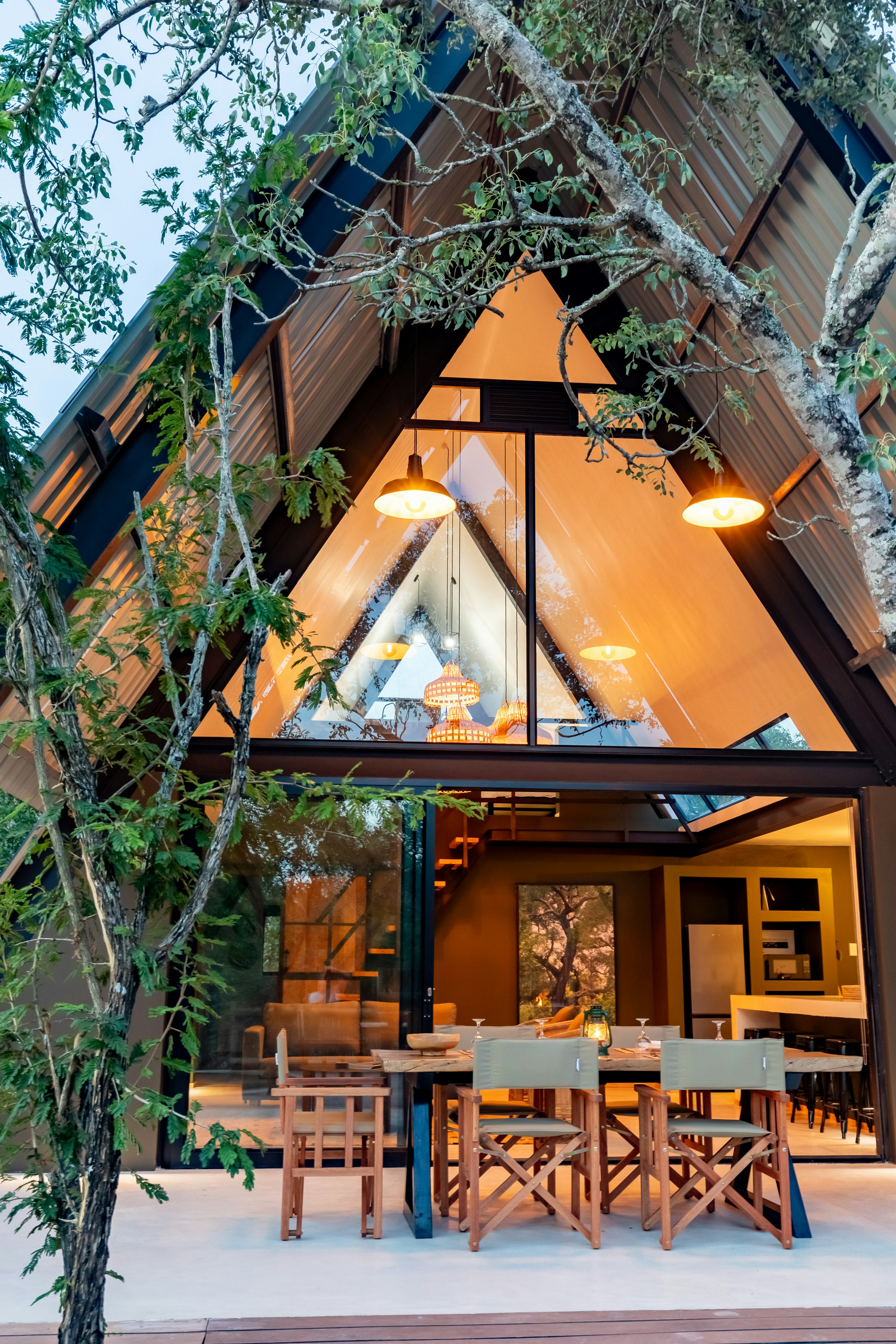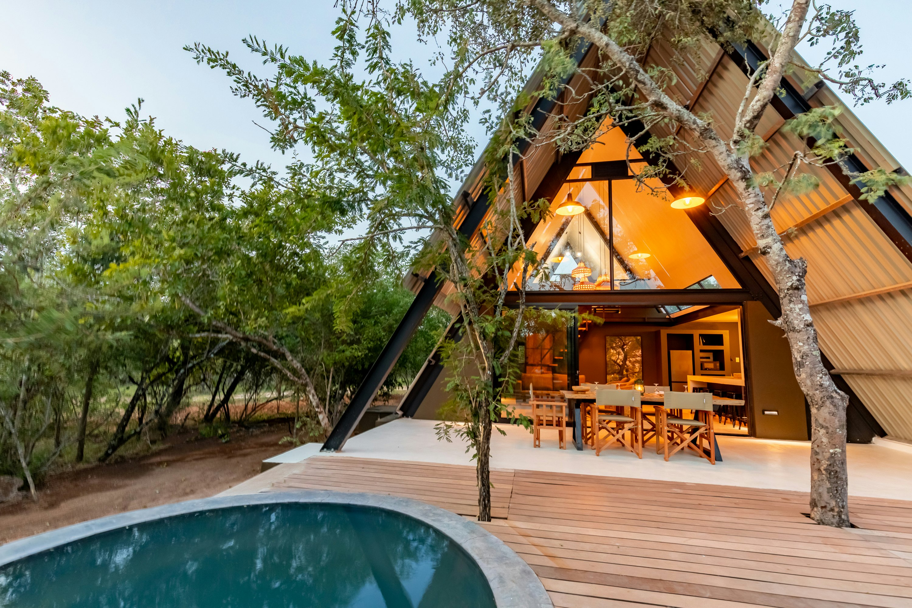 Immerse yourself in the beauty of the bush at Van Jan, a charming, modern A-frame house nestled in the heart of the bush, bordering Kruger National Park in Marloth Park. This home blends modern comforts and natural serenity, ideal for guests who want to immerse themselves in nature and have a one-of-a-kind getaway.