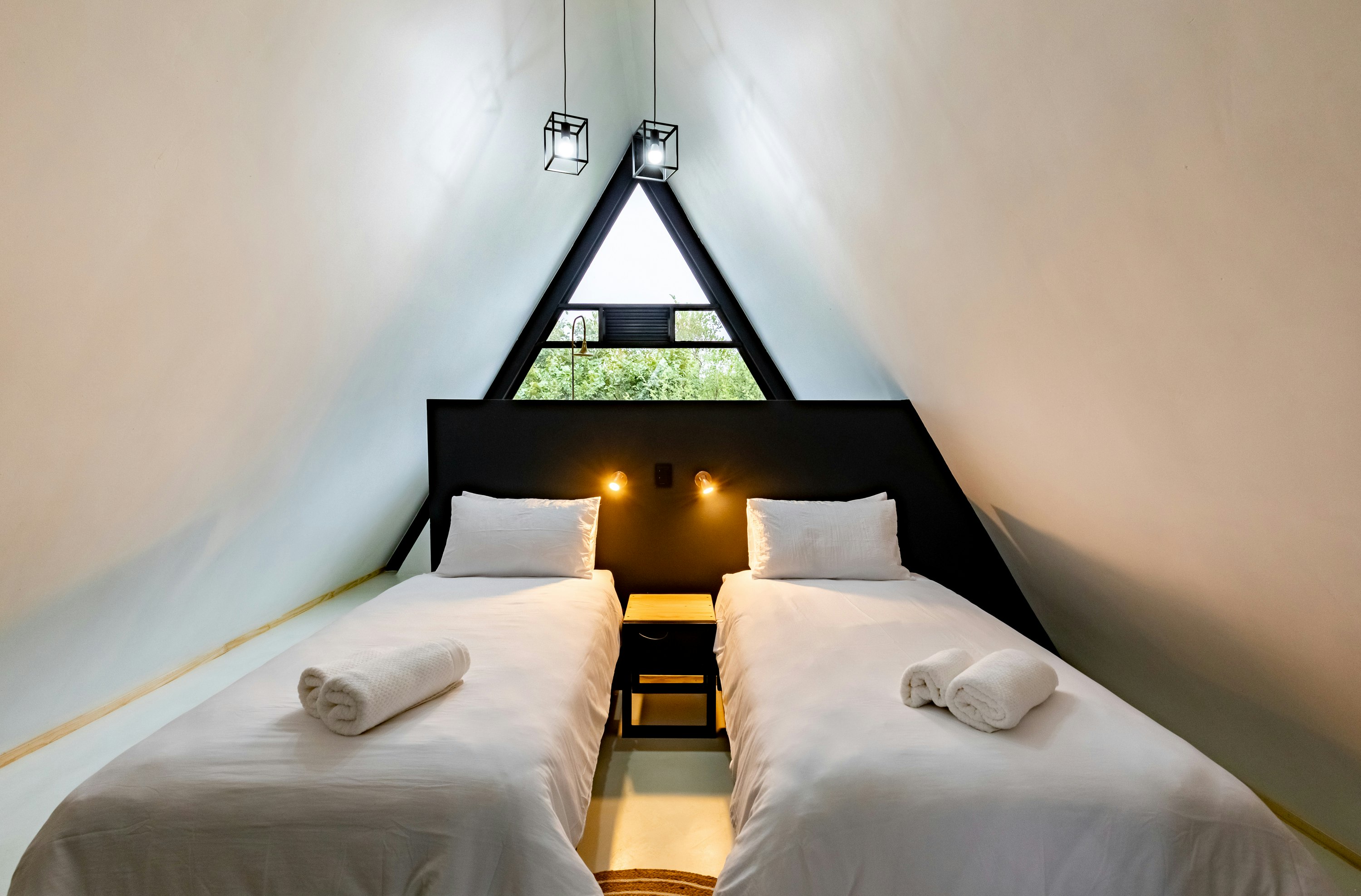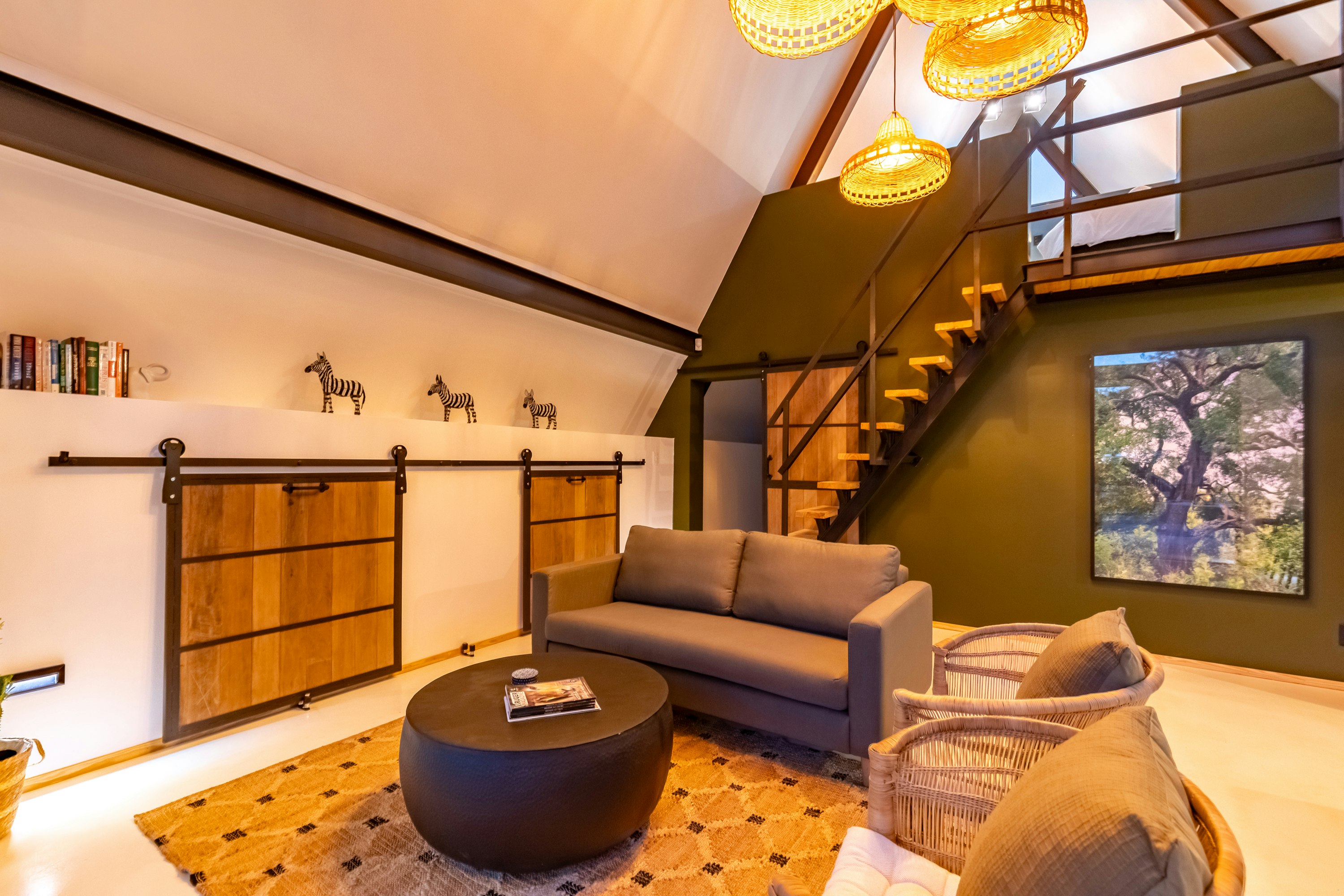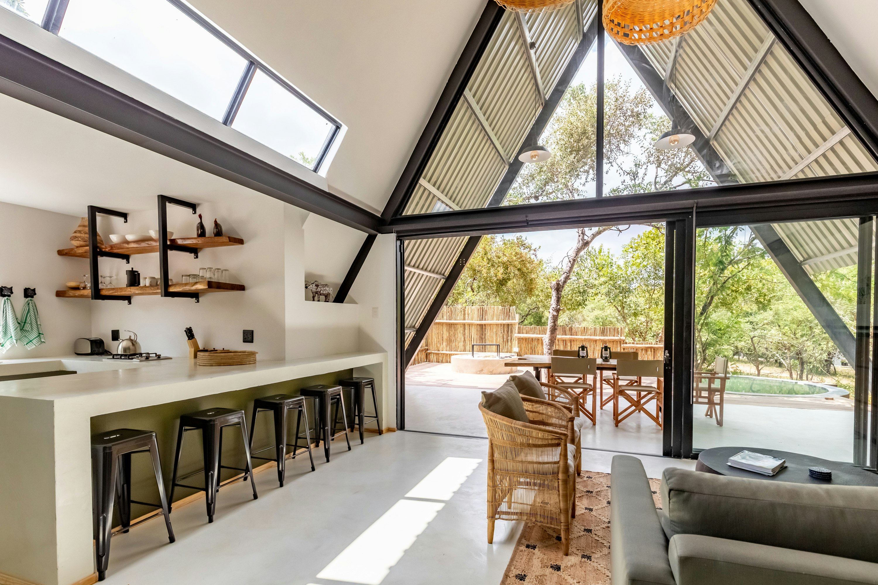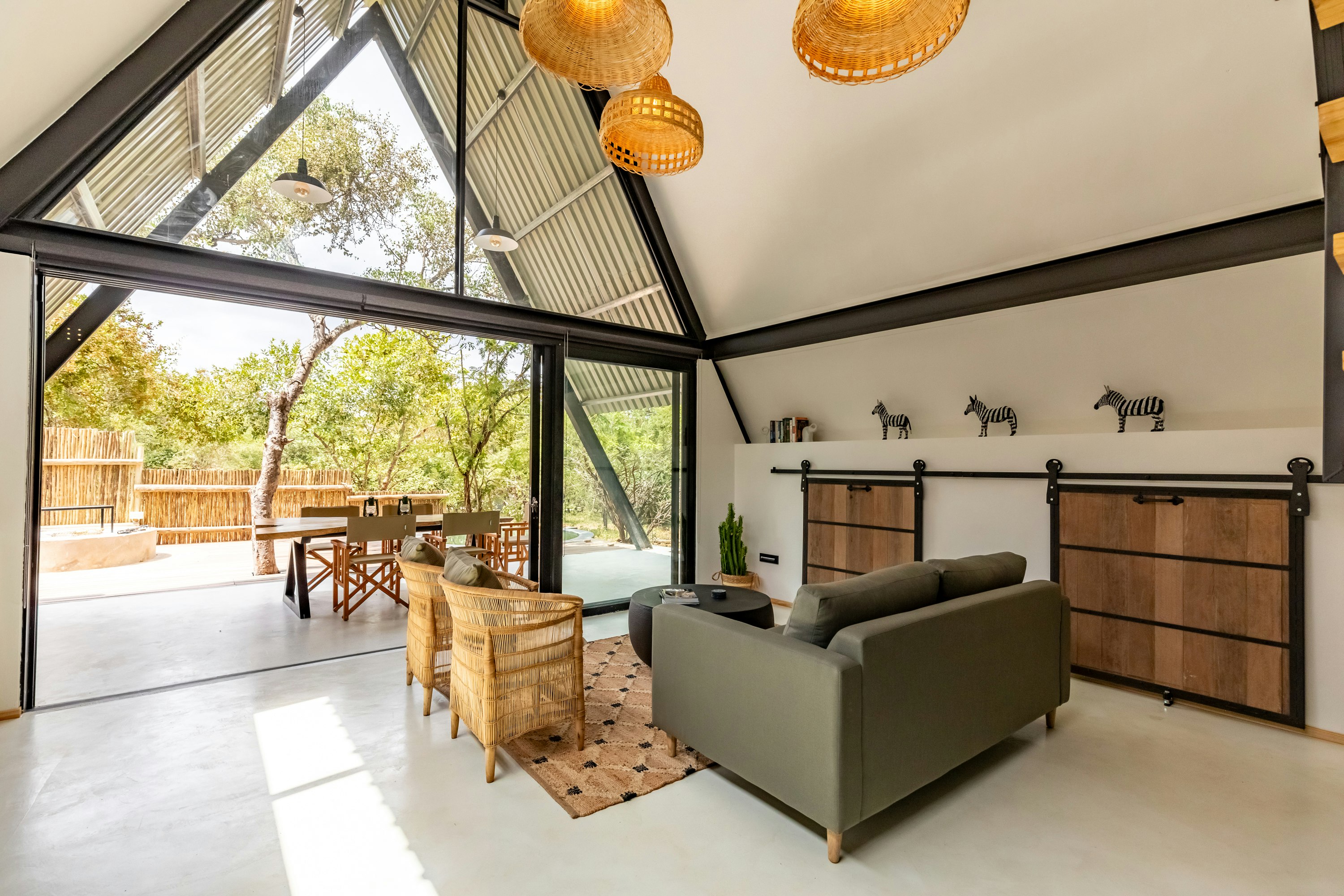 Immerse yourself in the beauty of the bush at Van Jan, a charming, modern A-frame house nestled in the heart of the bush, bordering Kruger National Park in Marloth Park. This home blends modern comforts and natural serenity, ideal for guests who want to immerse themselves in nature and have a one-of-a-kind getaway.