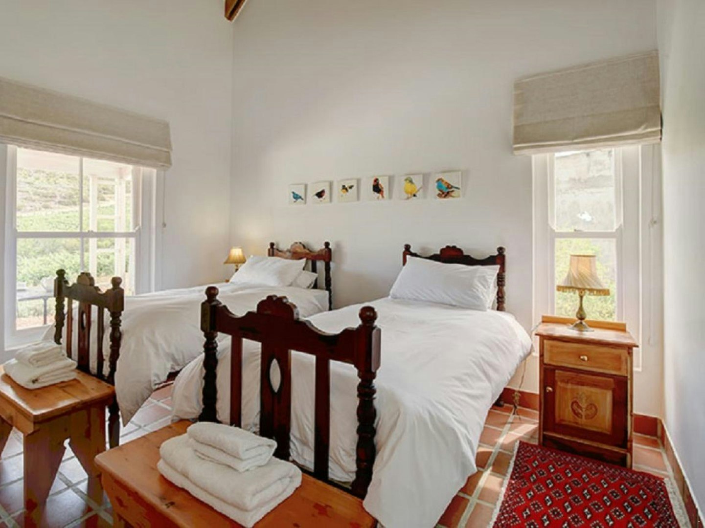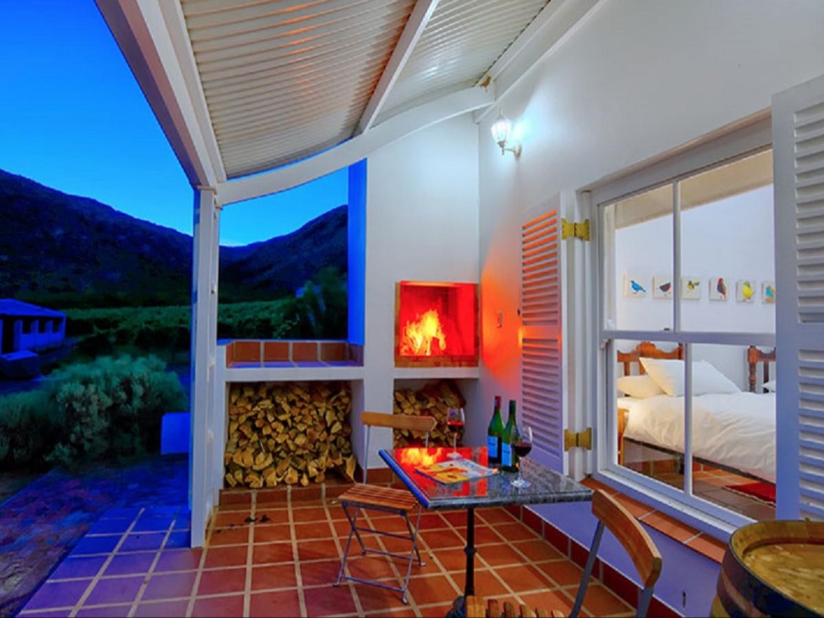 Each house has an open-plan lounge that leads out to a private patio with a braai area or a firepit, and boasts stunning views of the mountains as well as the fruit and vegetable plantations of the farm.