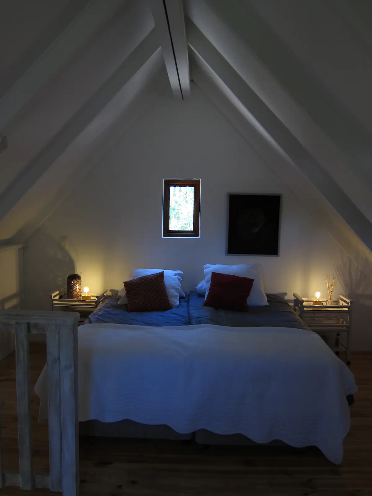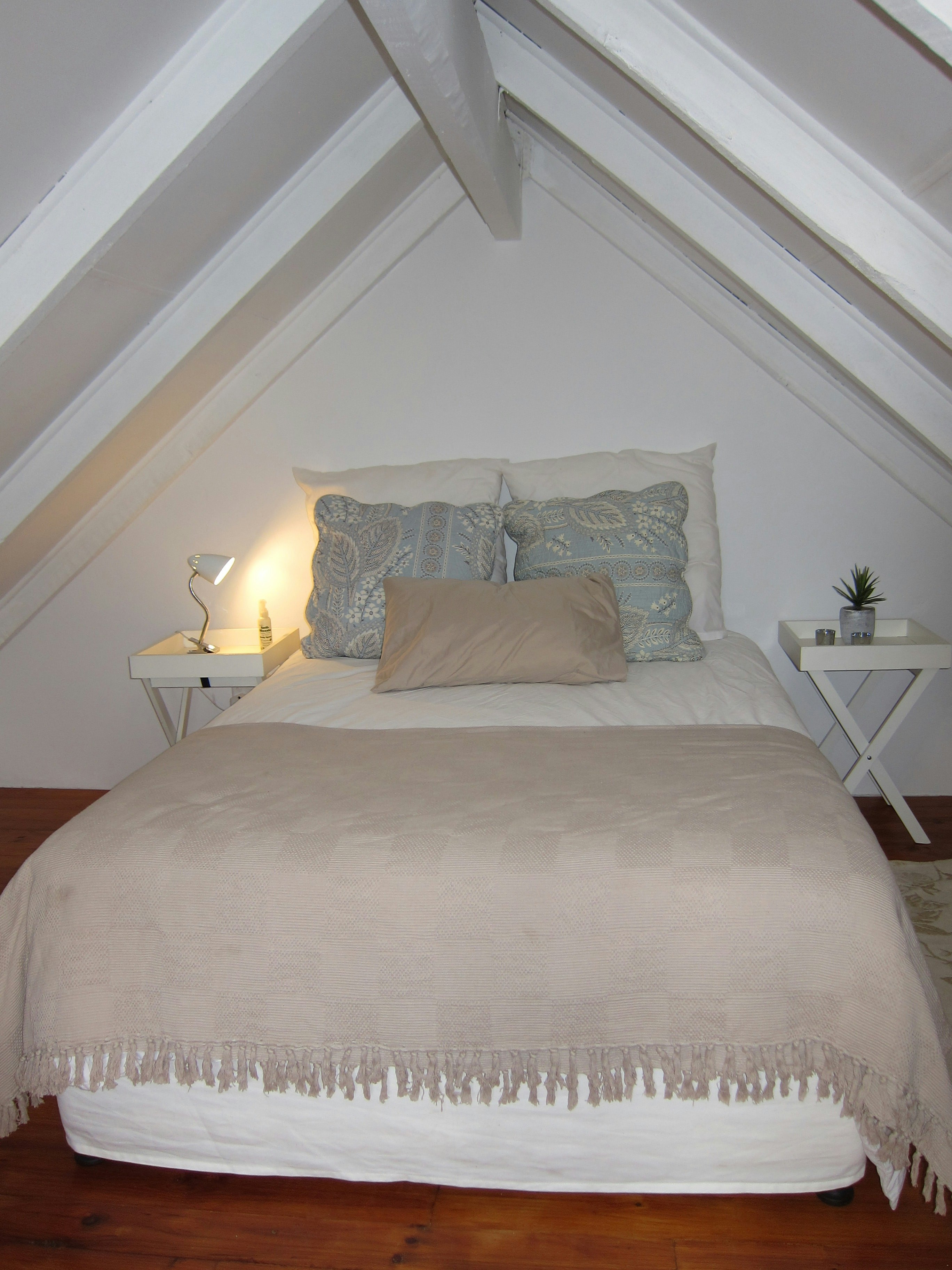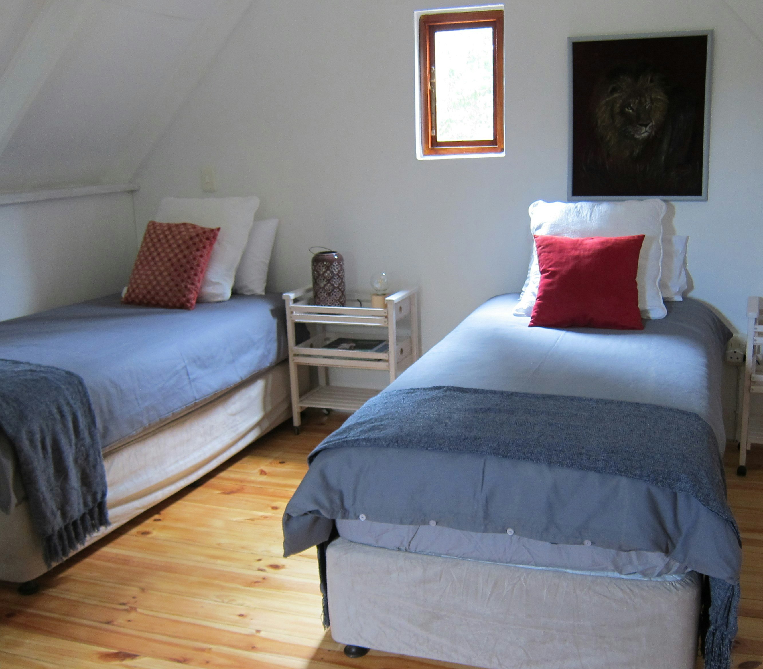 Verblyf is beskikbaar in 3 kothuise. Kothuis 1 is 'n klein dubbelverdiepinghuis met 'n kombuisie wat met 'n mikrogolf, elektriese braaipan, ketel en yskas toegerus is. Daar is 'n knus sitarea en 'n badkamer met 'n stort en 'n toilet op die grondverdieping. Die slaapkamer is op die boonste verdieping onder 'n spitsdak en het 'n dubbelbed. Daar is ook 'n lieflike stoep met 'n tafel en stoele, en gaste het toegang tot die lapa wat 'n stoof het. Hierdie kothuis is nie vir lang gaste geskik nie.