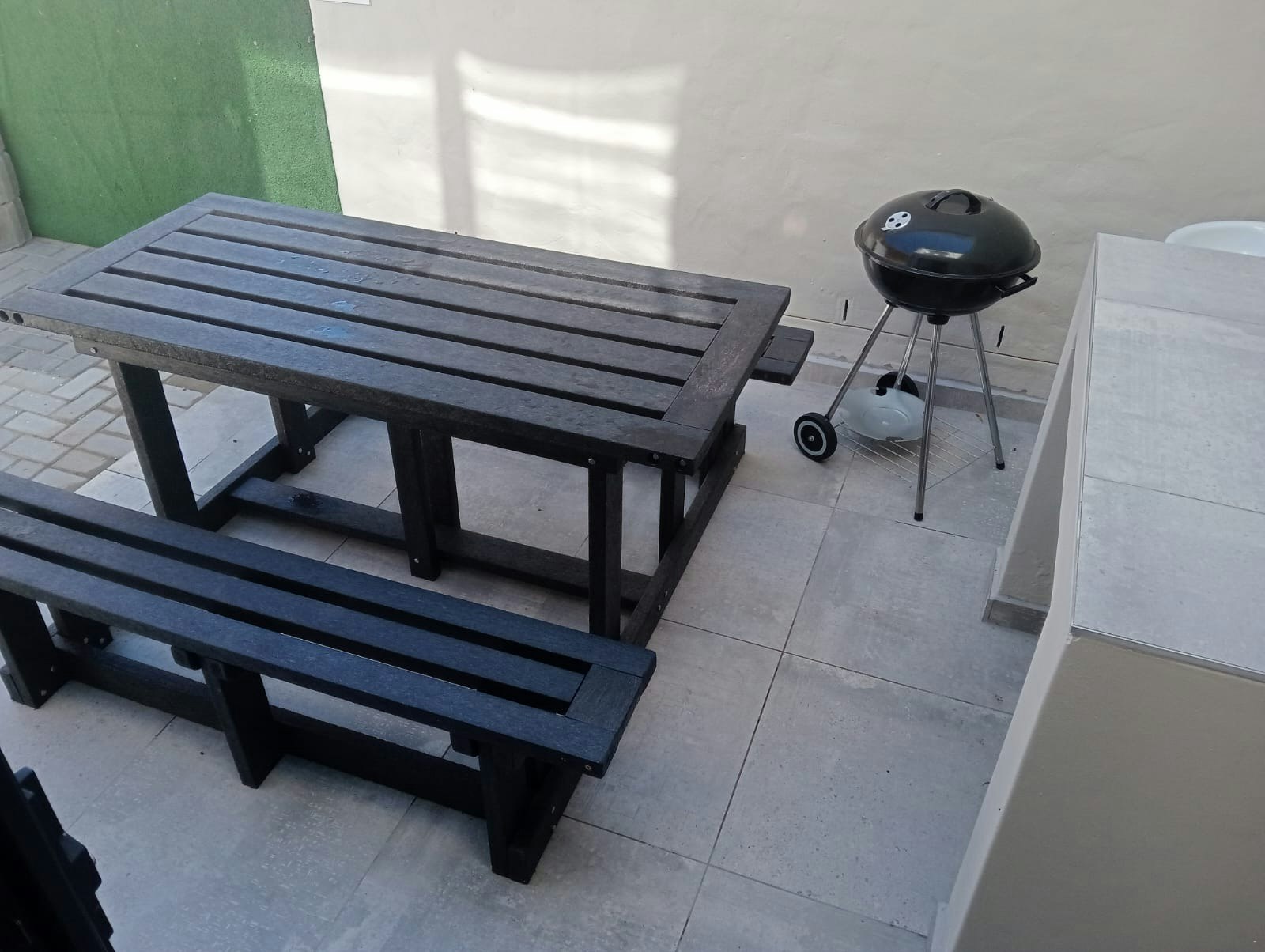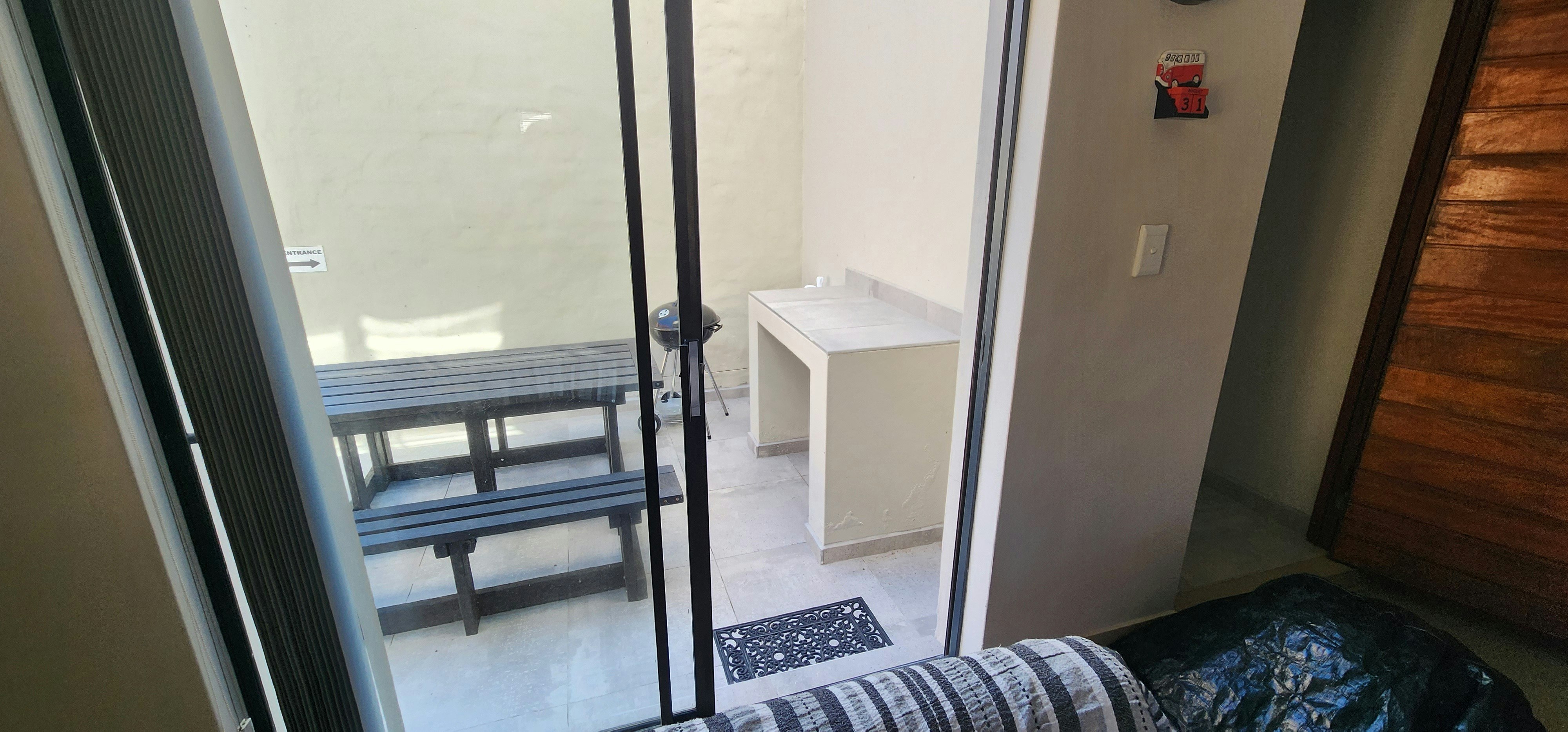 There are several patios with sea views in the distance. Outdoor facilities include a garden, patio, outdoor dining area, and an additional outdoor braai. Loadshedding provisions include solar panels. Secure parking is provided behind a gate.