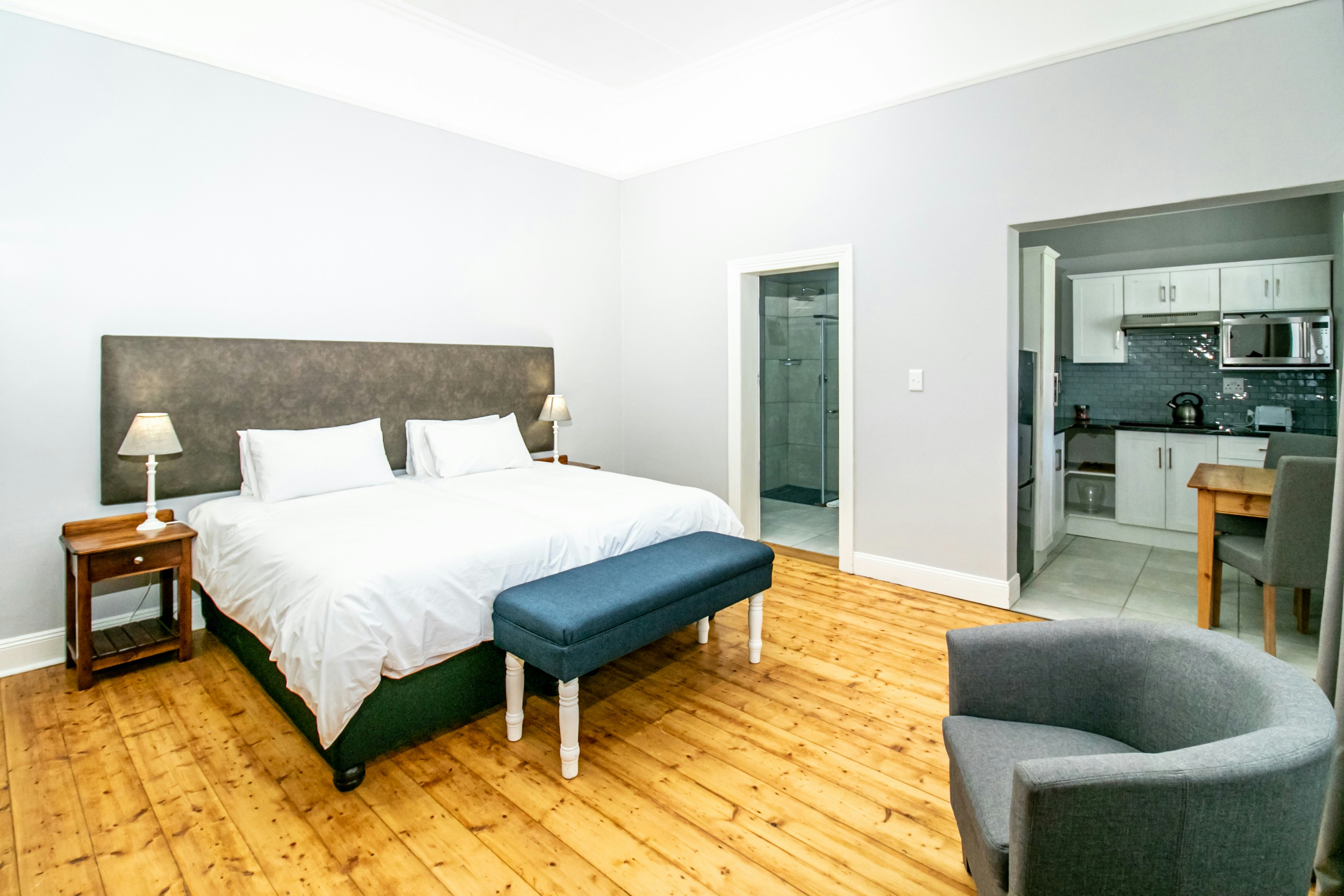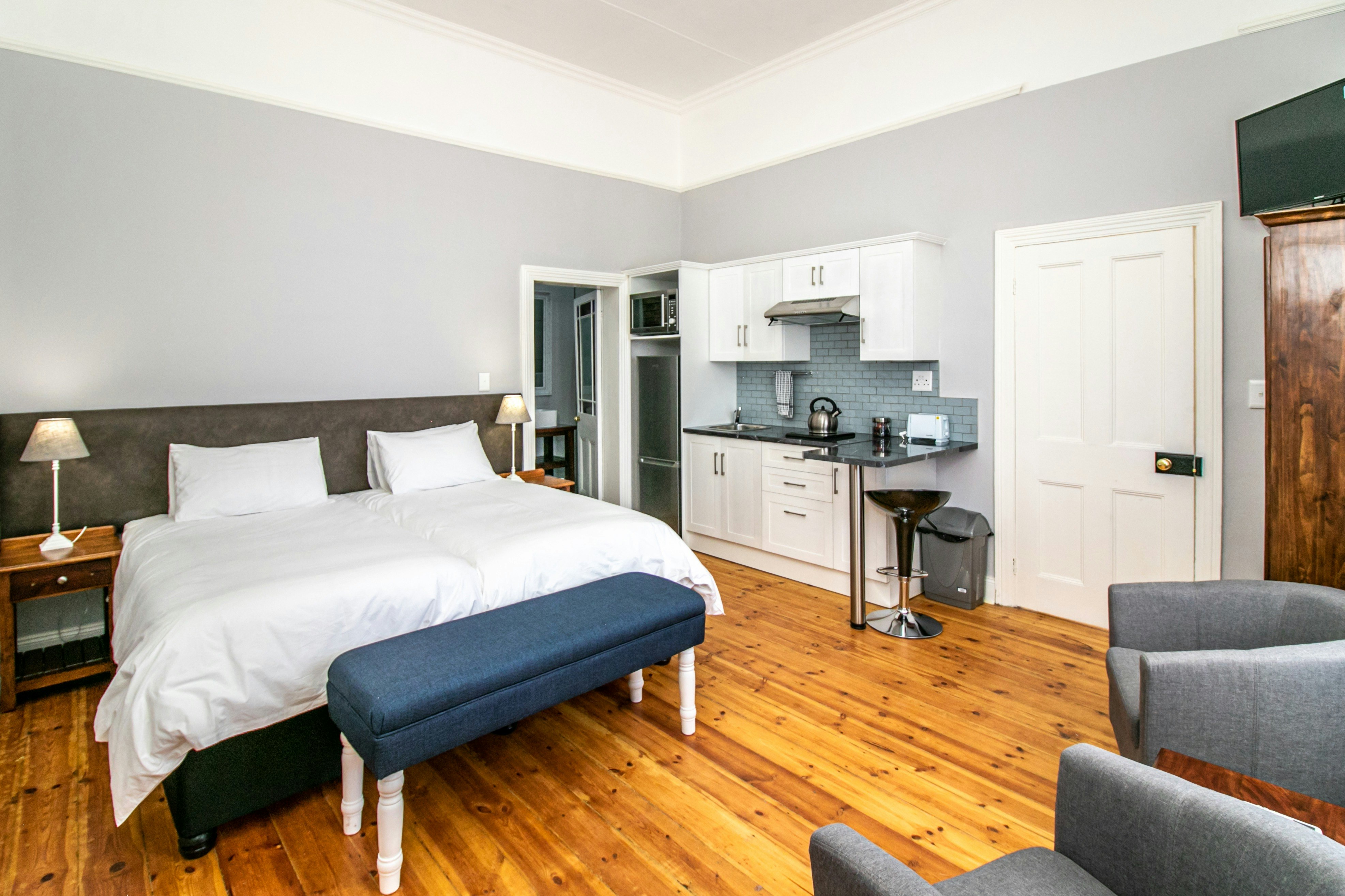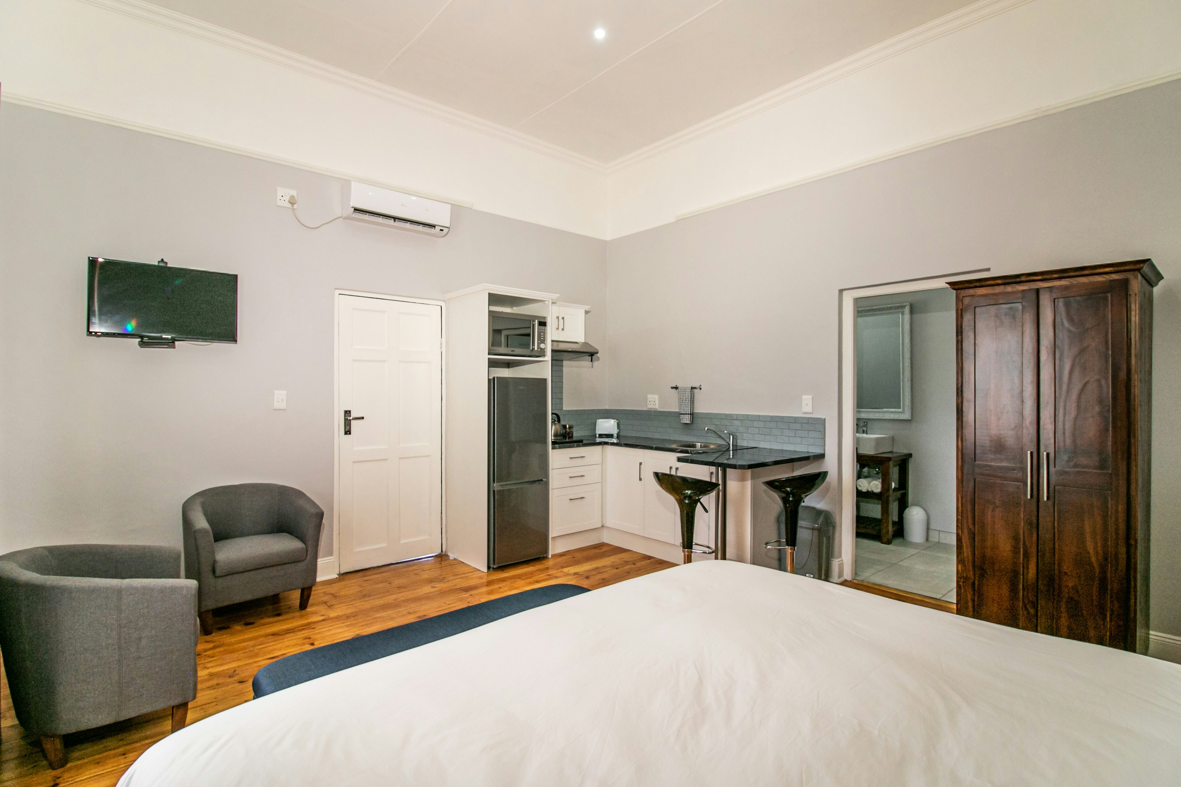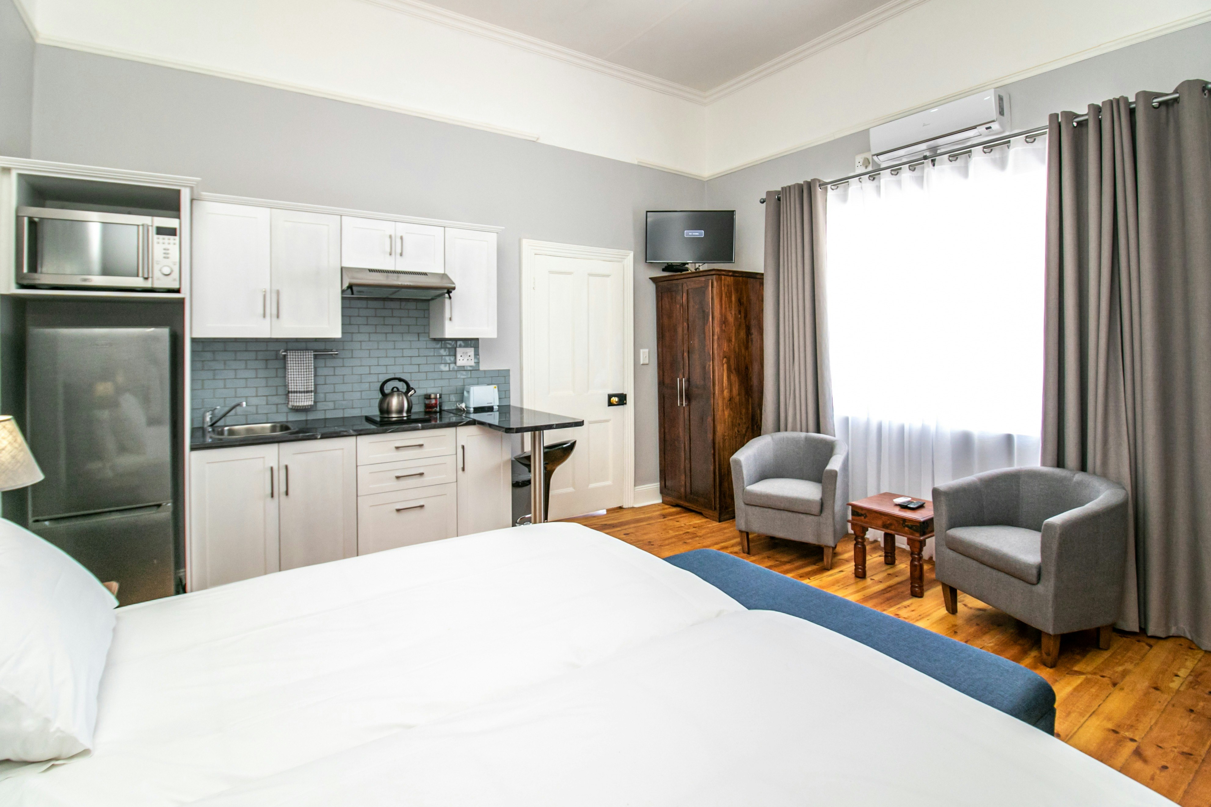 Accommodation is offered in spacious and modern self-catering guest rooms, each with an en-suite bathroom and air-conditioning for the hot Karoo summer months. Each room features clean linen, fluffy white towels and complimentary selected toiletries, a flat-screen TV with selected DStv channels, and free Wi-Fi internet access. In addition, each room has a kitchenette that is equipped with a fridge-freezer, microwave, a hob, kettle and toaster, and a breakfast bar with stools or a dining table and chairs.