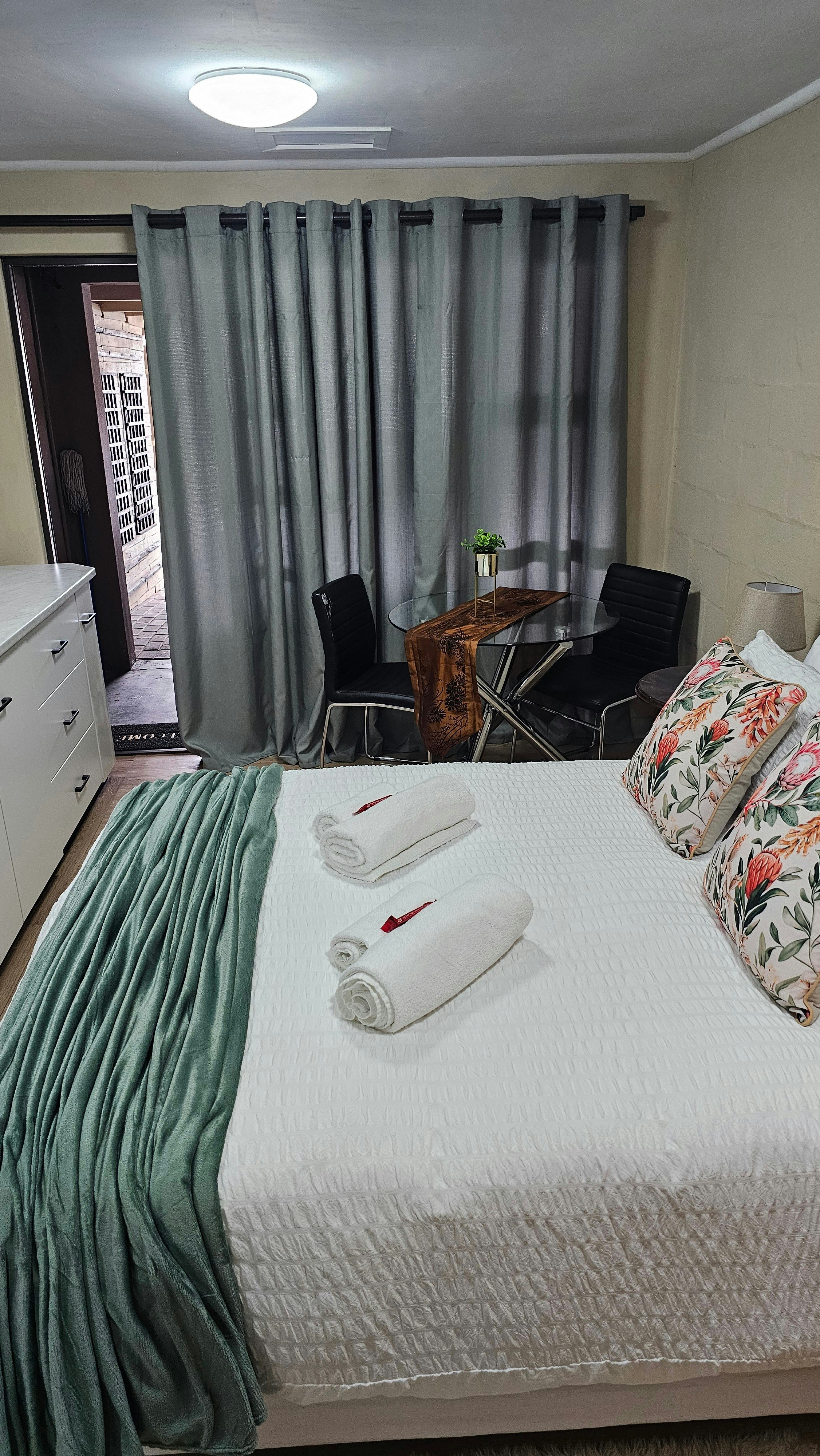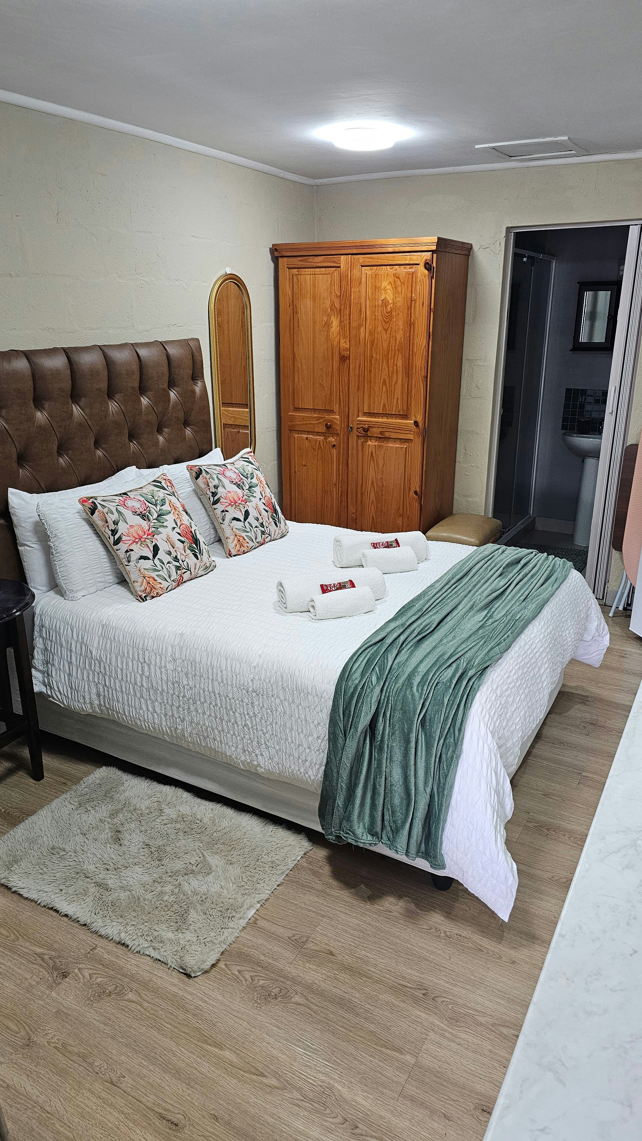 The unit can accommodate 2 guests and features an open-plan sleeping area and an en-suite bathroom. The sleeping area is comfortably furnished with a double bed and a wardrobe, while the bathroom is fitted with a shower, toilet, and basin. Linen and bath towels are provided.