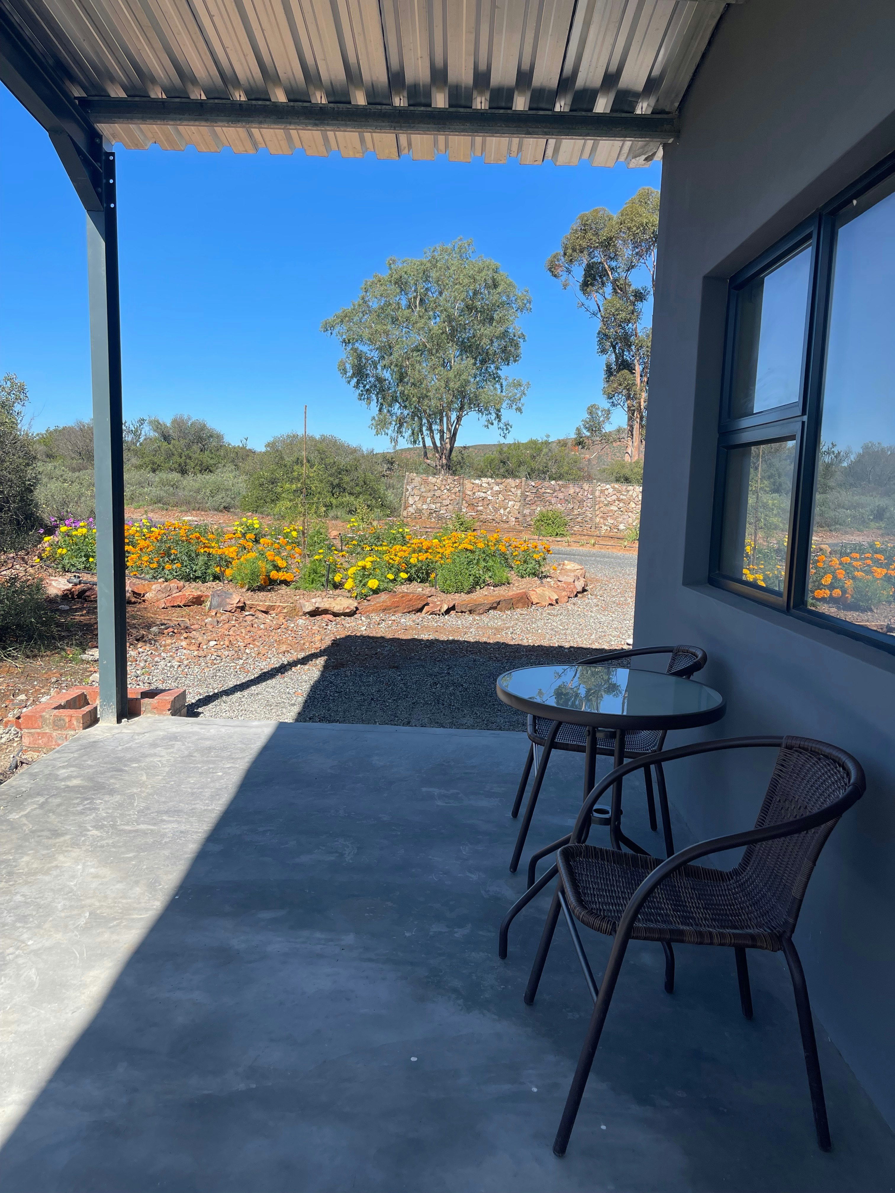 Ons het dit geniet en sal met plesier weer kom kyk hoe die plek geëvolueer het. Die ontwerp is mooi, maar nog nie voltooi nie. As dit gelys word as 'n selfsorgeenheid, dan behoort die kombuis wel 'n kookplaat en potte te hê. Vier klein bordjies en glase is inderdaad 'n absolute minimum. (Daar was wel 'n koffieapparaat en mikrogolf). 'Braaifasiliteit' is eintlik wel meer as 'n plek buite op die grond waar jy vuur kan maak en rooster met pootjies opsit. Ons ou manne buk nie meer so maklik nie. En die WiFi behoort te werk. Bestuur moet net 'n vergrootglas begin hanteer en korreksies uitvoer. Daar is groot potensiaal!
