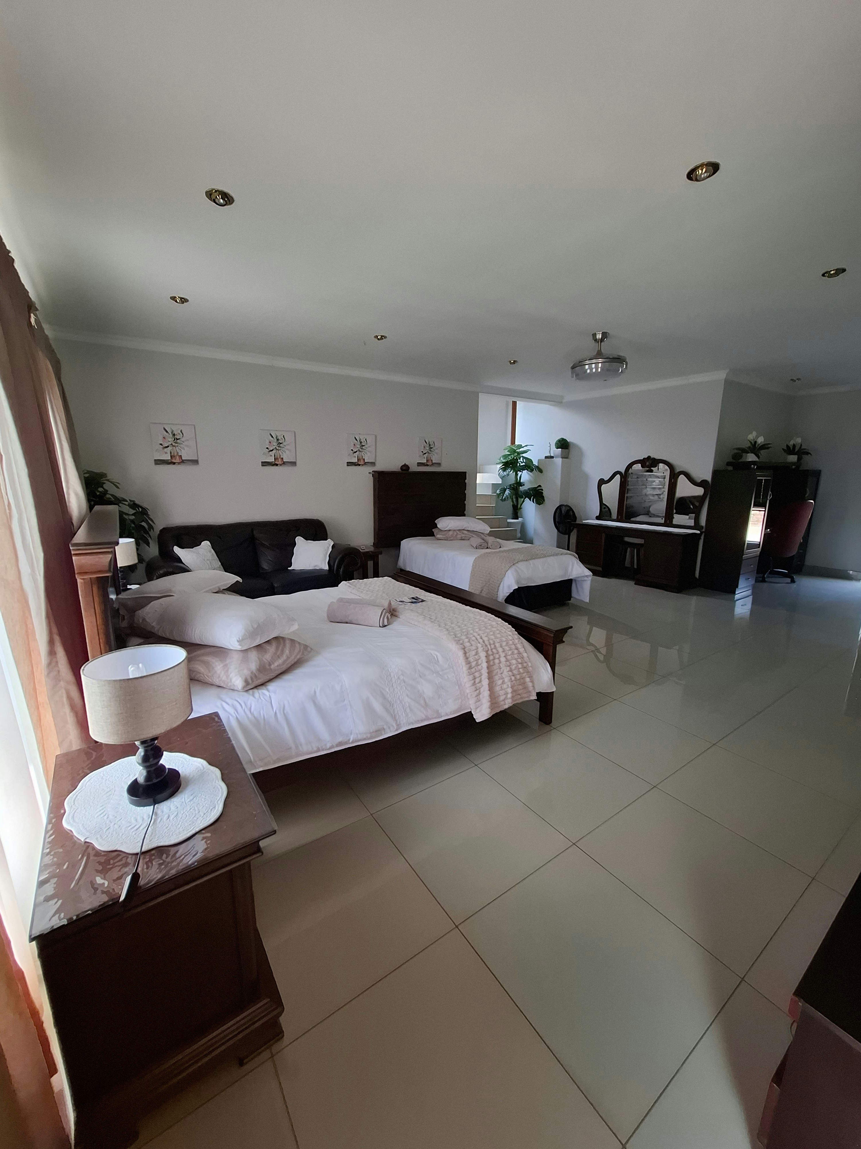 Guests have a choice between 5 rooms, depending on their needs. Each room features a private entrance, an en-suite bathroom, comfortable beds, quality linen and bath towels, a bar fridge, tea- and coffee-making facilities and for guests’ entertainment, there is a TV. Access to Wi-Fi is available.