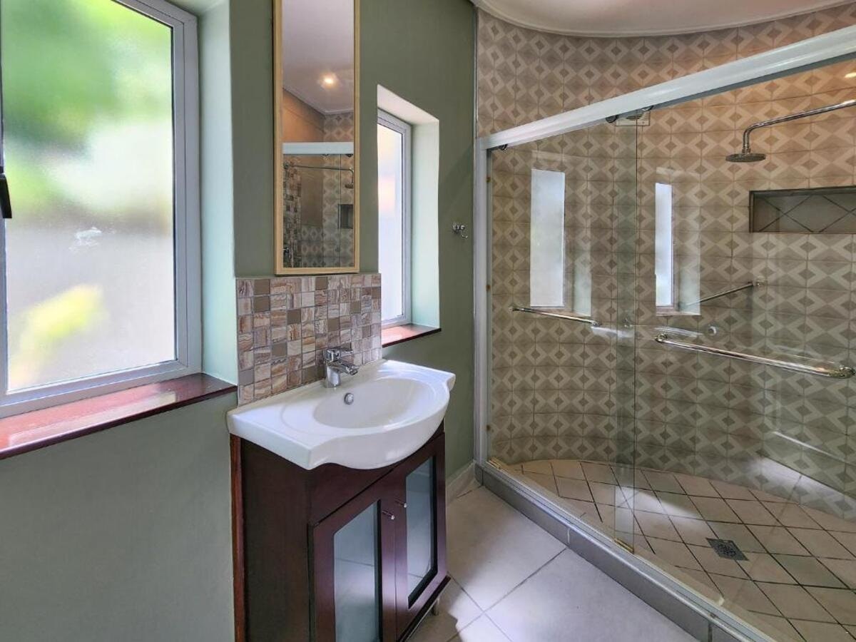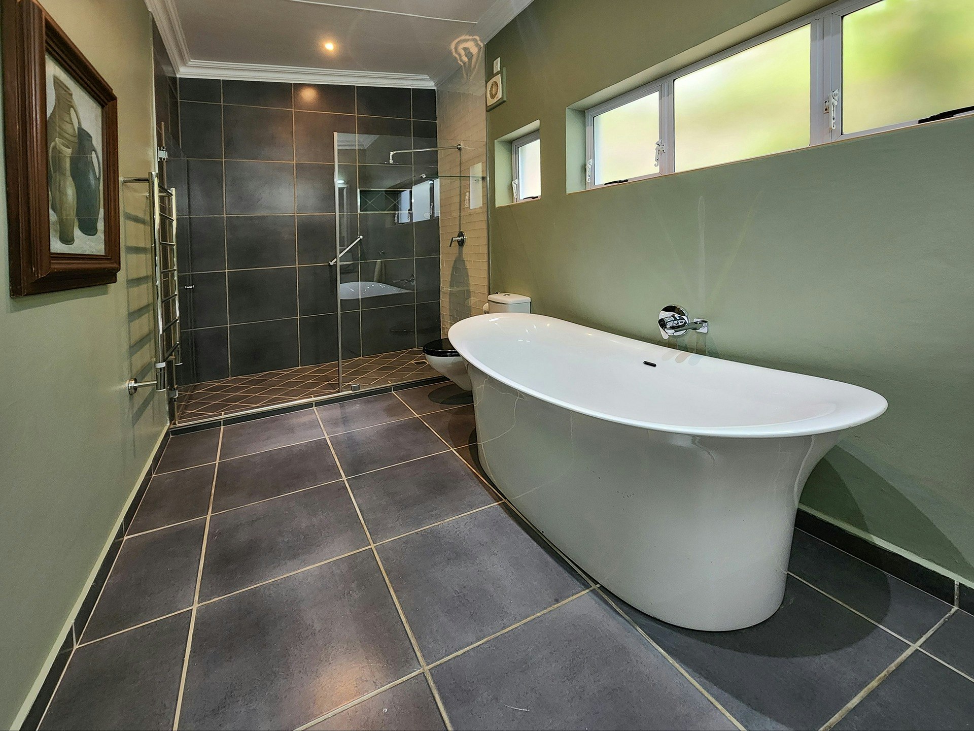 This home can accommodate up to 8 guests and comprises 3 bedrooms and 2 bathrooms in the main house and 1 bedroom and bathroom in the studio cottage. Two of the bedrooms in the main house are furnished with a king-size bed, while the third bedroom contains 2 single beds. The first shared bathroom is fitted with a bath, shower, double washbasin and toilet, while the second shared bathroom contains a shower. The studio cottage is furnished with a king-size bed and the bathroom is fitted with a shower, washbasin and toilet. Linen and bath towels are provided.