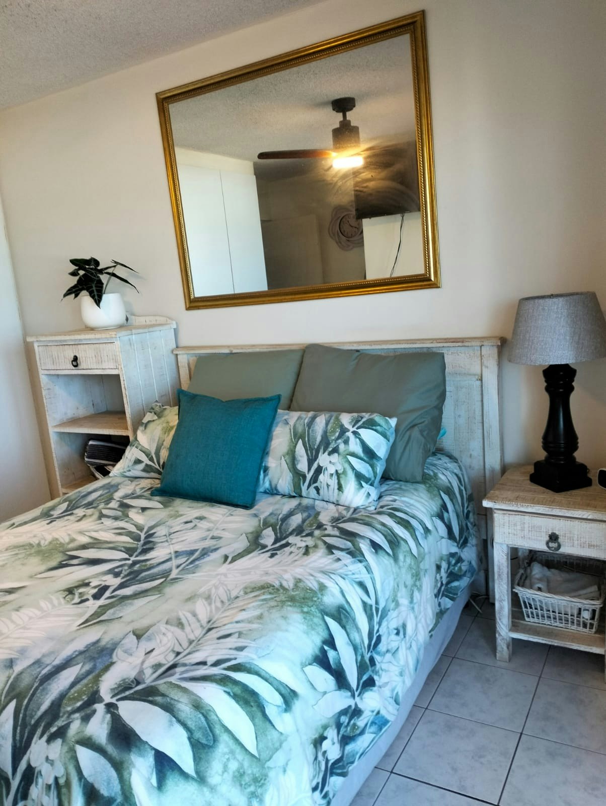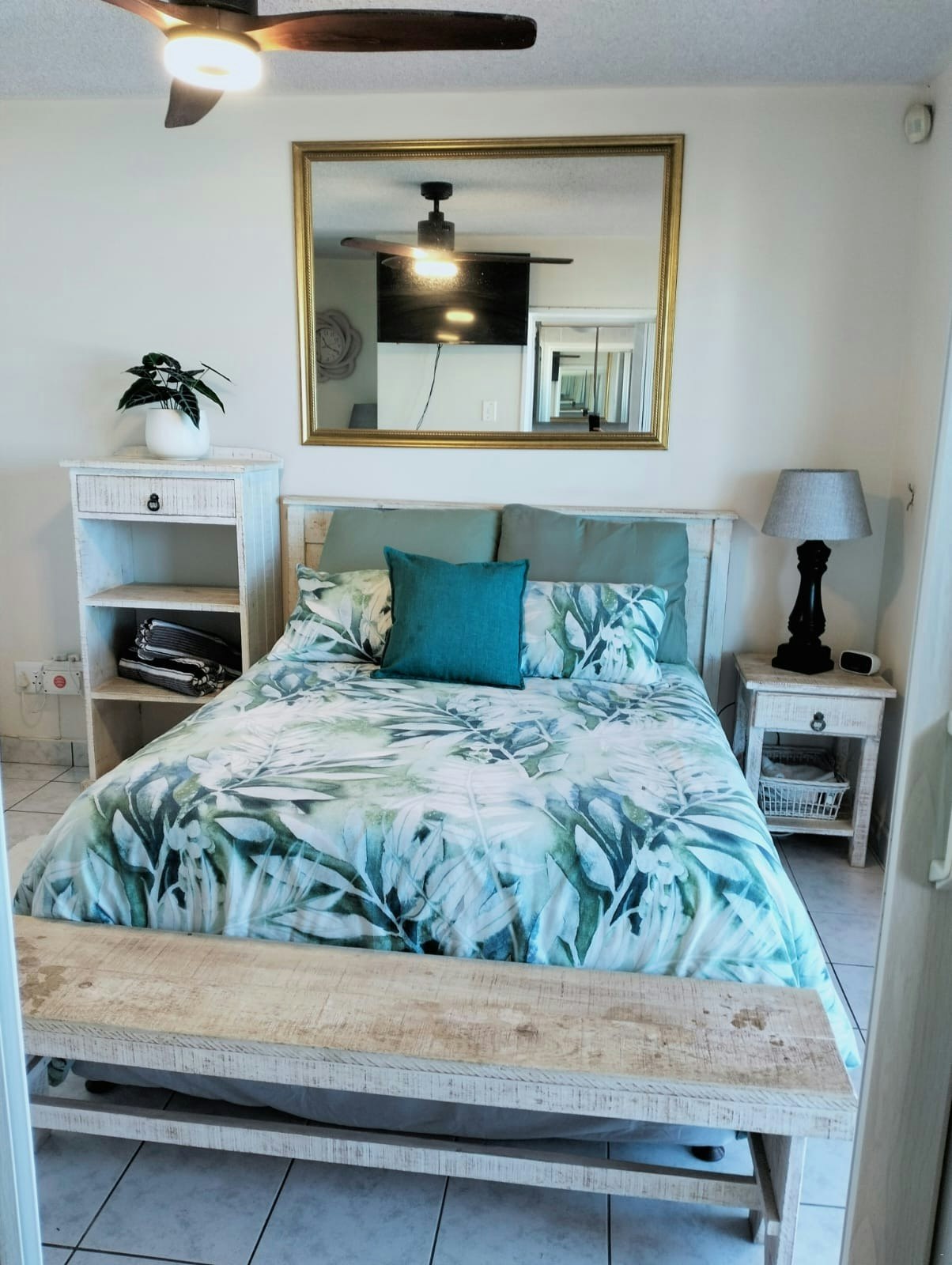 Hierdie ruim woonstel beskik oor 2 slaapkamers en bied slaapplek aan 4 gaste. Die hoofslaapkamer het 'n koningingrootte-bed en 'n en suite-badkamer met 'n stort. Dit lei na die stoep met 'n uitsig oor die see. Die tweede kamer het 'n dubbelbed en gaste gebruik 'n aparte badkamer met 'n stort.