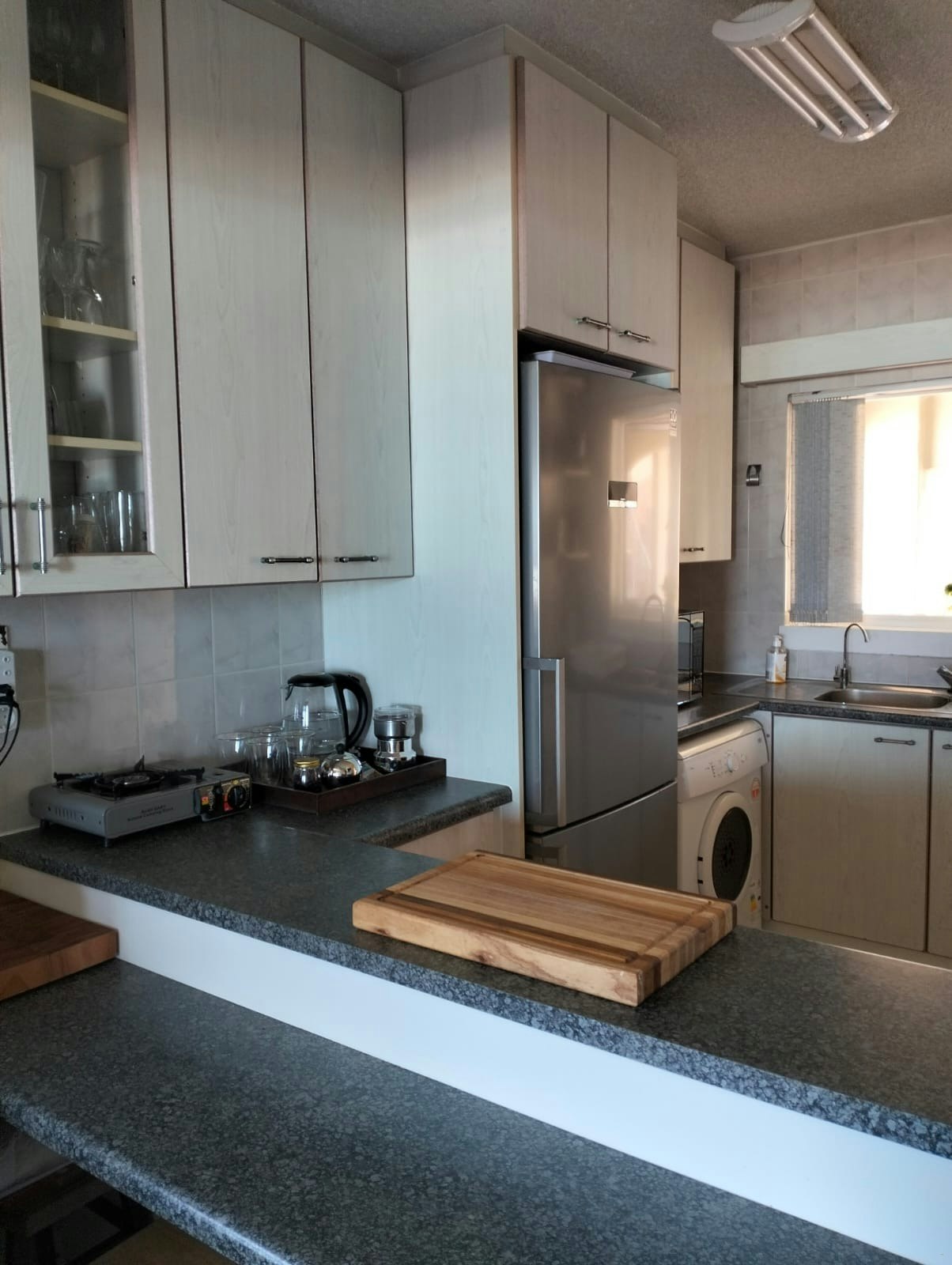 Die kombuis is met 'n yskas-vrieskas, stoof, oond, mikrogolf, wasmasjien en tuimeldroër toegerus. Daar is 'n toonbank met stoele. Die leefarea lei na 'n sitarea met 'n privaat stoep en braai-area, asook 'n piekniektafel en 'n see-uitsig. Daar is gratis WiFi, 'n TV met DStv en Netflix, 'n omsetter en veilige onderdakparkeerplek vir 1 voertuig.