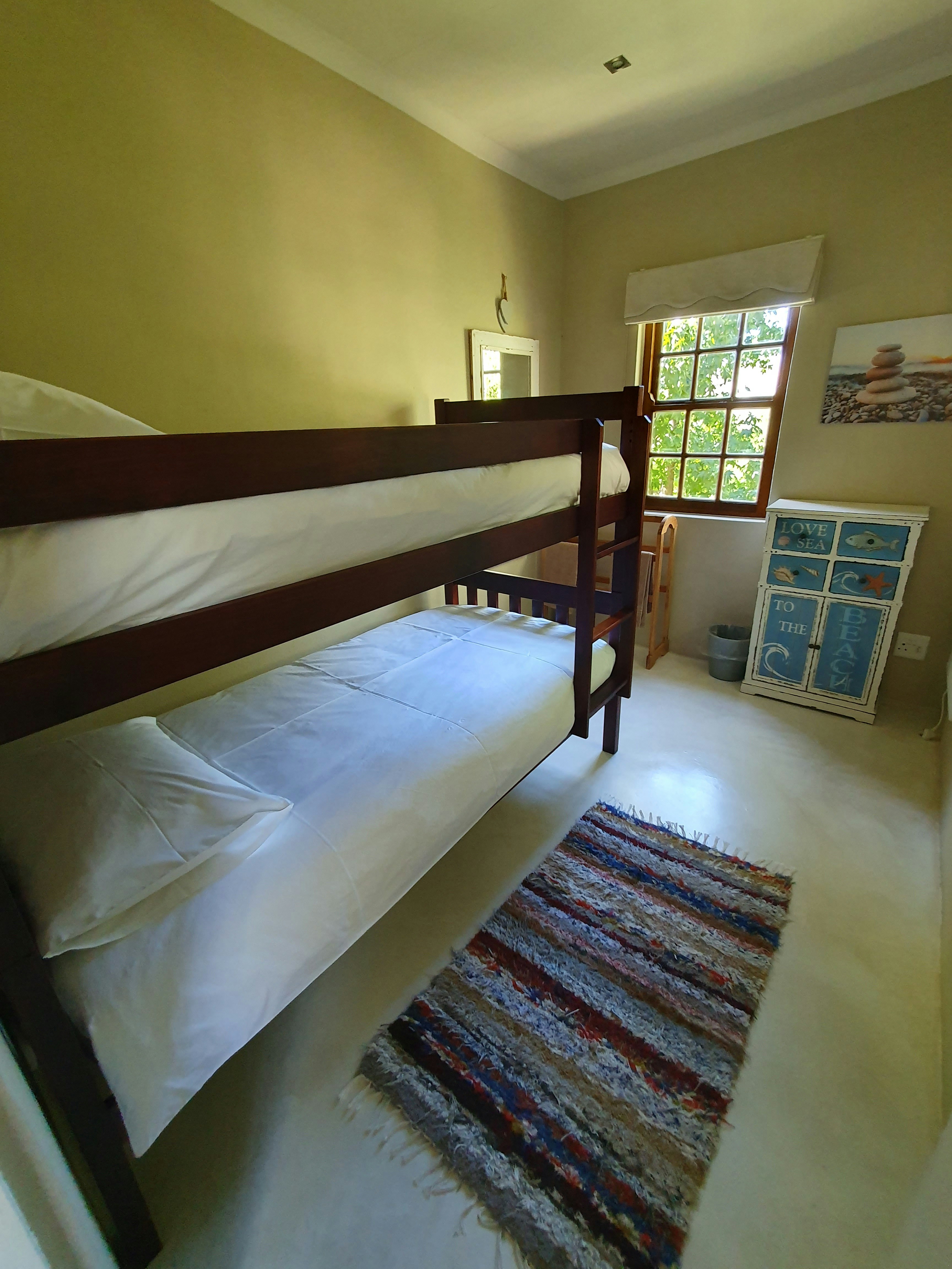 Outside, guests can enjoy dining and relaxation in the rear area with ample seating, a built-in braai area, and a swimming pool, all surrounded by lush gardens. Secure onsite parking and Wi-Fi access are provided for convenience, and property managers Giuseppe and Esther are available in a secondary building to assist guests if needed.