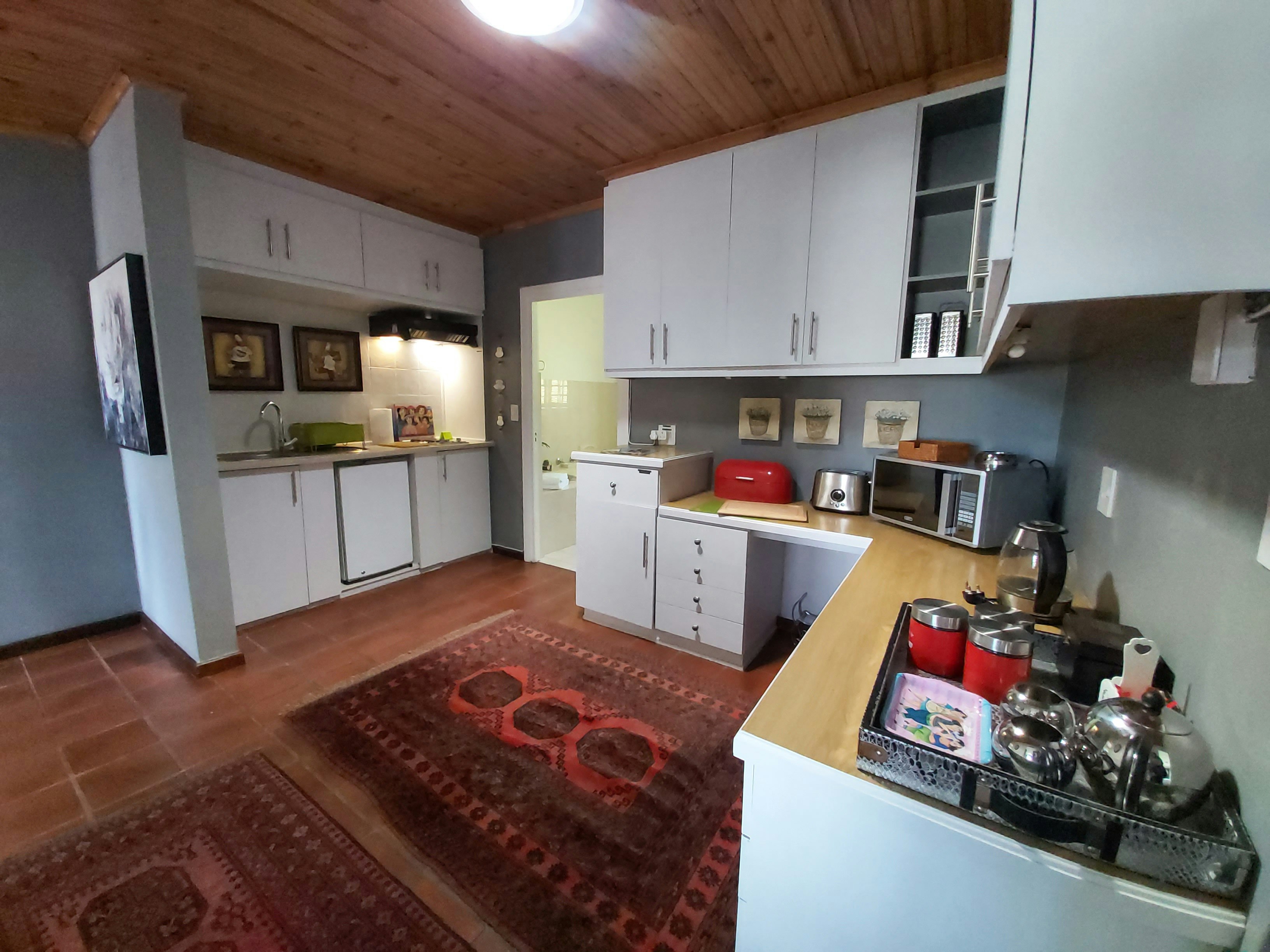 Die eenheid beskik ook oor 'n kombuis, sitkamer en eetarea. Die kombuis is goed toegerus en beskik oor 'n gasstoof, lugbraaier, yskas-vrieskas en mikrogolf. Die eetarea het sitplek vir 4 mense, terwyl die sitkamer 'n gemaklike sitkamerstel het. Buite is daar 'n dek met braaigeriewe en uitsigte oor die Outeniekwaberge en woud. Wi-Fi is beskikbaar.
