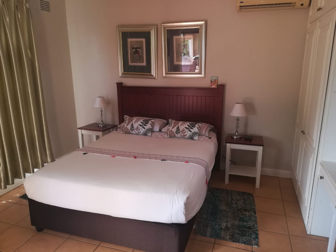 The villa comprises 3 bedrooms, 3 bathrooms, a guest toilet, and an open-plan kitchen, living and dining area. The first and second bedrooms each contain a queen-size bed and have an en-suite bathroom. The third bedroom contains 2 beds one 3/4 and one double and has an en-suite bathroom. The kitchen is equipped with a fridge, a stove, and a microwave, and has a scullery with a washing machine, a dishwasher, and a tumbler dryer for guests convenience. The villa offers ample cupboard space, linen, swimming and bath towels. The living area leads out onto a patio with outdoor furniture and gas braai facilities. A daily cleaning service is also available. DSTV is available at a small fee, guests can log in with their own Netflix and YouTube accounts.