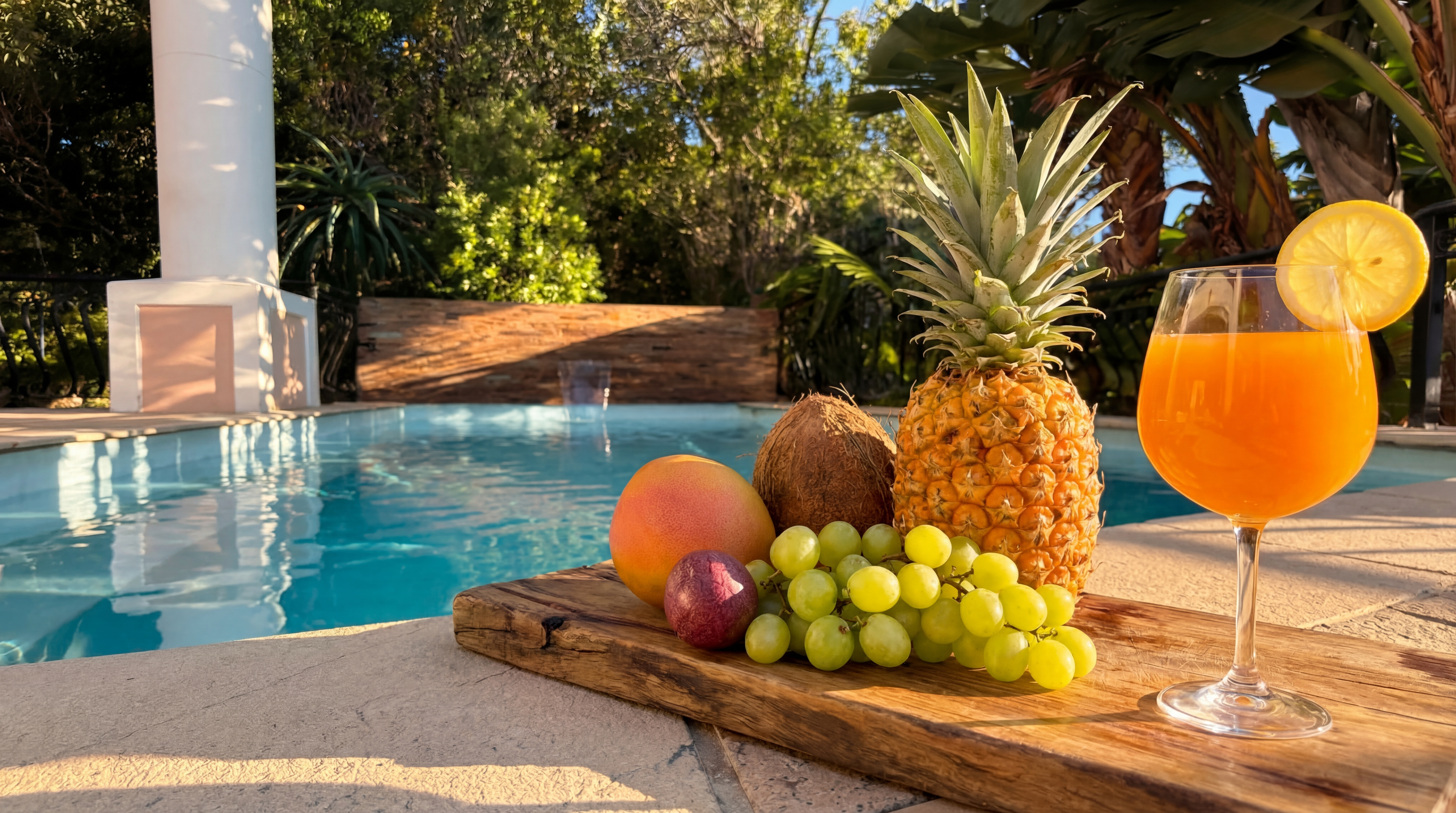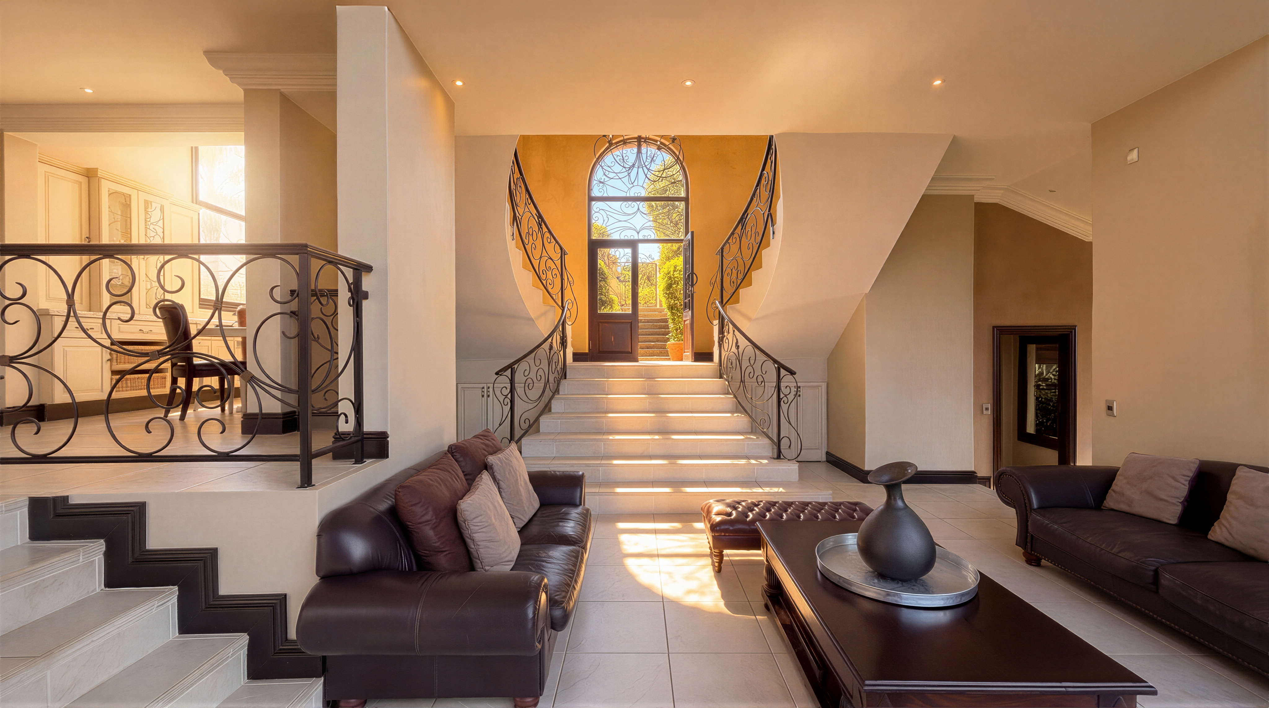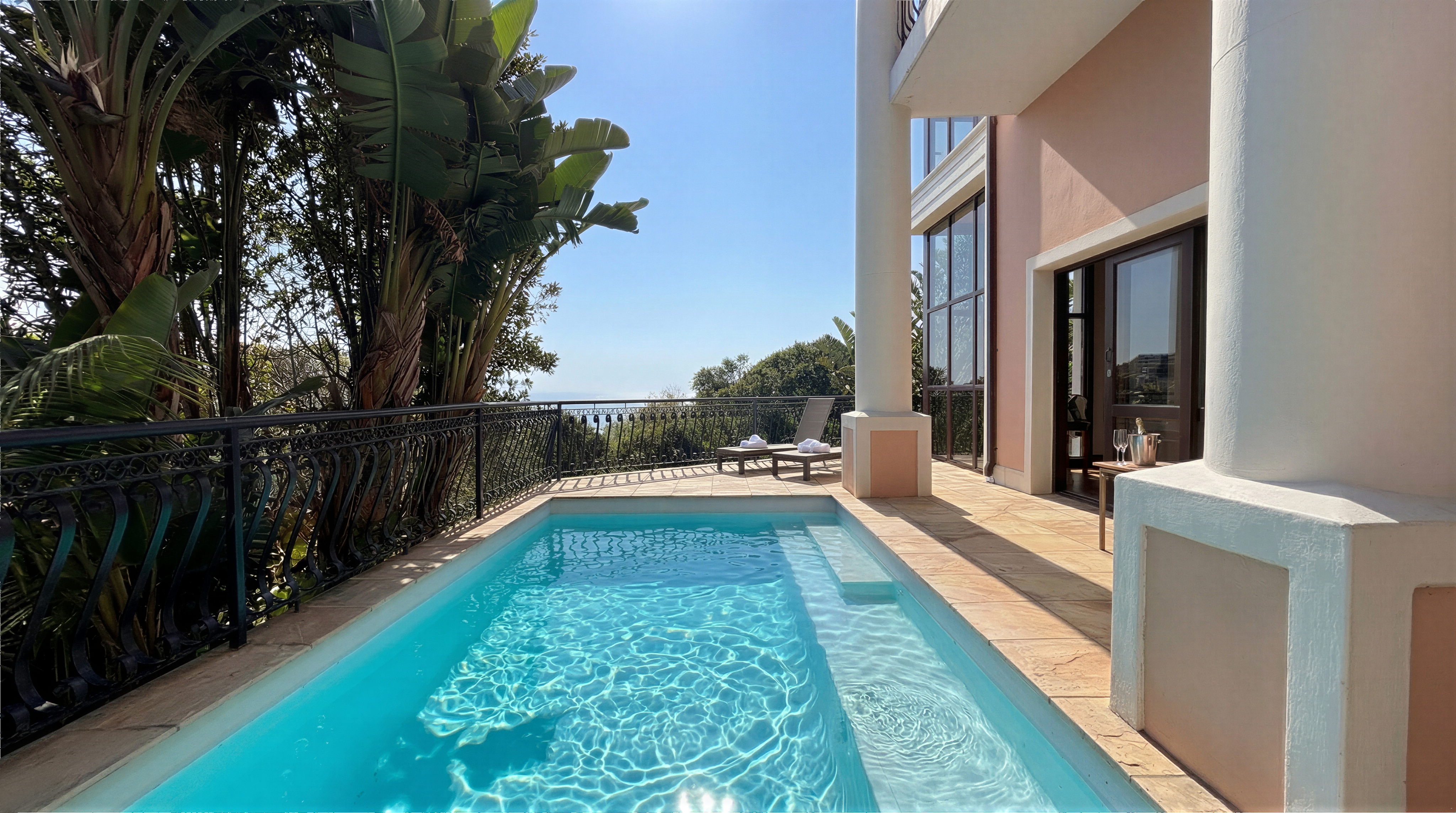 The villa has a lovely swimming pool with a view, as well as ample relaxation areas. Housekeeping is done on Mondays, Wednesdays and Fridays, except for public holidays. The villa is protected by a comprehensive house alarm which is linked to an armed response company, and all gates are controlled by remote access.
