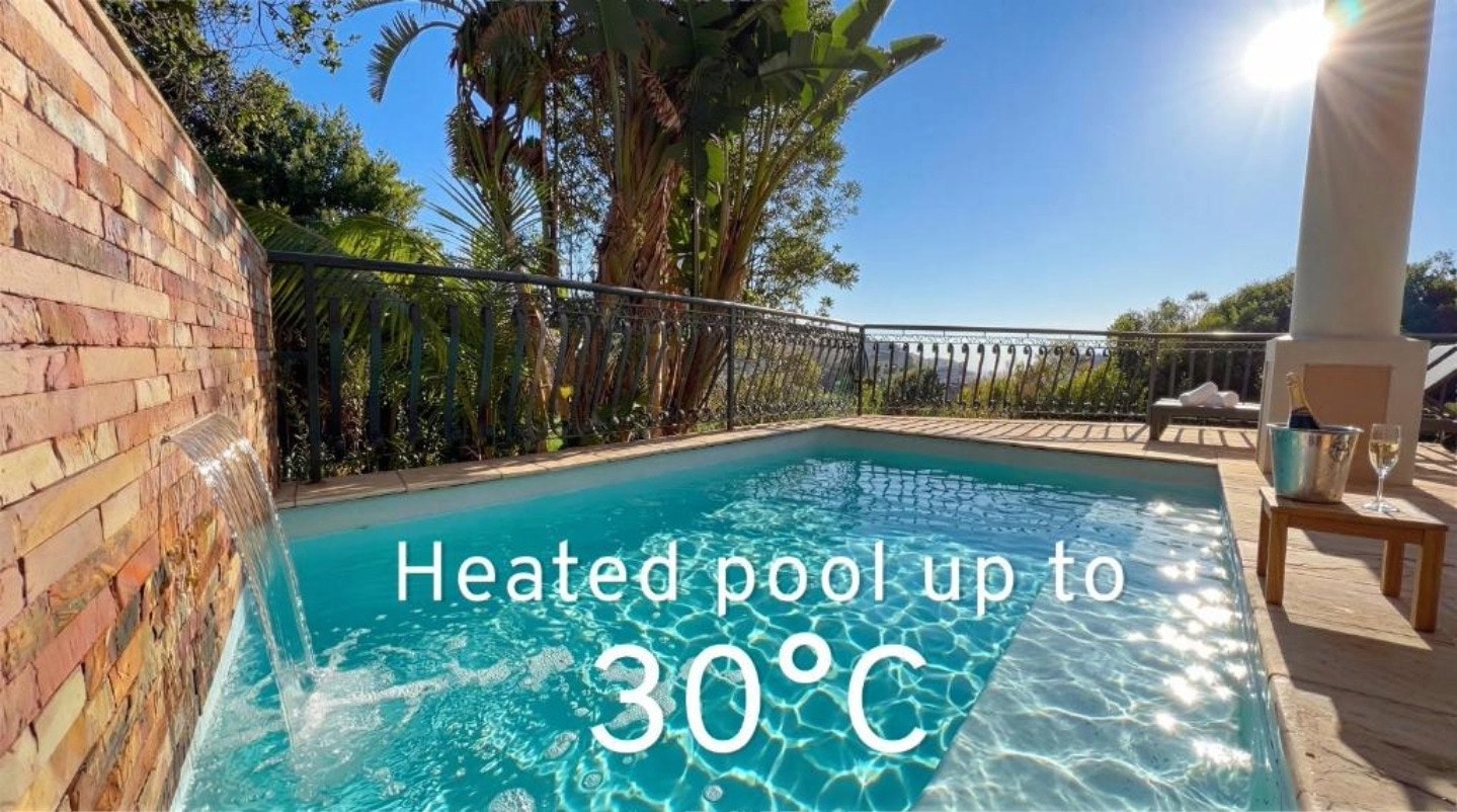 The living areas open onto expansive balconies and terraces, allowing guests to enjoy sweeping ocean views from almost every angle. The property also features a heated outdoor swimming pool (up to 30°C), perfect for year-round relaxation while overlooking the coastline. Additional amenities include secure gated access with remote control entry, a full alarm system linked to armed response, housekeeping service on selected days, and onsite parking.
