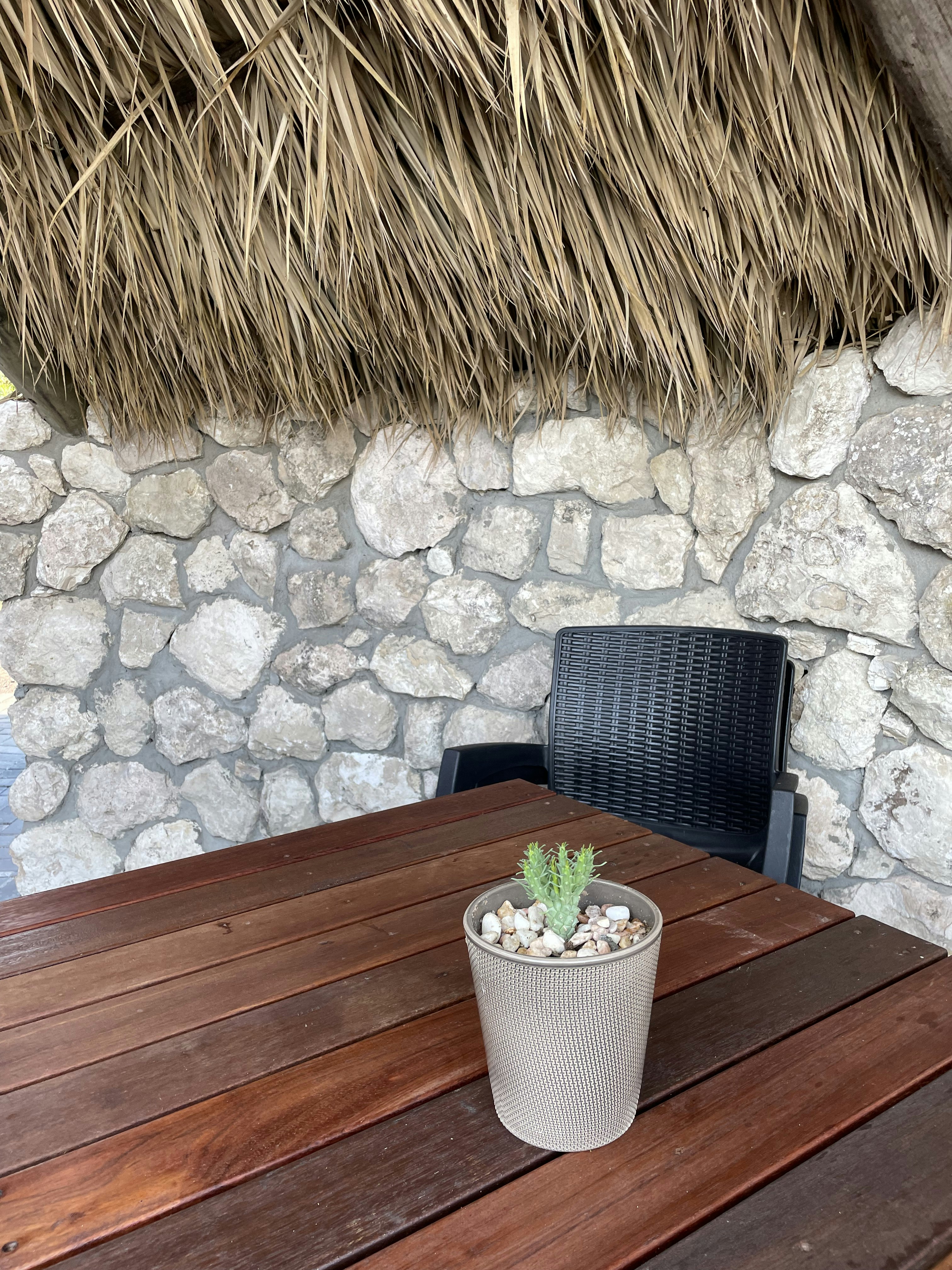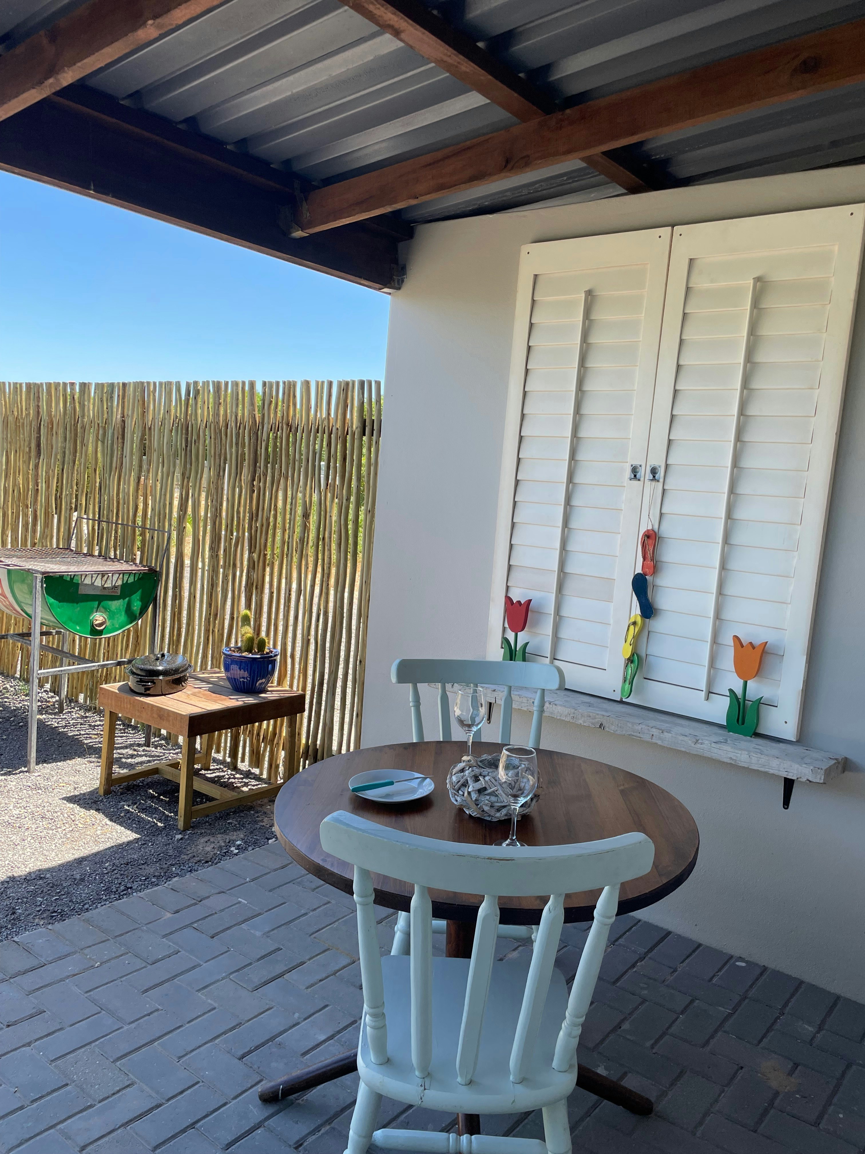 Bontrokkie is a deluxe studio with a double bed and bathroom. The bathroom has a shower, basin and toilet. Other facilities include a kitchenette with all the necessaries, but no stove. A gas plate is available for light cooking. A TV with Netflix, fridge, microwave and kettle is available. The patio is partially covered and has a boma. Bontrokkie offers a view of the field.
