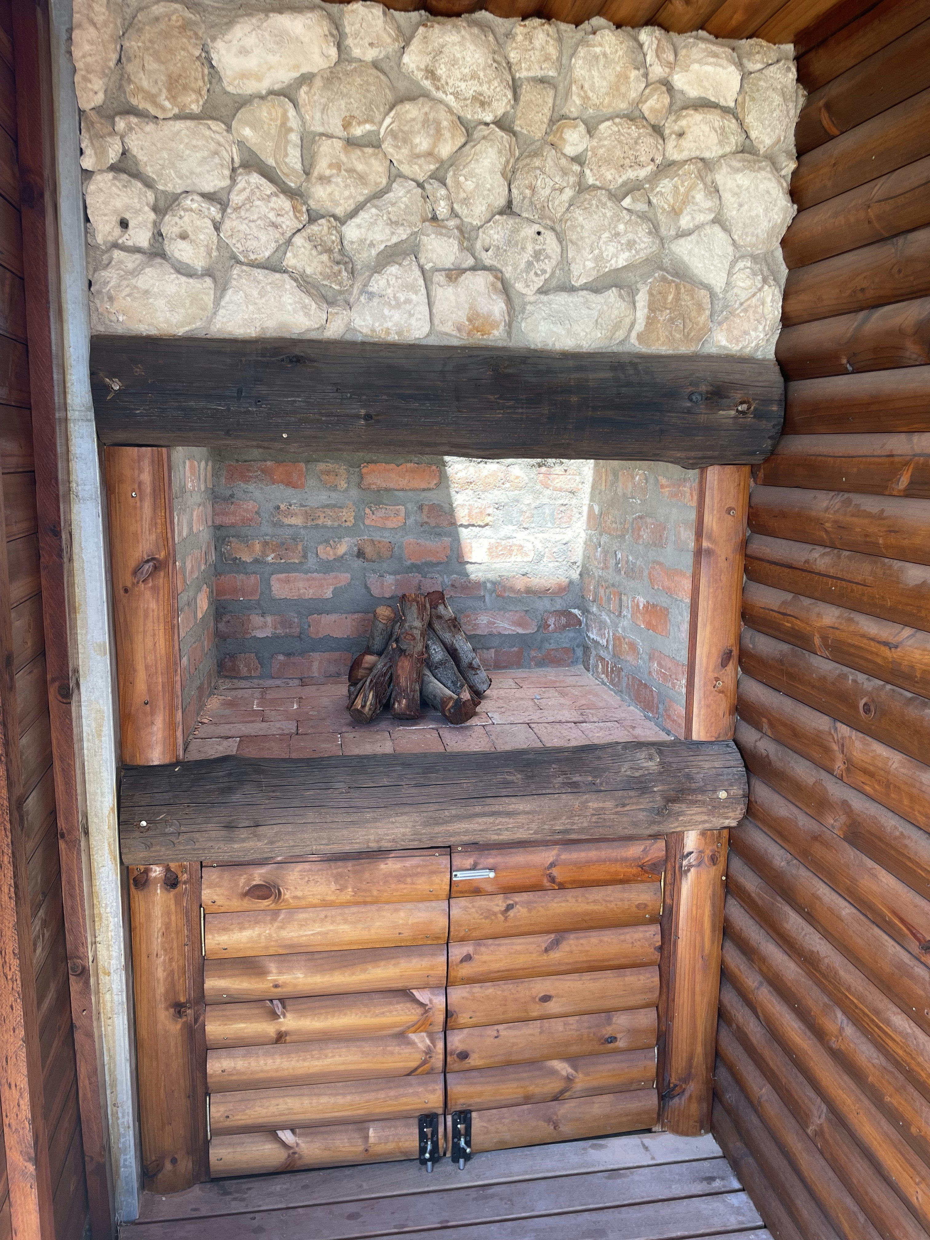 Woodpecker's Cabin is a wooden cabin suited to accommodate 2 adults. The bedroom has a double bed and chest of draws. The bathroom is fitted with a shower, basin and toilet. Other facilities include a kitchen/lounge area with a TV (Netflix is available). No stove but a gas plate is available for light cooking. The covered braai on the patio is sheltered from the wind and rain. Table and chairs under the lapa for dining. We are also close to the Laguna Mall, many restaurants and beaches to give you the best of both worlds.